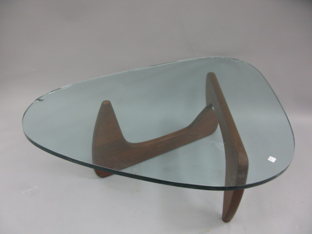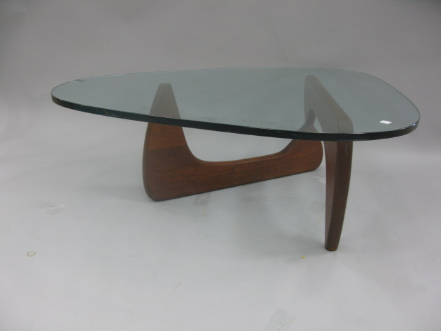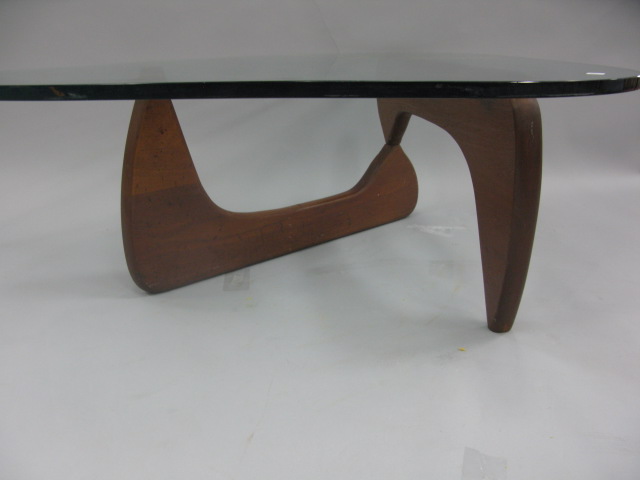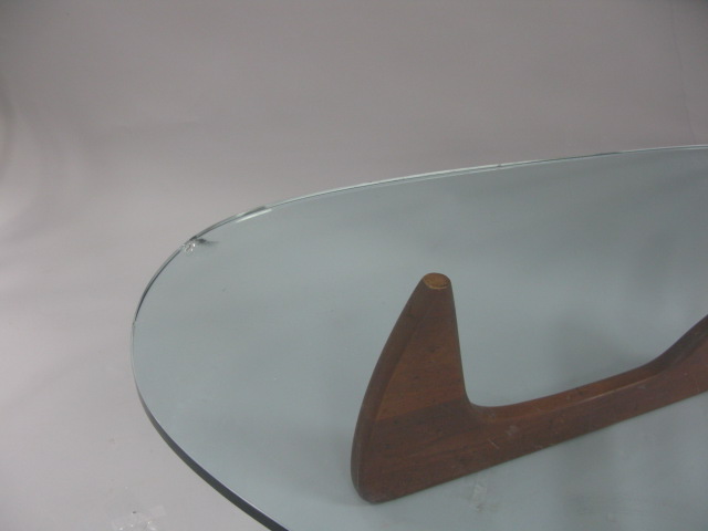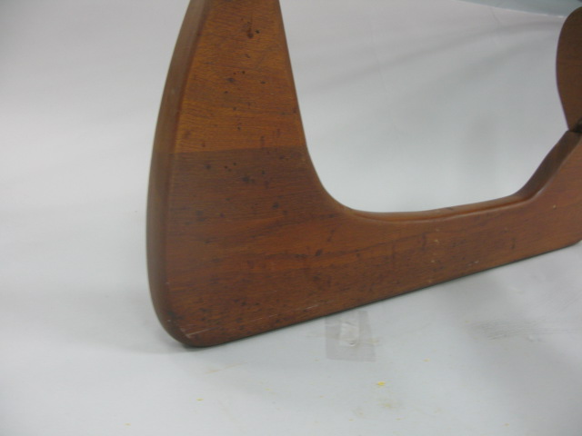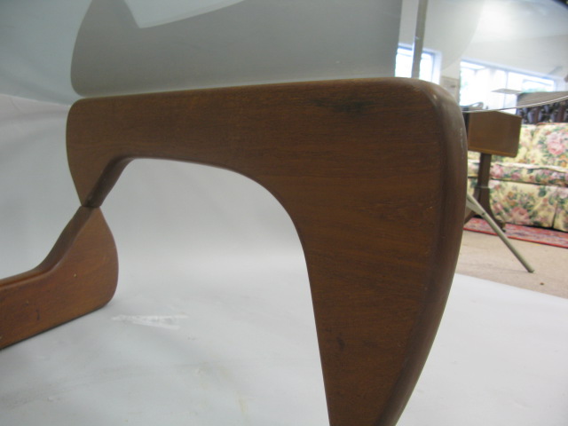 Isamu Noguchi freeform glass top coffee table with walnut base, original glass, chipped