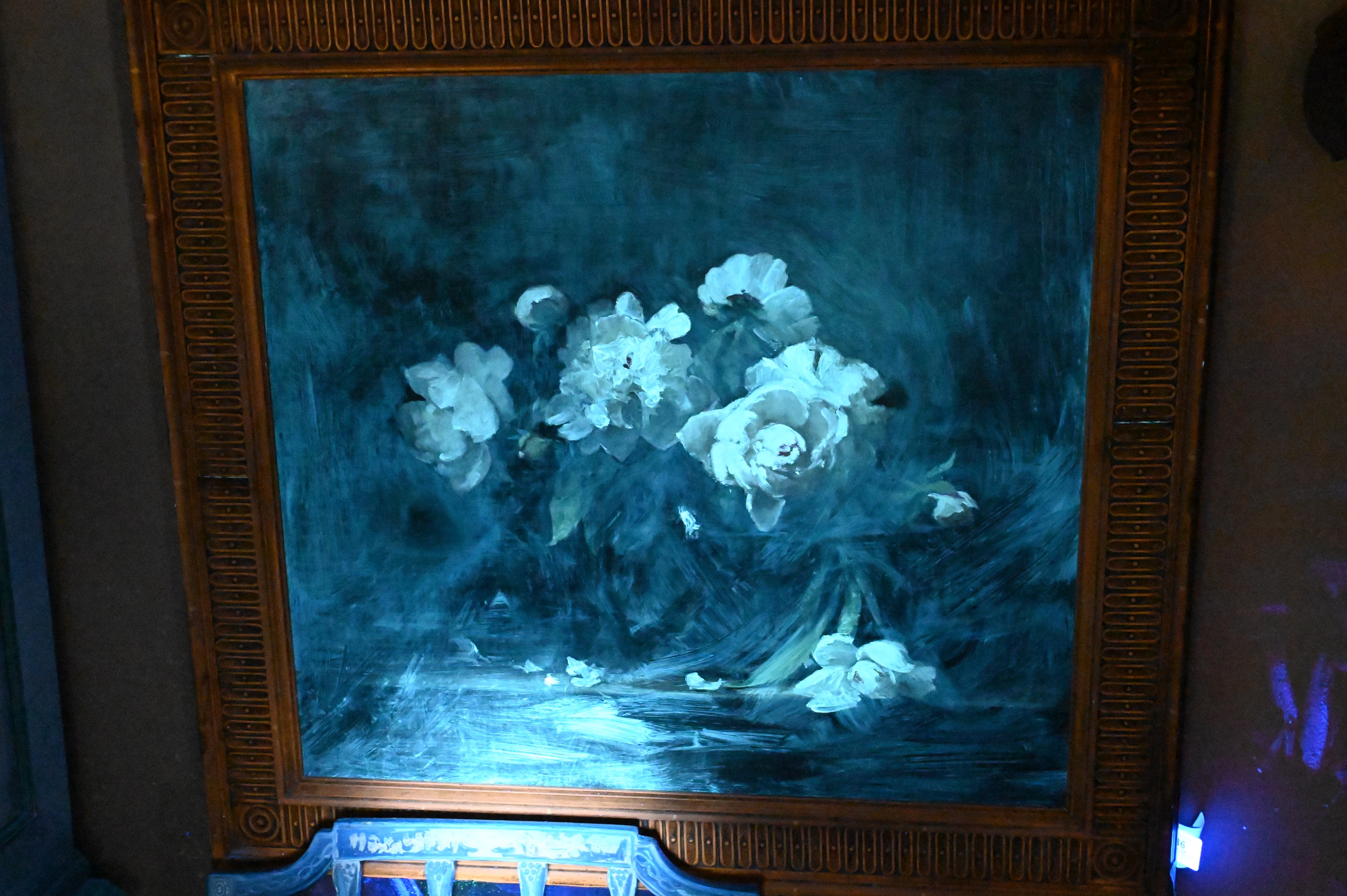 Black light: heavy varnish and heavy inpainting throughout, see photos
