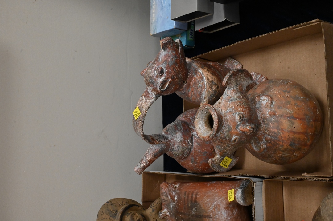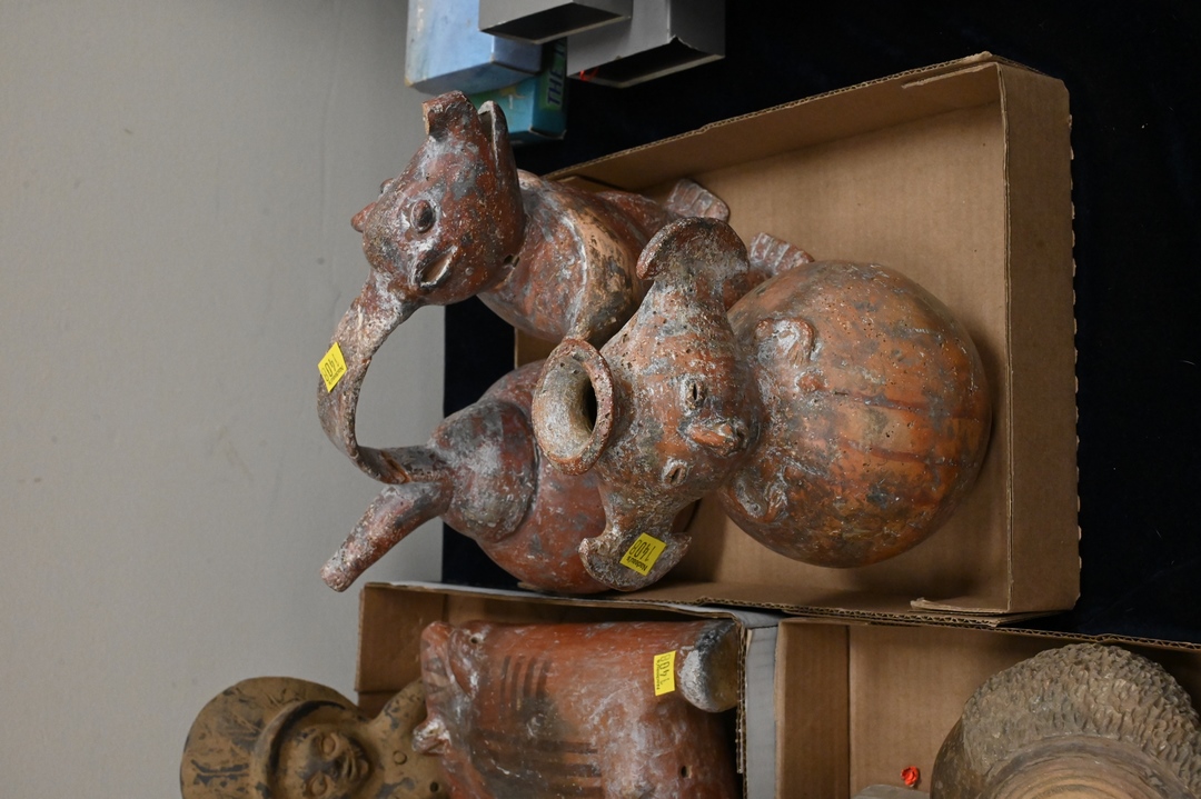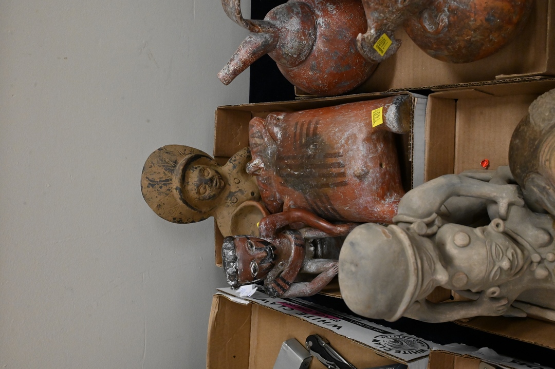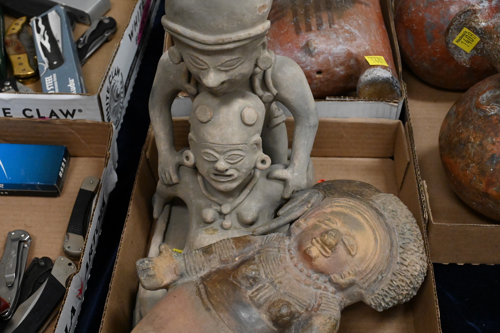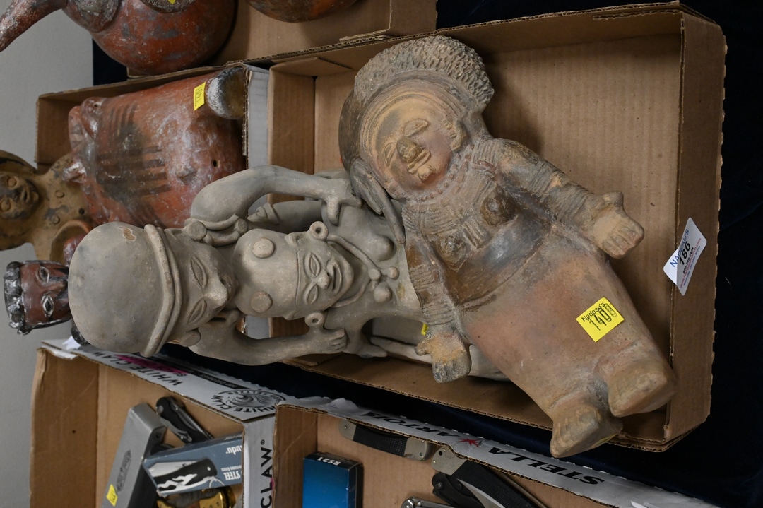 Group of Seven South American and Pre-Columbian Pieces, to include figures and pots, tallest 11 inches.