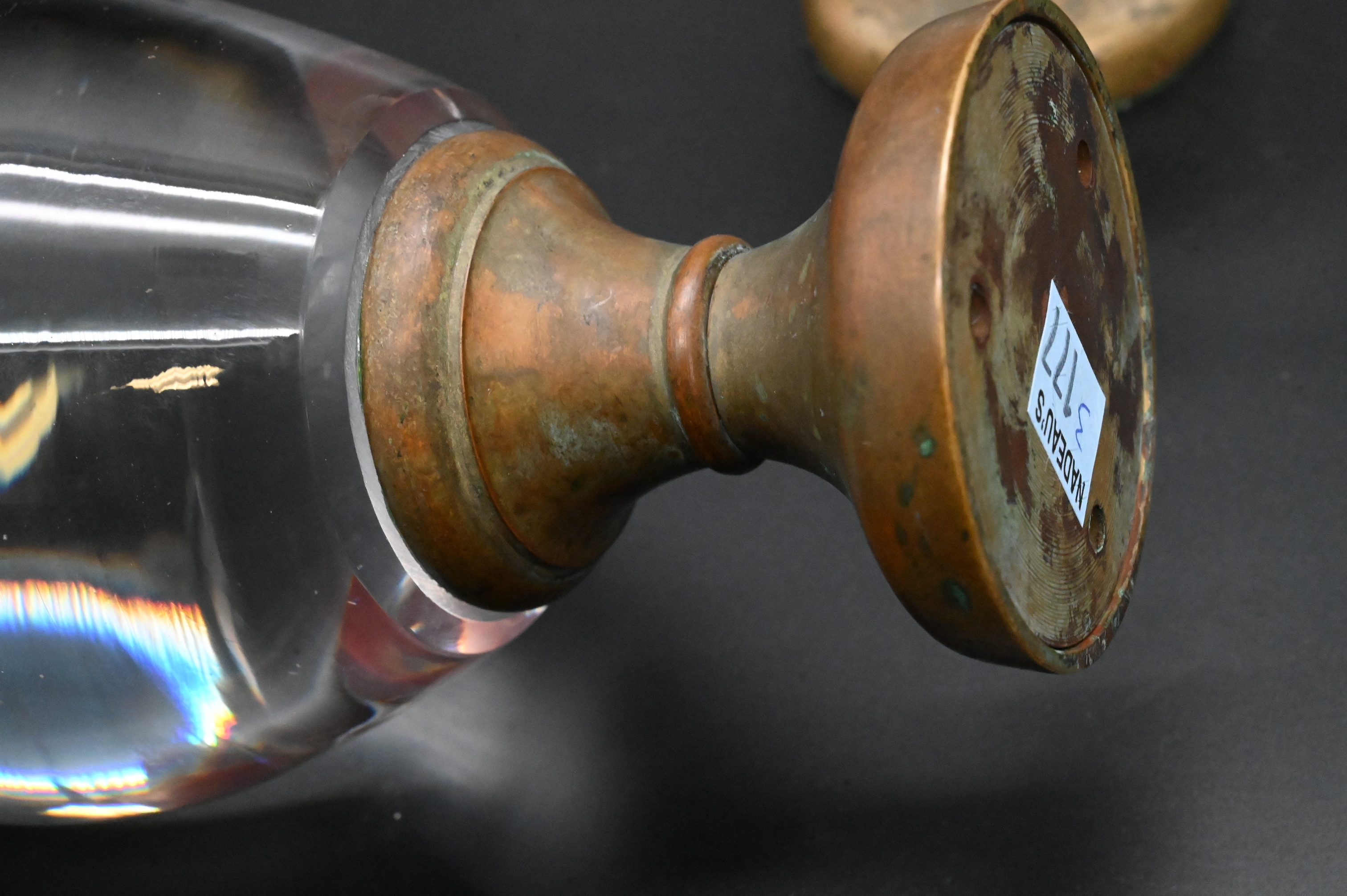 of teardrop form mounted on brass base marked made in France