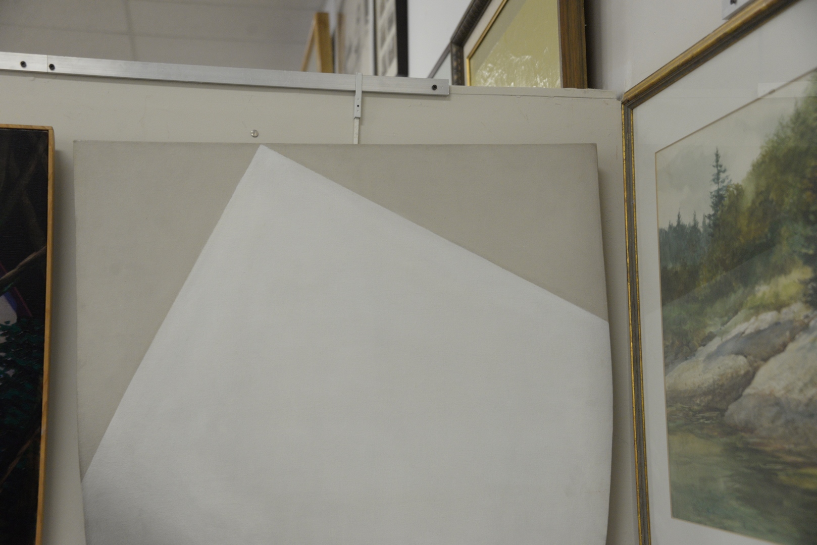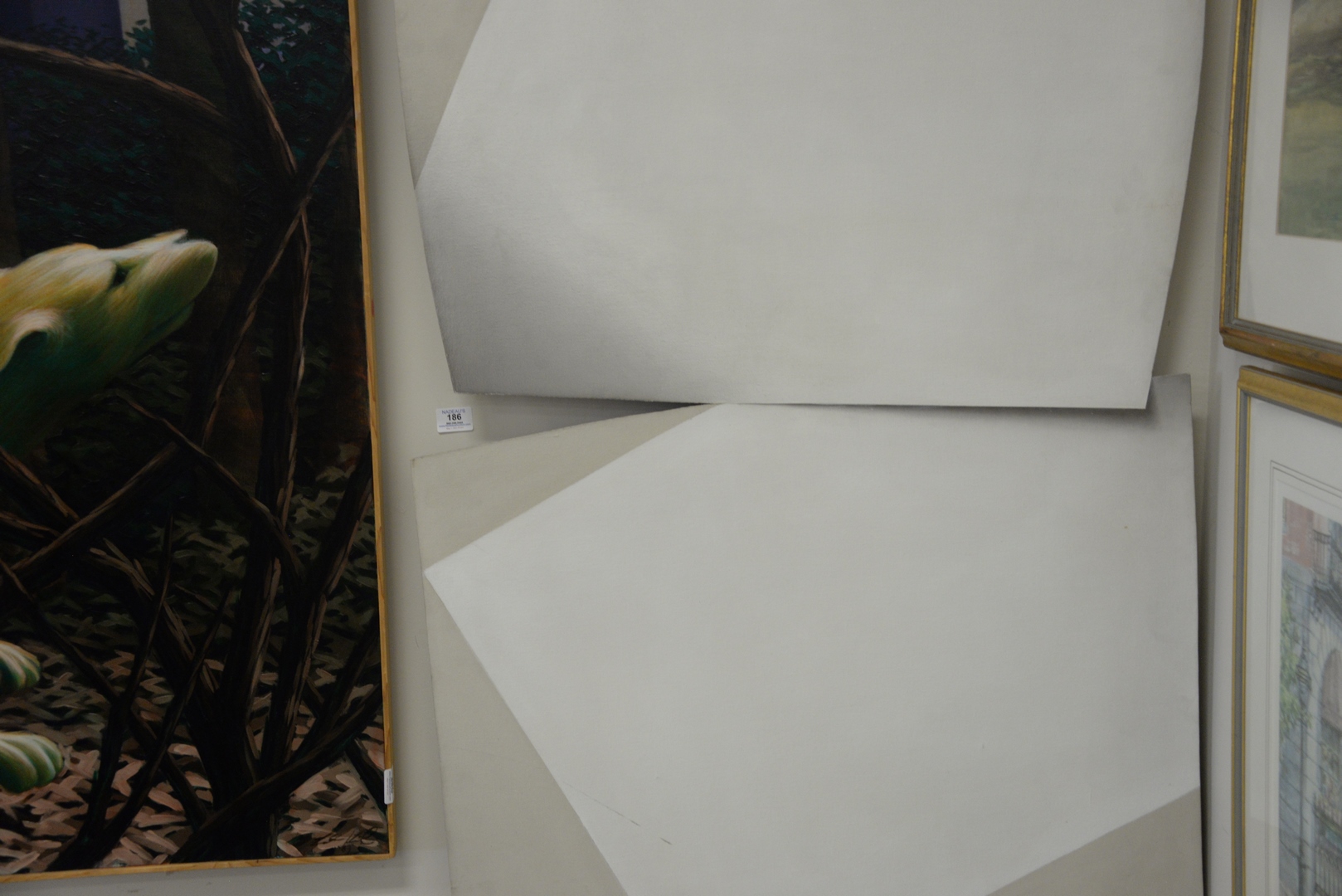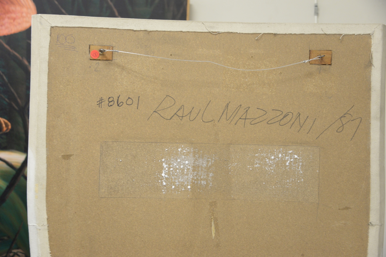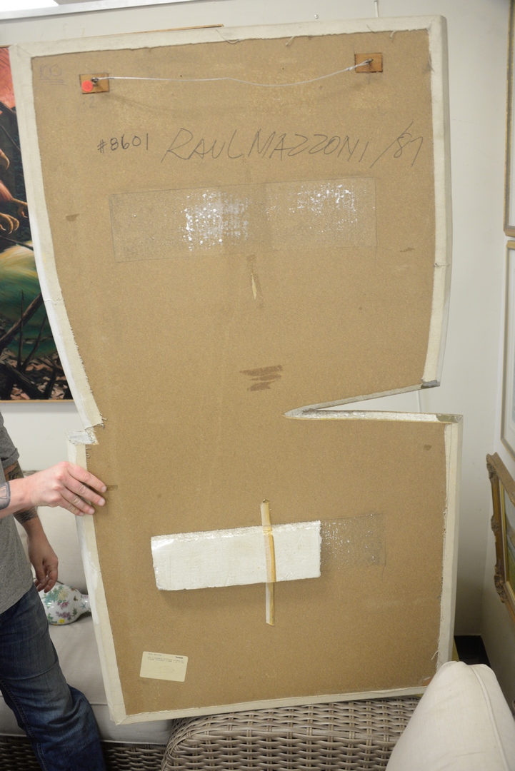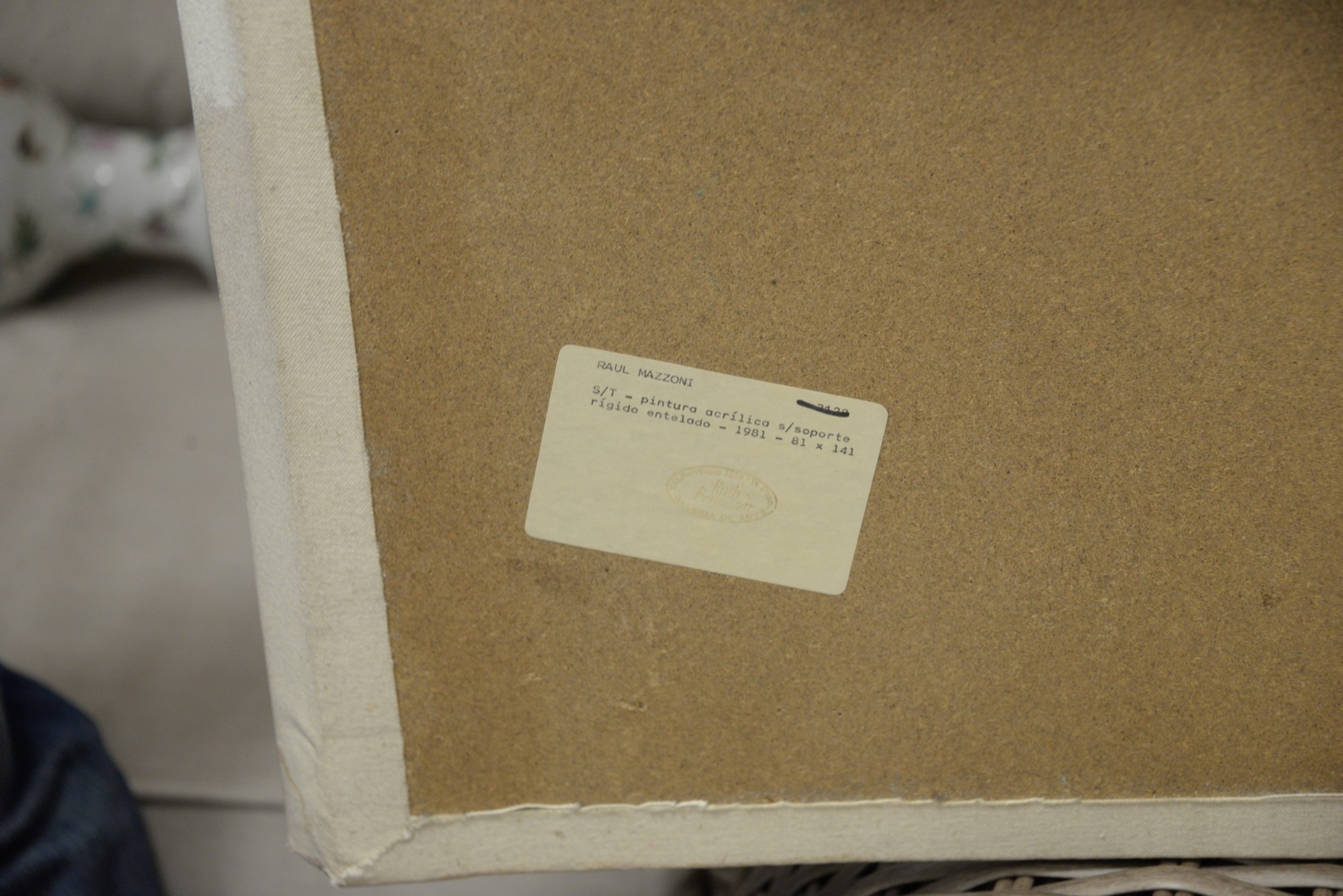 Lot 186: Raul Mazzoni (Argentinian, b. 1941), untitled, 1987, acrylic on canvas laid on board; signed and dated on the reverse “Raul Mazzoni 87″, 32 1/4″ x 56 1/4”.