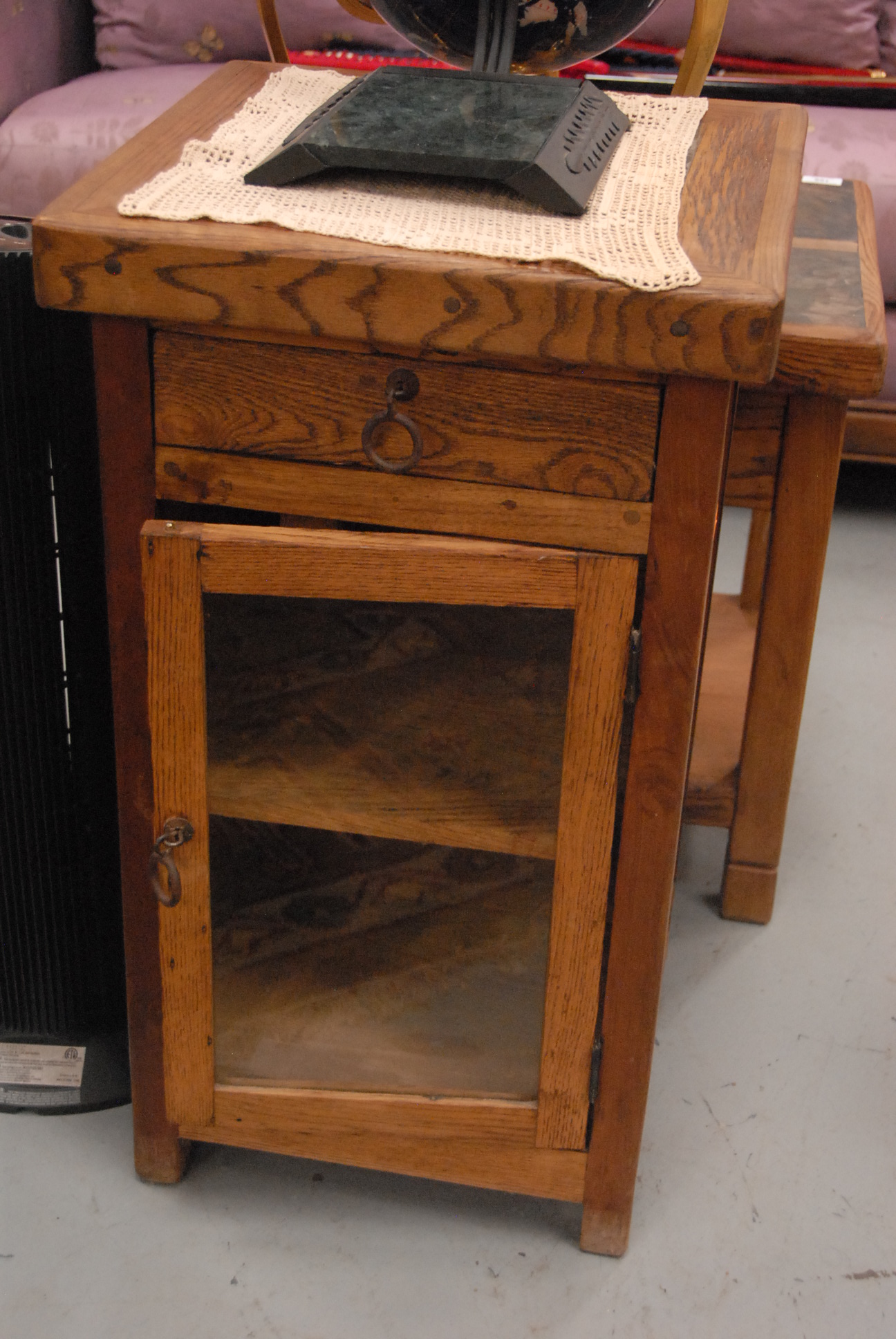 Three piece lot to include two stone top tables, and iron base for sofa table.