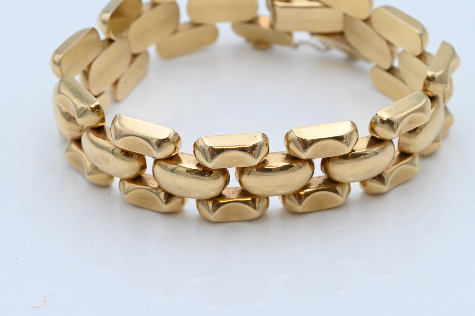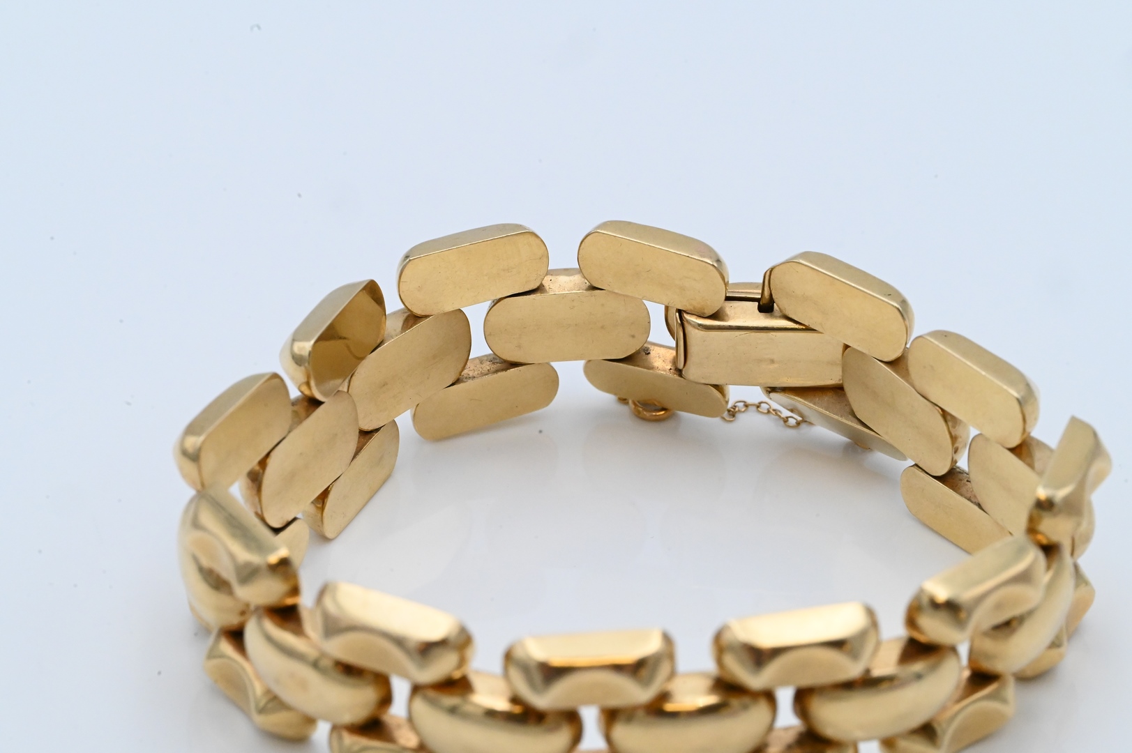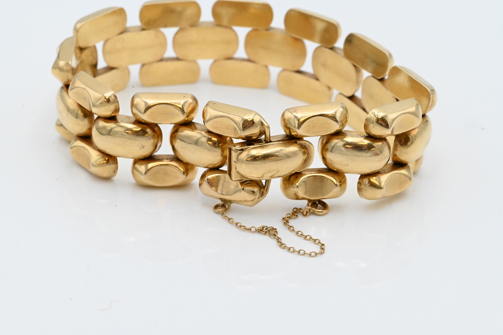 14 Karat Yellow Gold Bracelet made up of three rows of various links length 7 1/2 inches, 32.5 grams Provenance: An Estate from Redding, Connecticut Condition: normal wear