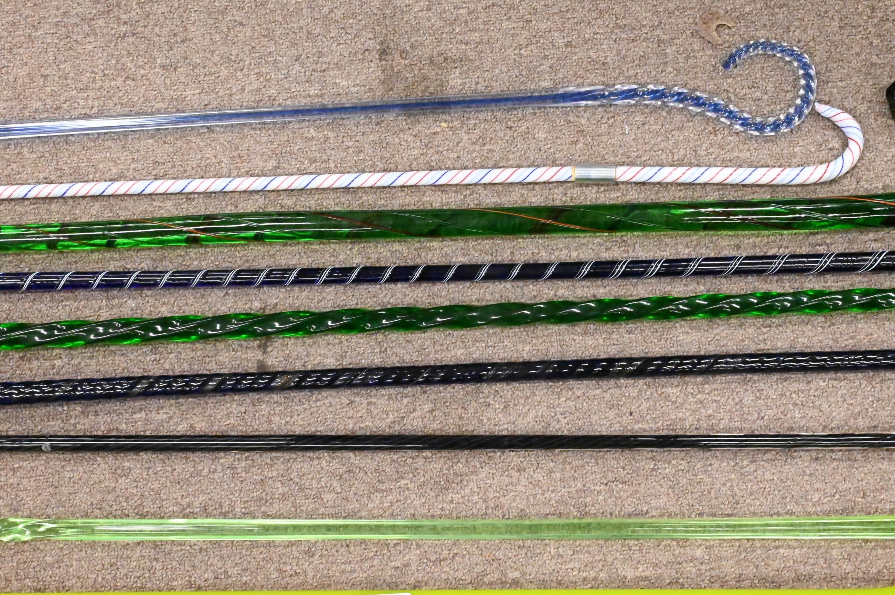 15 Various Glass Canes, in various sizes and colors, sizes range from 33 inches – 51 inches, Provenance: A Private Connecticut Shoreline Collection