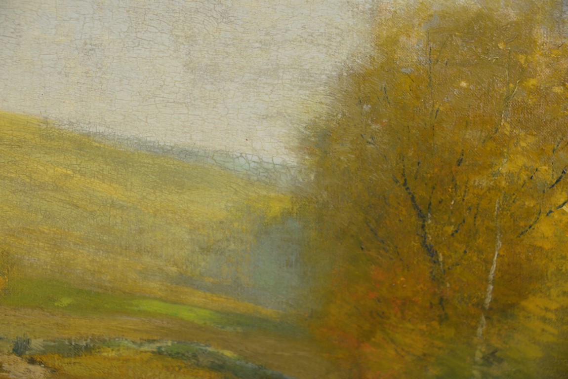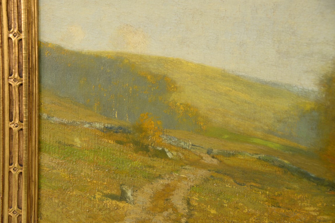 Lot 187: BRUCE CRANE 1857-1937 An Afternoon Ramble oil on canvas signed lower right and on label on reverse Bruce Crane in Newcomb Macklin frame 14 x 20