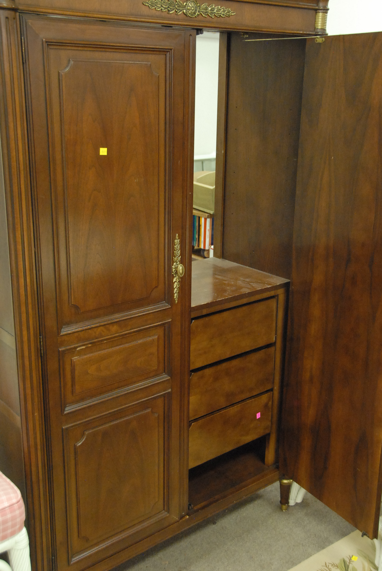Continental style two door cabinet with fitted drawers, ht. 72 1/2 in. wd. 43 in.