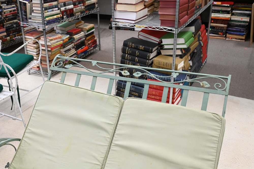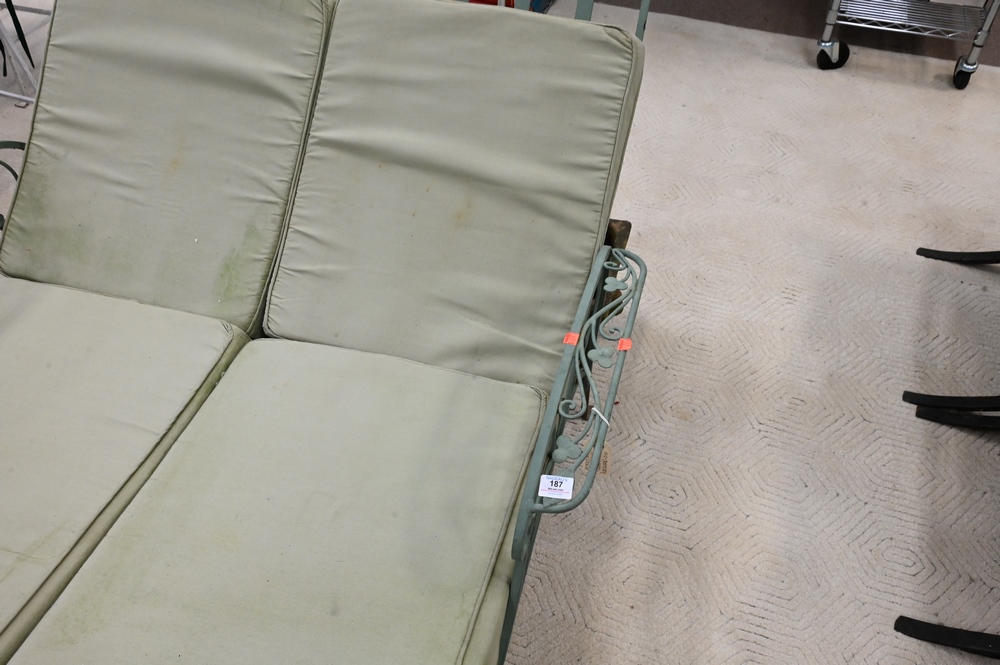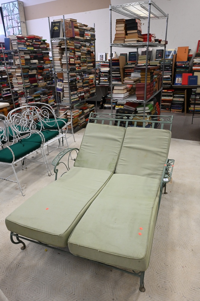 Double Iron Lounge, along with cushions, length 76 inches, width 49 inches.