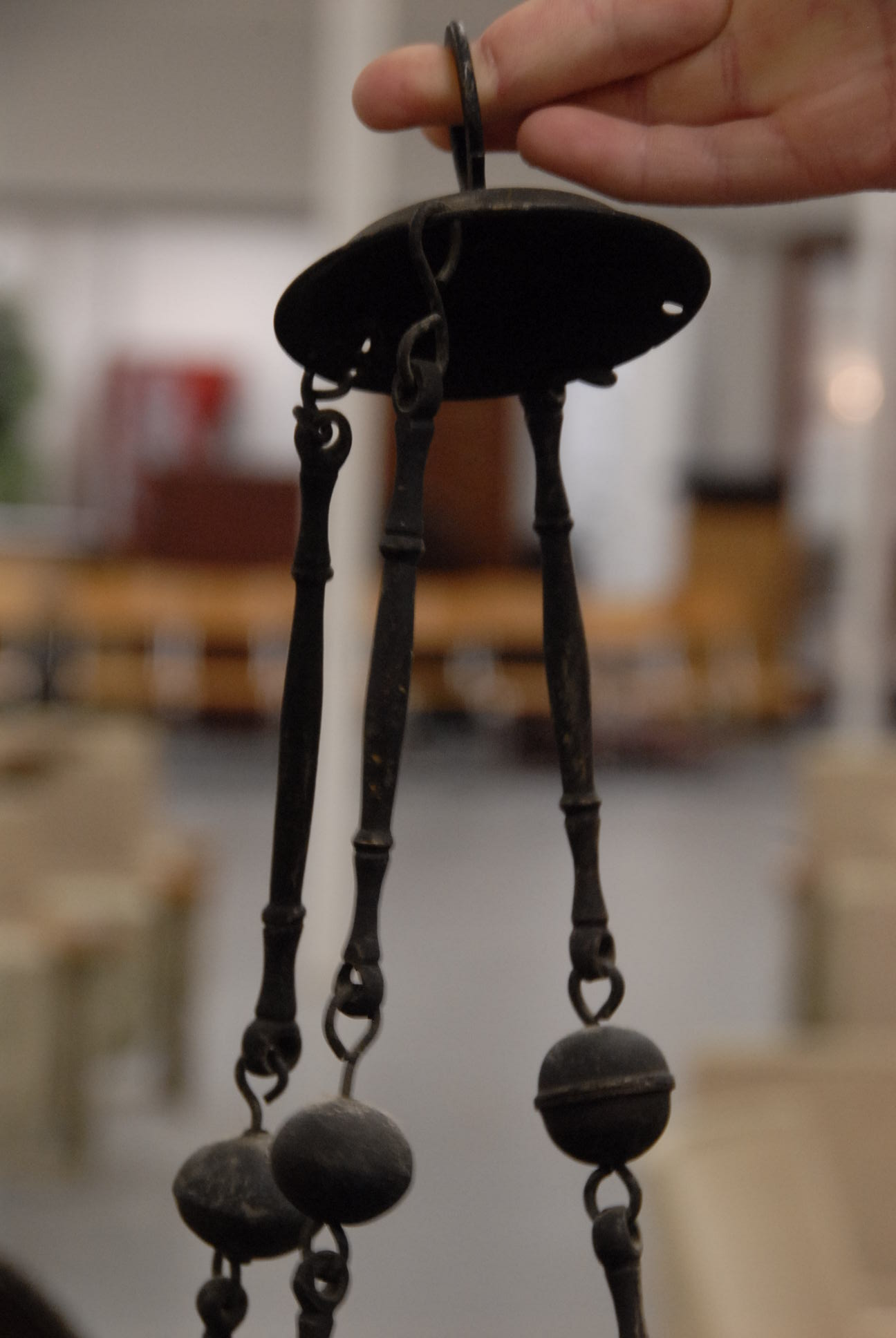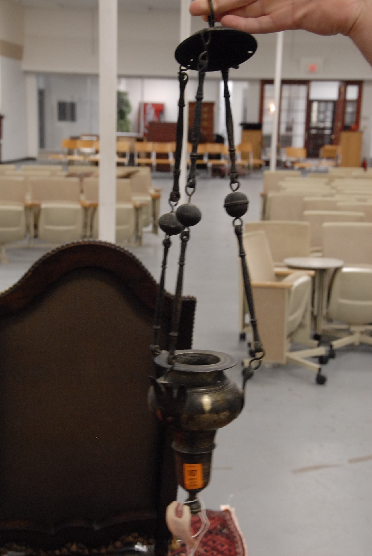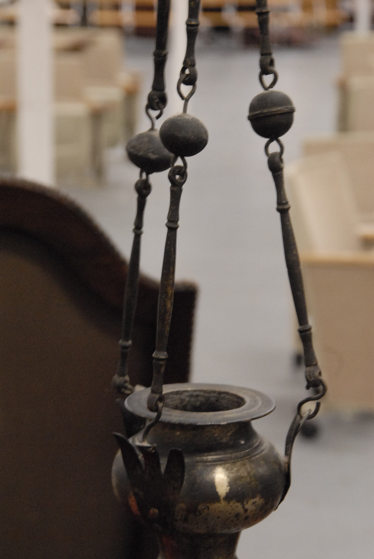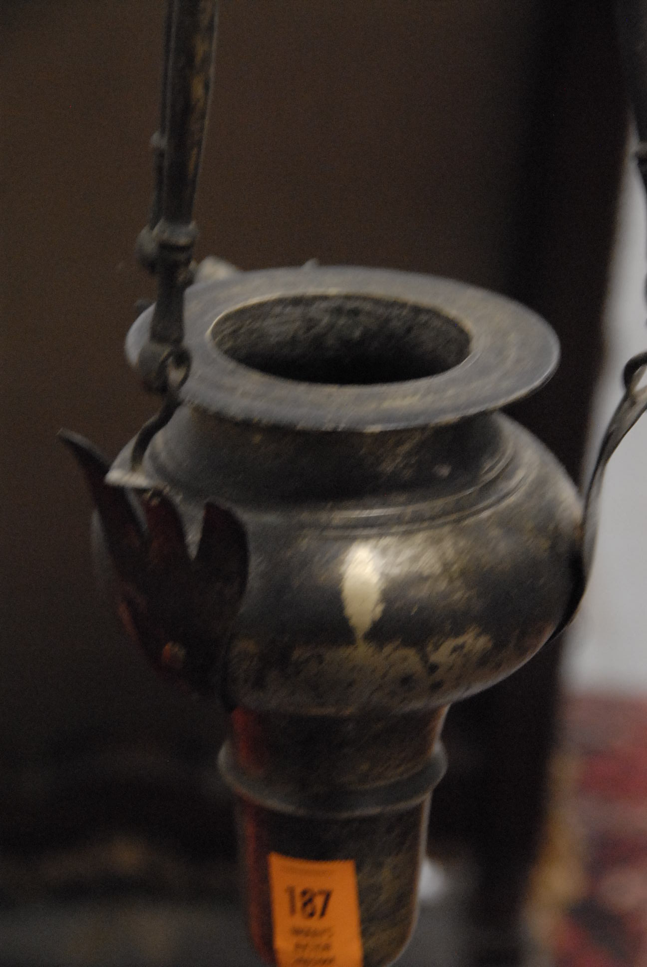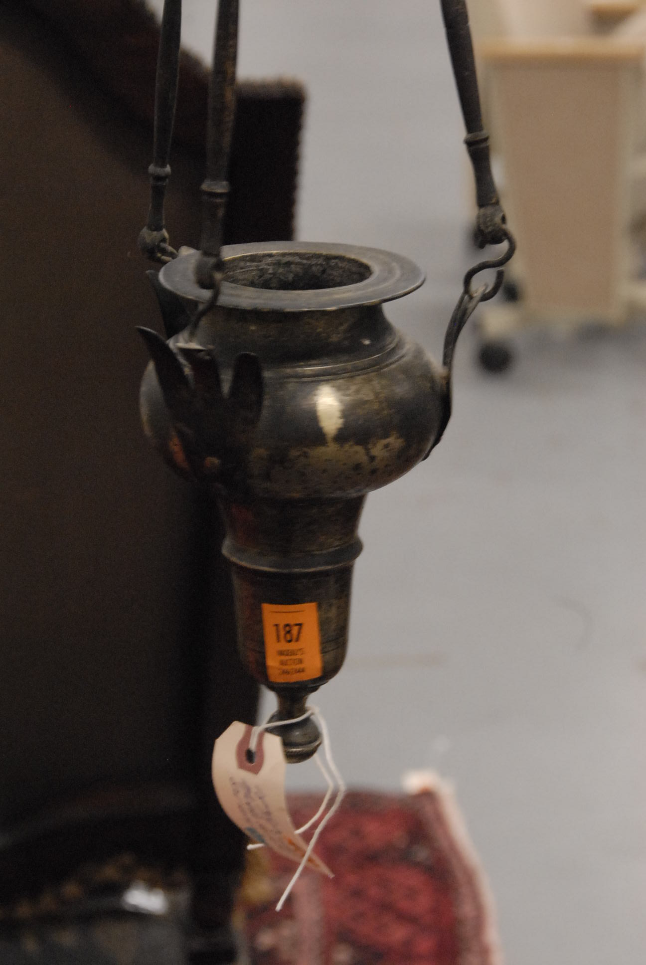 Early brass hanging oil lamp, possibly Mideastern 18th-early 19th century