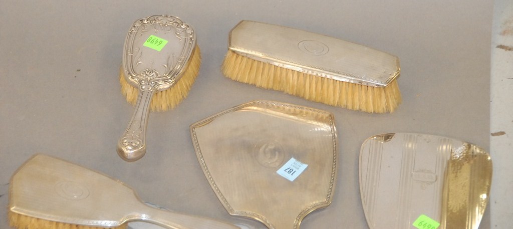 Five piece lot sterling silver dresser set not matching.