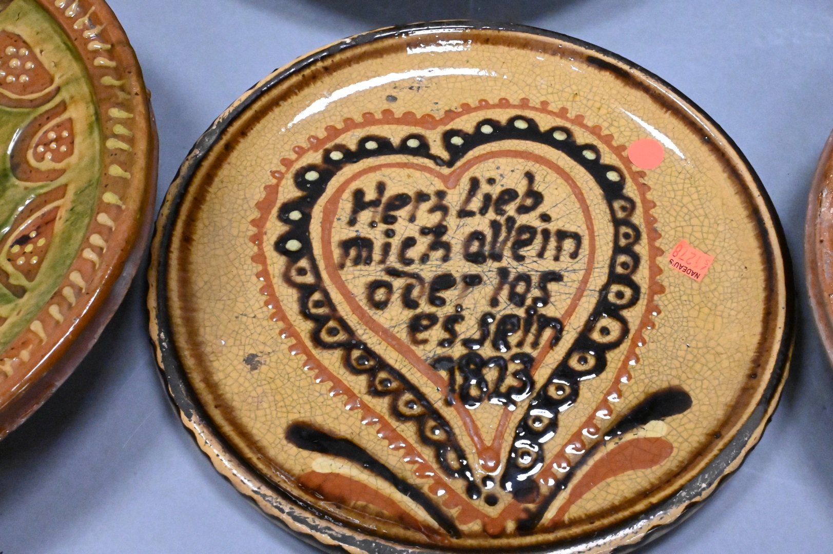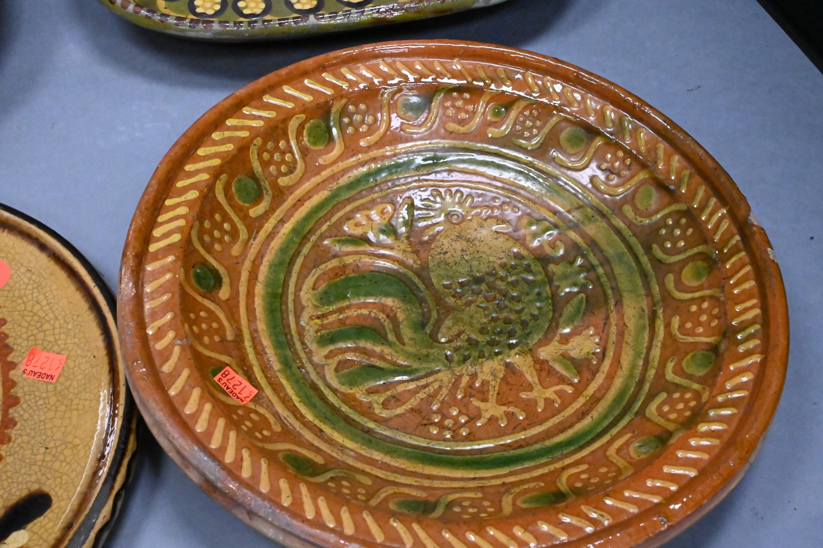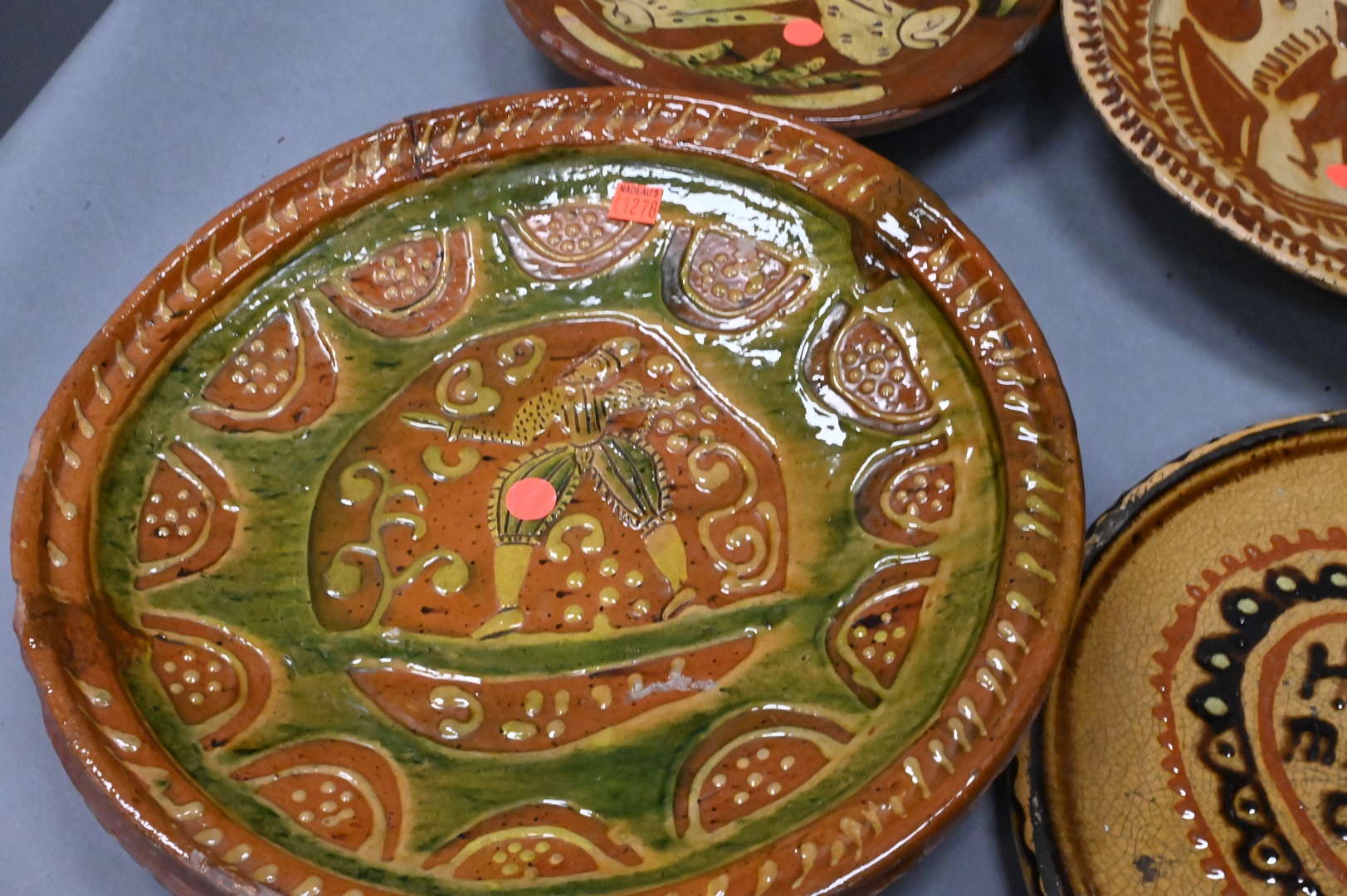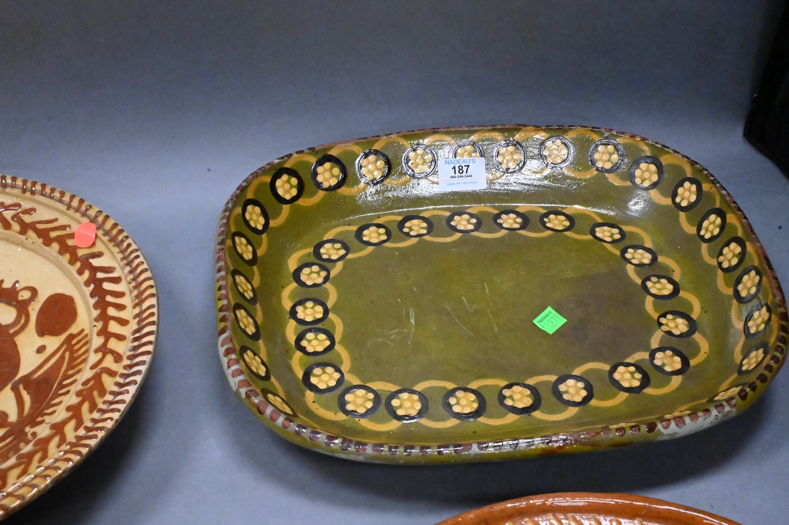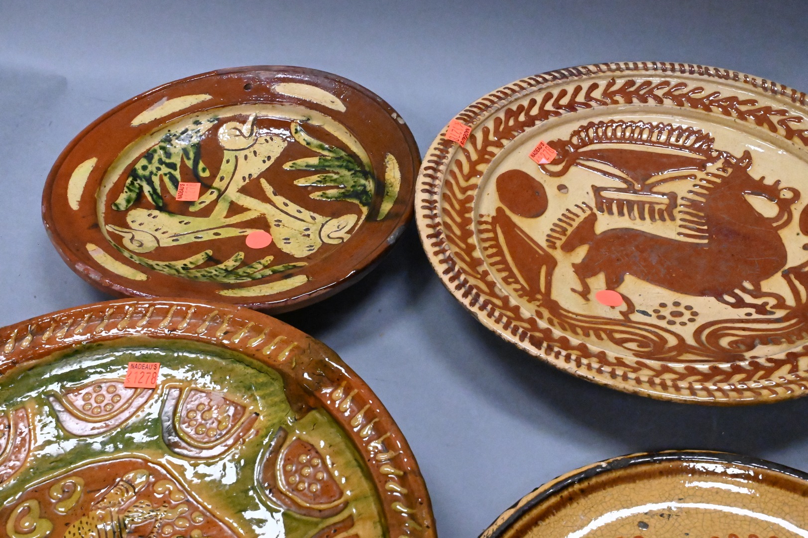 Lot 187: Group of Six Redware Pottery Trays and Chargers