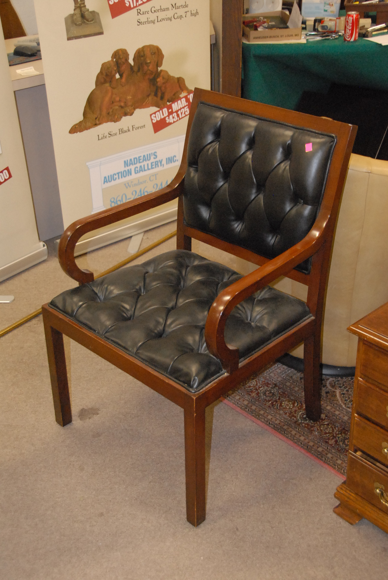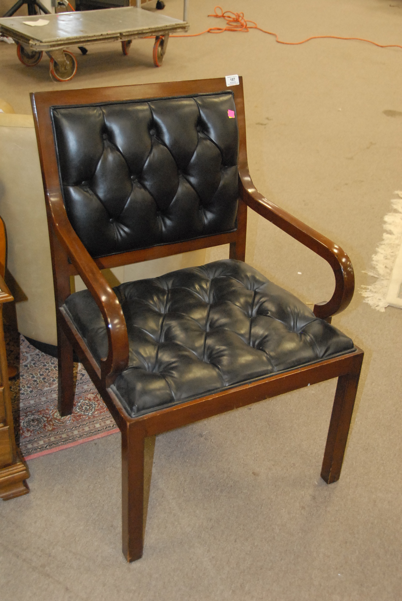 Pair of Chippendale style armchairs with tufted leather seats and backs.
