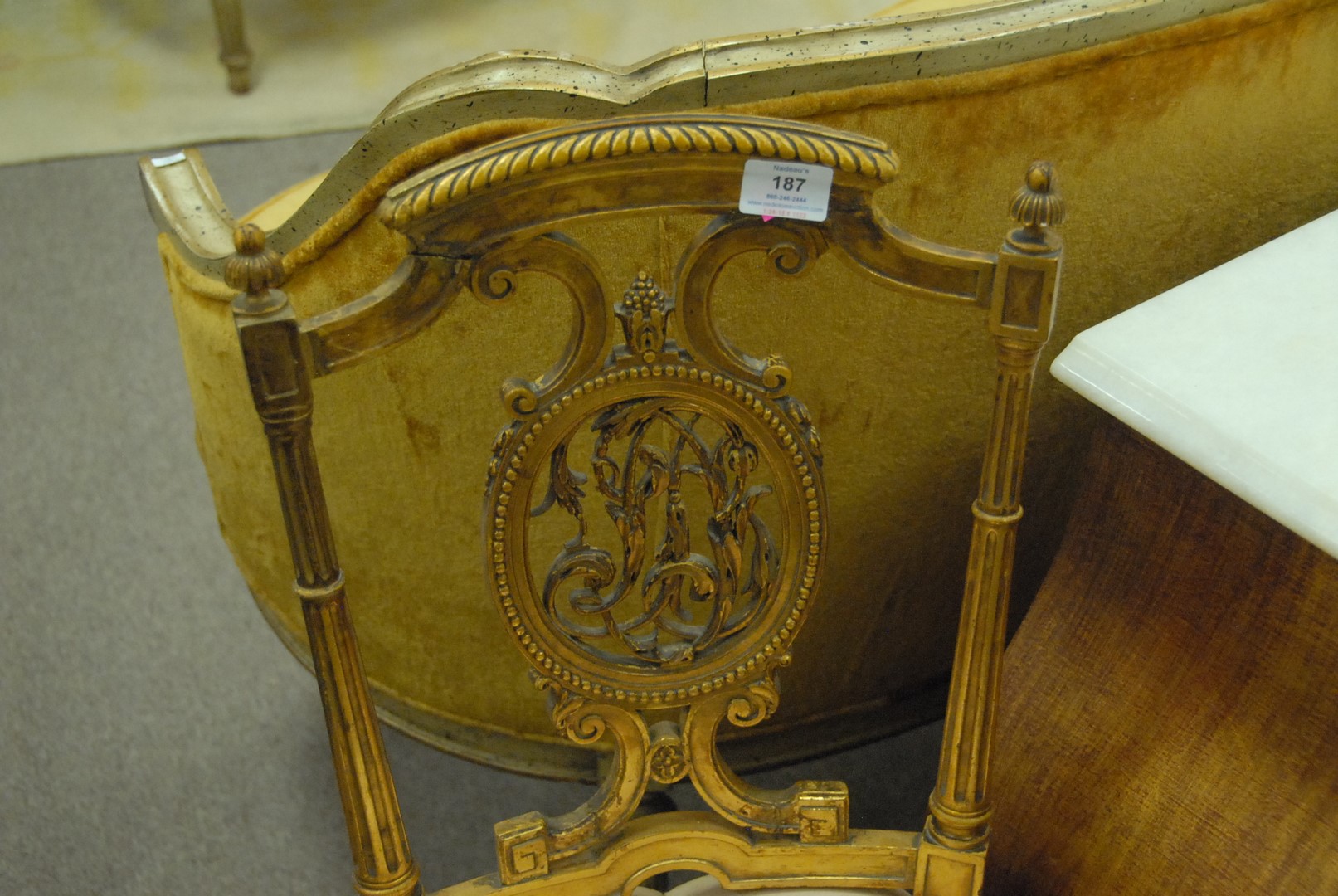 Pair of gilt Louis XVI side chairs.