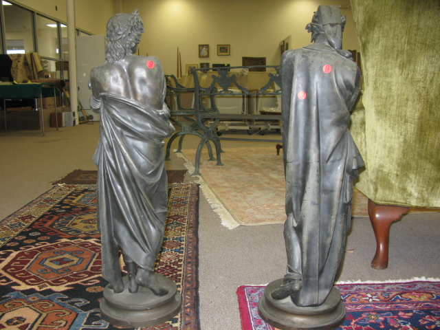 Pair of large white metal figures Dante and Virgil