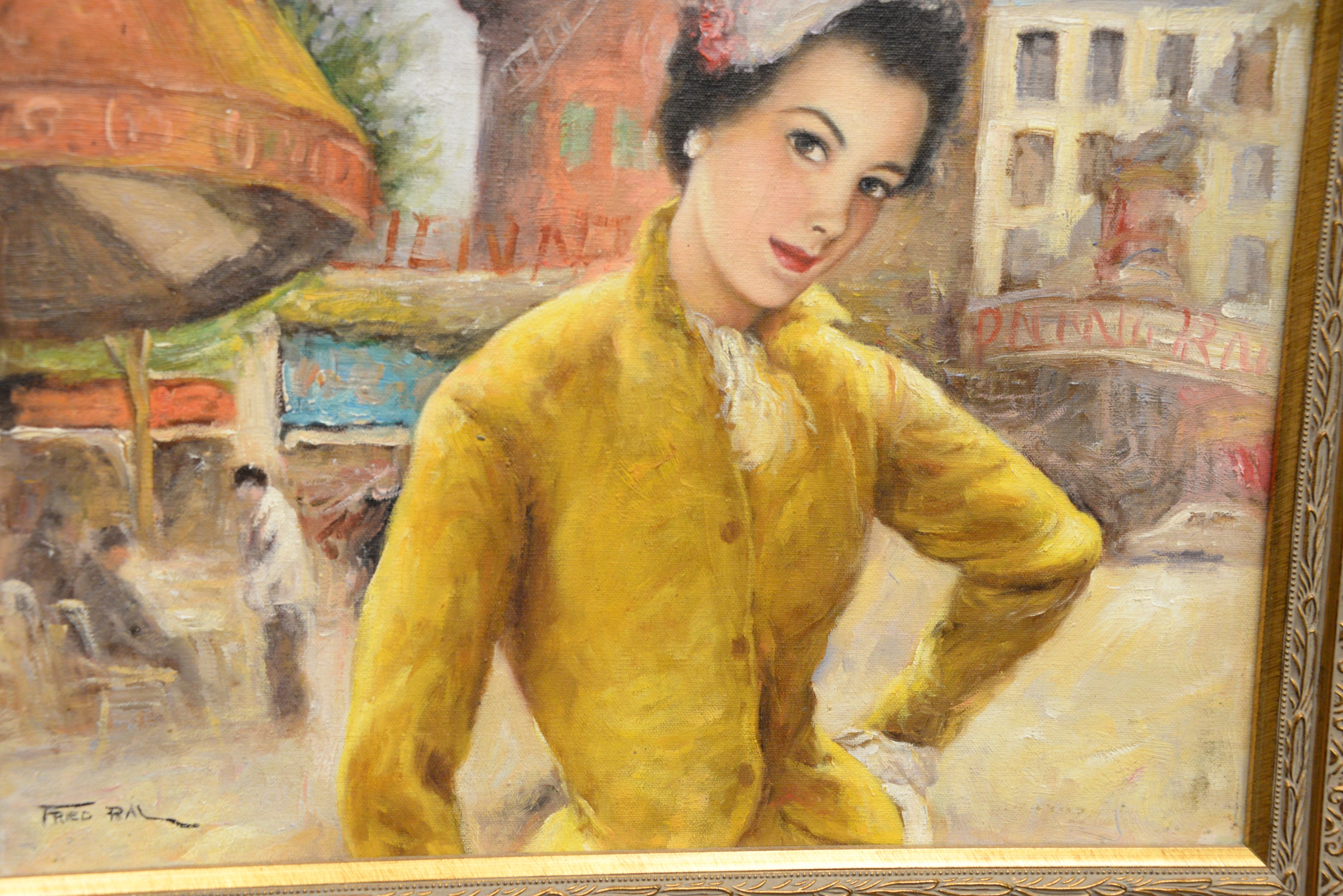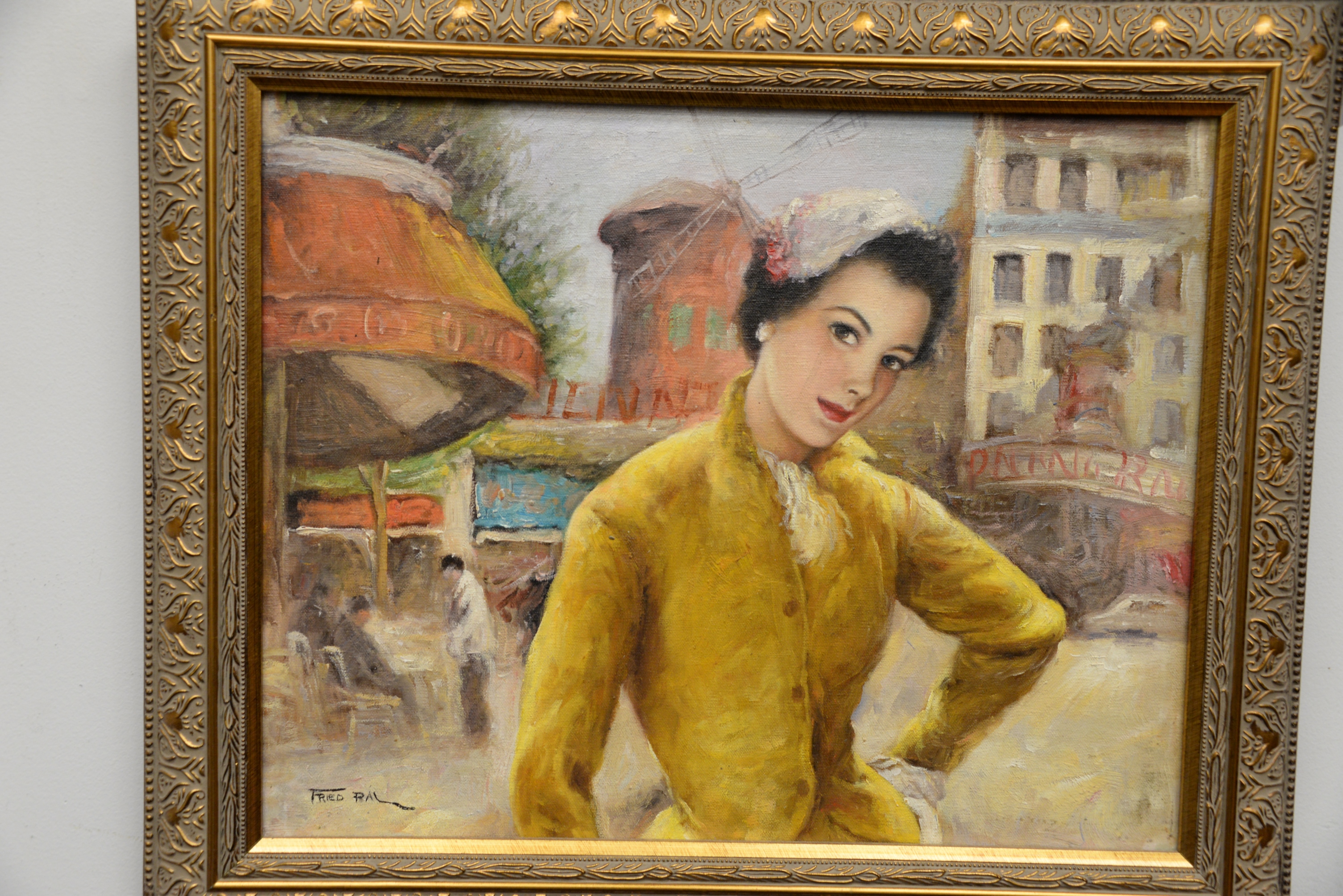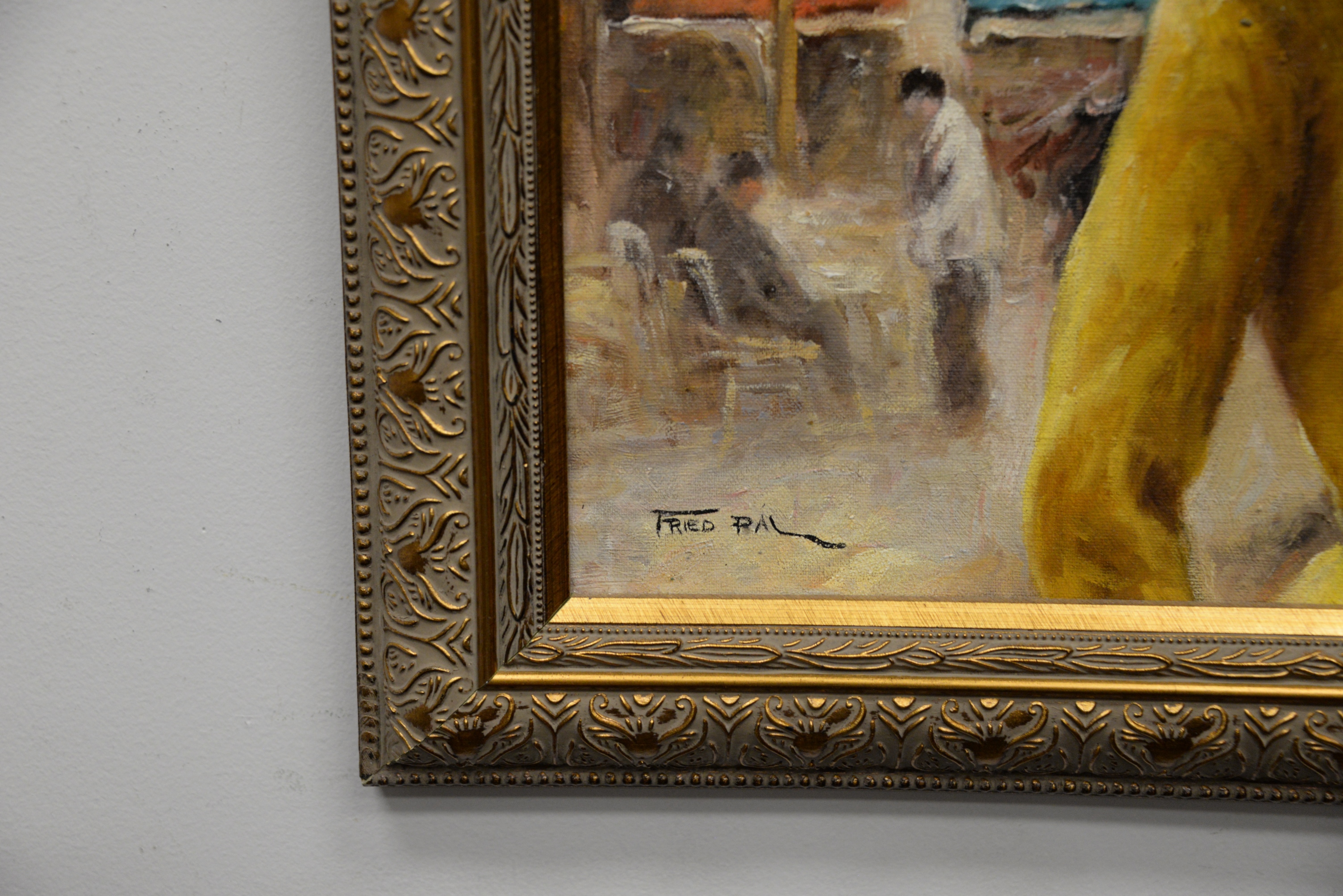 Pal Fried (Hungarian, 1893 – 1976) “Carmen in Yellow” oil on board signed lower left “Fried Pal” 15 1/2″ x 19 1/2″.