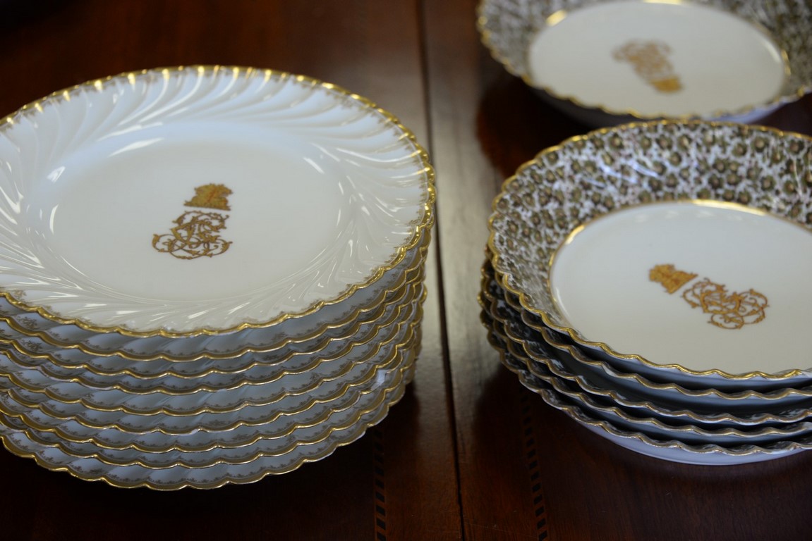 Lot 187: Set of scallop edged plates and bowls including set of 11 Louis Chanut 35 Rue Tronchet Paris bowls and a set of 15 E. Primard Paris …
