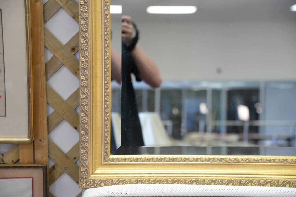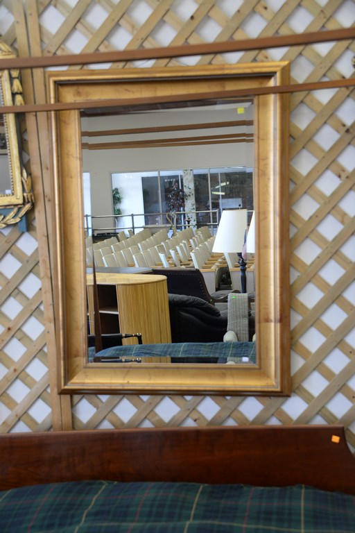Two Contemporary gold framed mirrors 45 x 33 and 45 x 35.