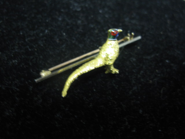 10 K gold bar mounted with 12 – 14 K gold pheasant