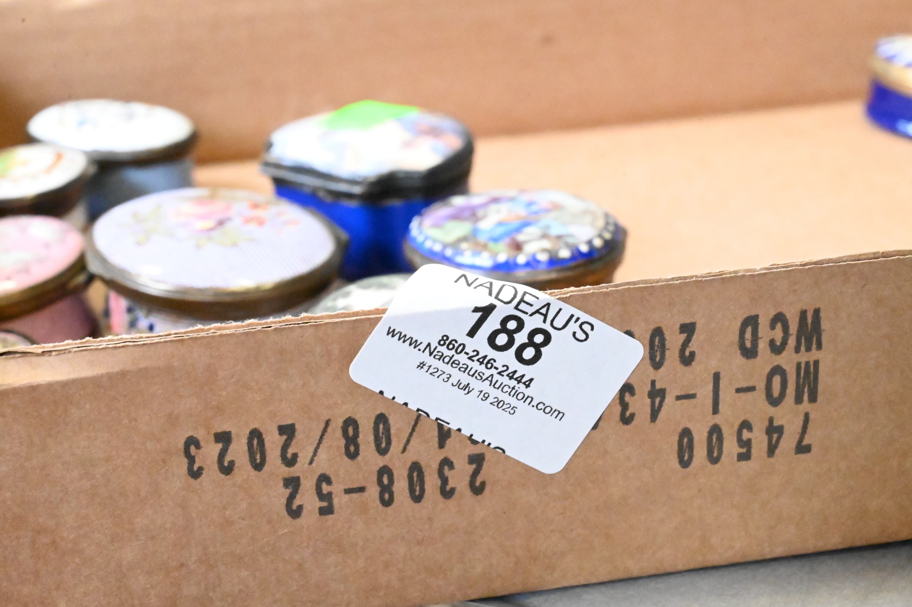 Lot 188: Eleven English Bilston Battersea Enamel Boxes