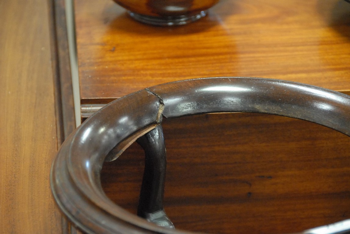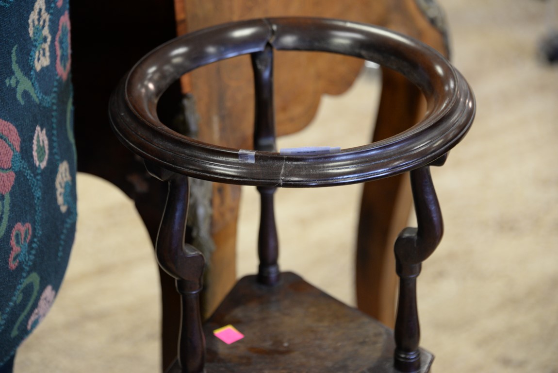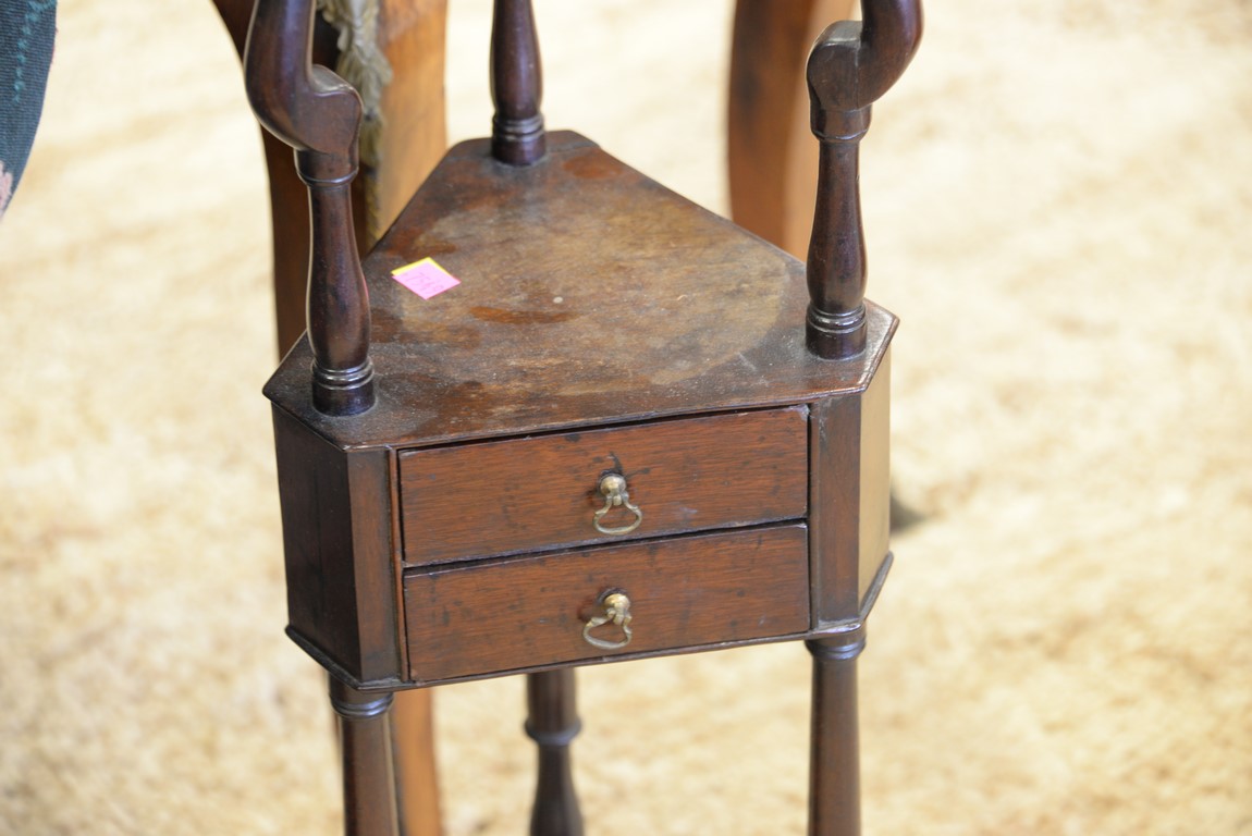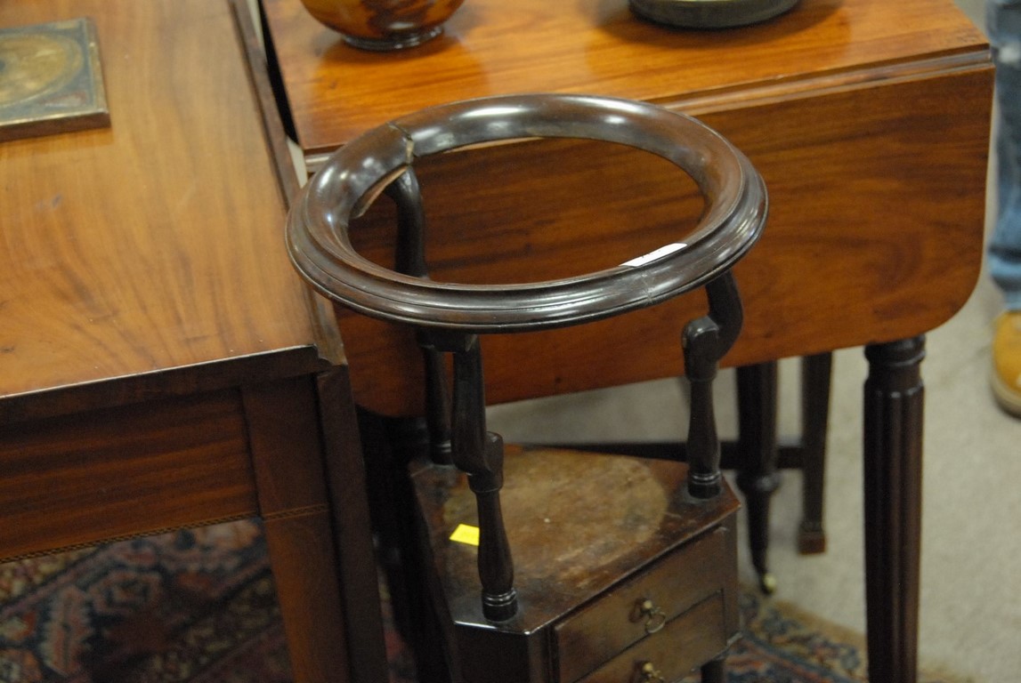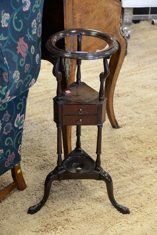English mahogany plant stand with two drawers over tripod base. ht. 31 in.