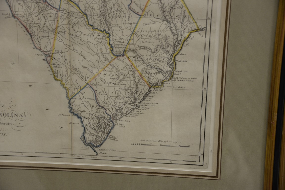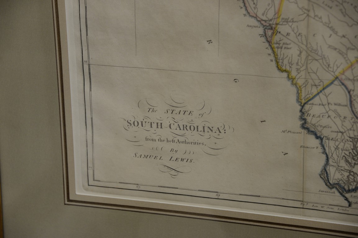 Folio engraving in colors from The State of South Carolina from the Beft Authorities by Samuel Lewis, W. Barker sculp, framed and matted, plate size 15 3/4 x 18. Property from Credit Suisse’s Americana Collection