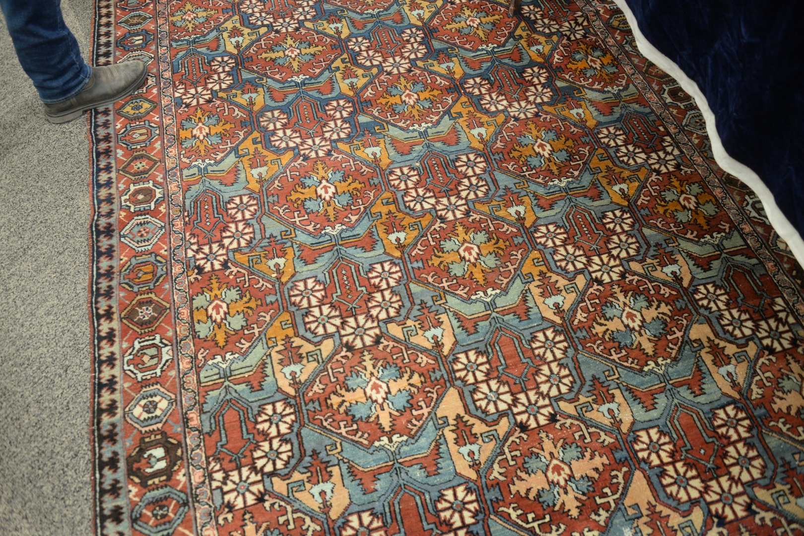 Oriental Hall Runner, 5′ 10 x 14′ 4. Provenance: Tag on reverse Peter Pap Oriental Rugs.