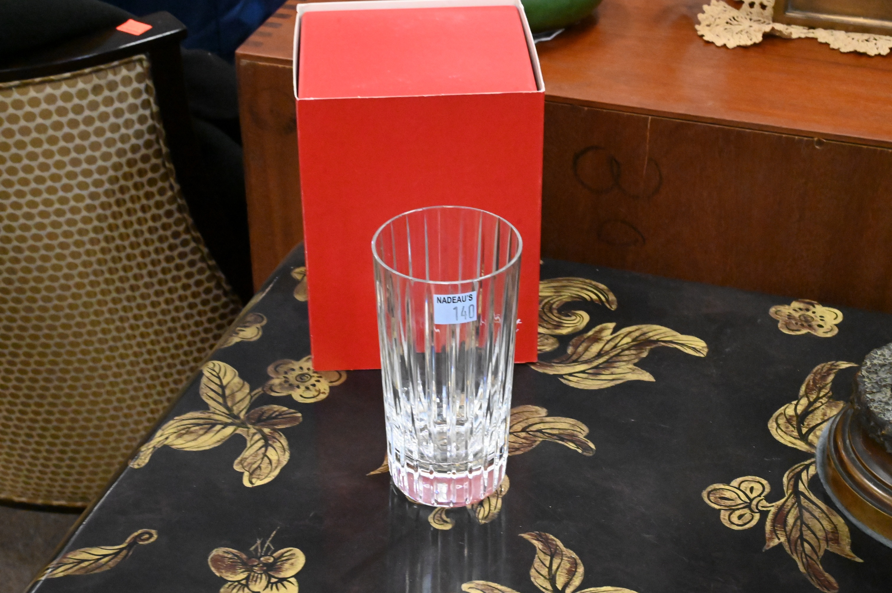 brilliantly cut clear crystal highball glasses in a vertical fluted pattern, each with the expected Baccarat clarity and weight, some in original boxes, etched Baccarat mark to base