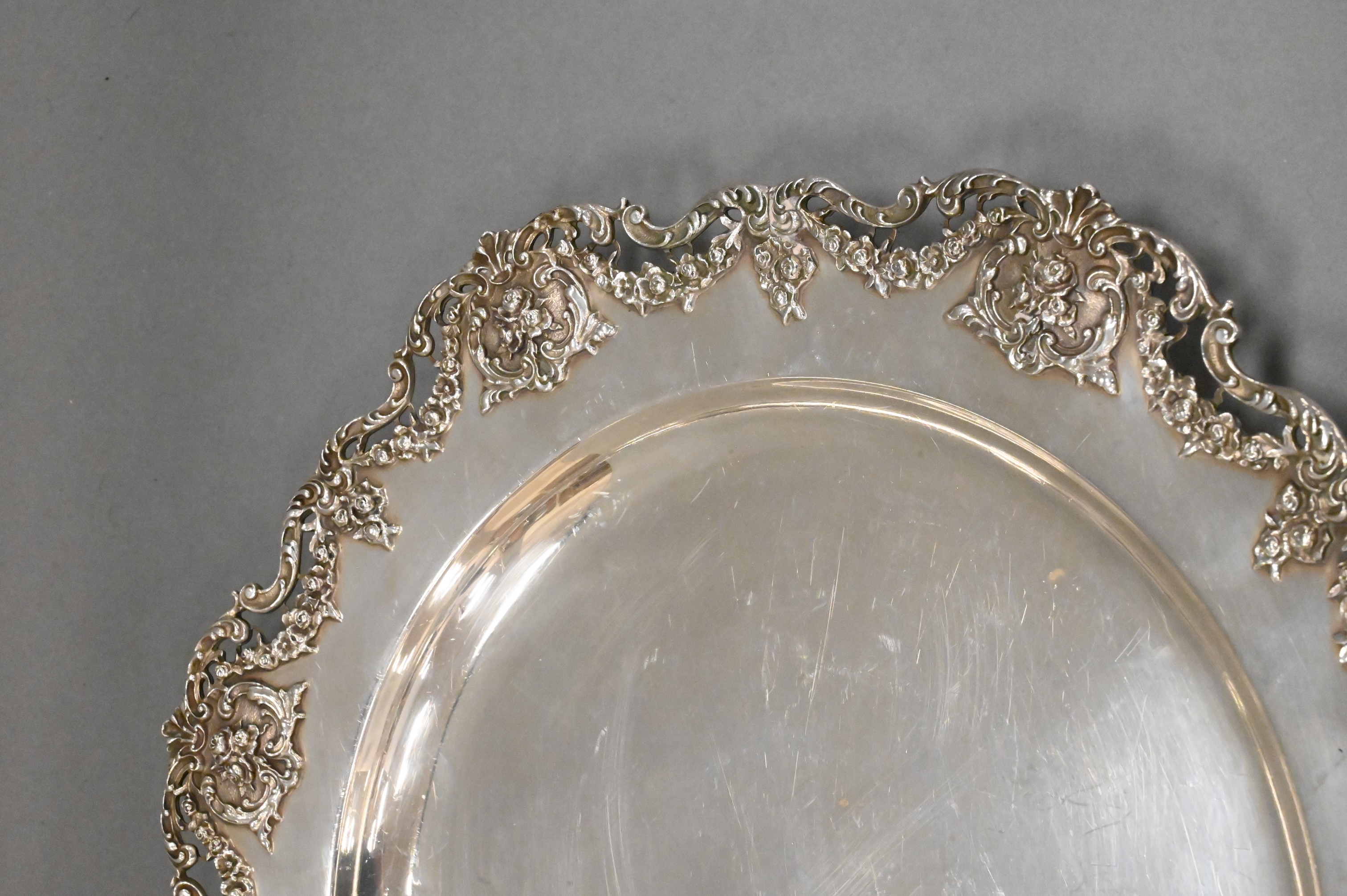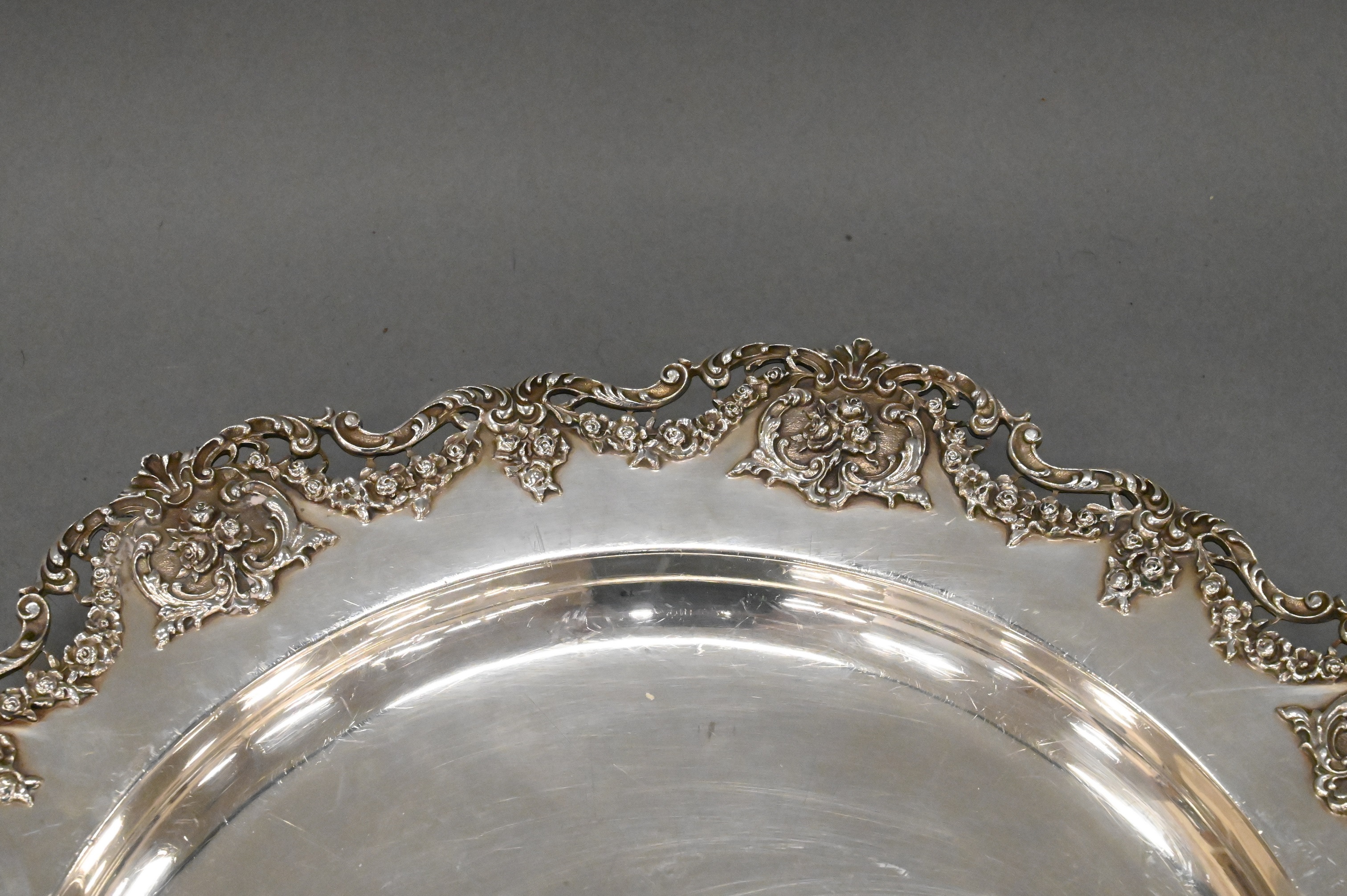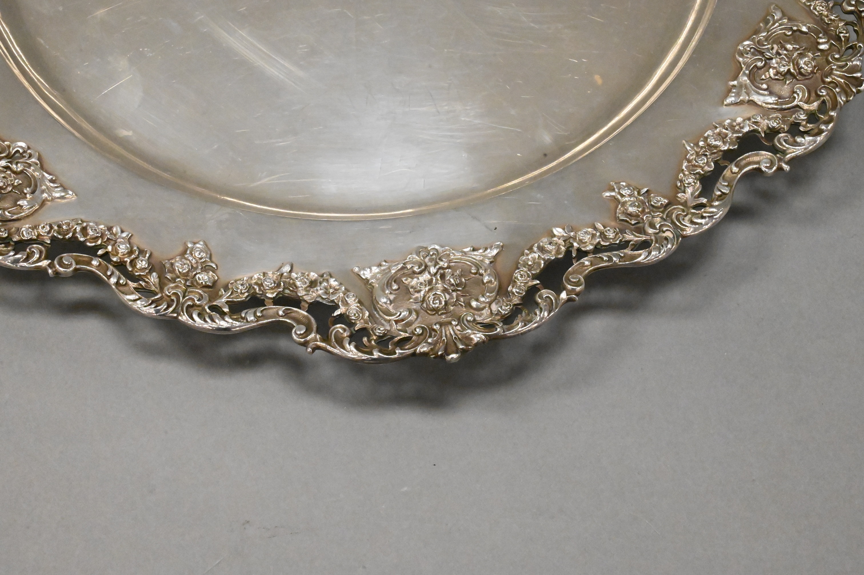 Sterling Silver Tray having Floral Reticulated Border