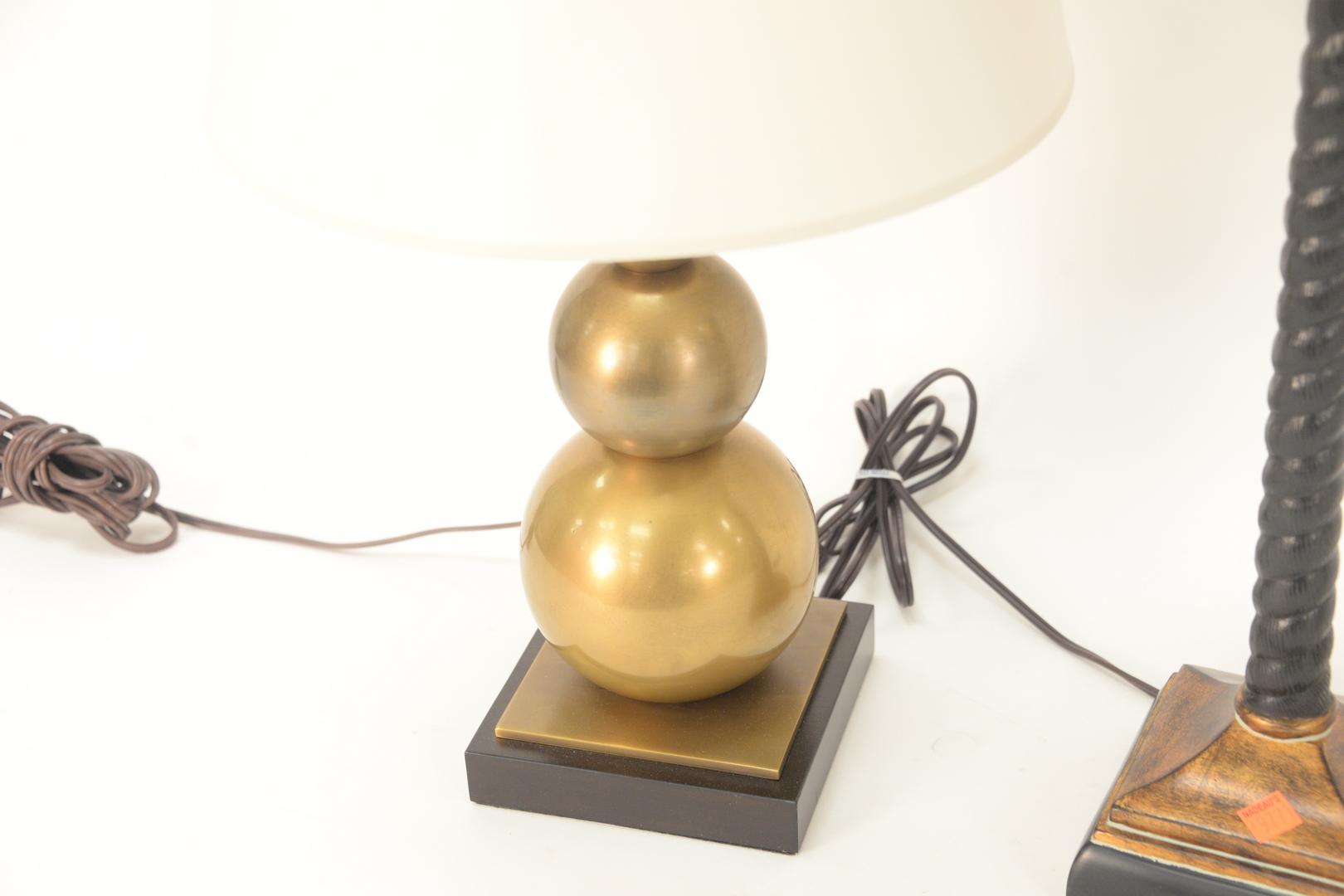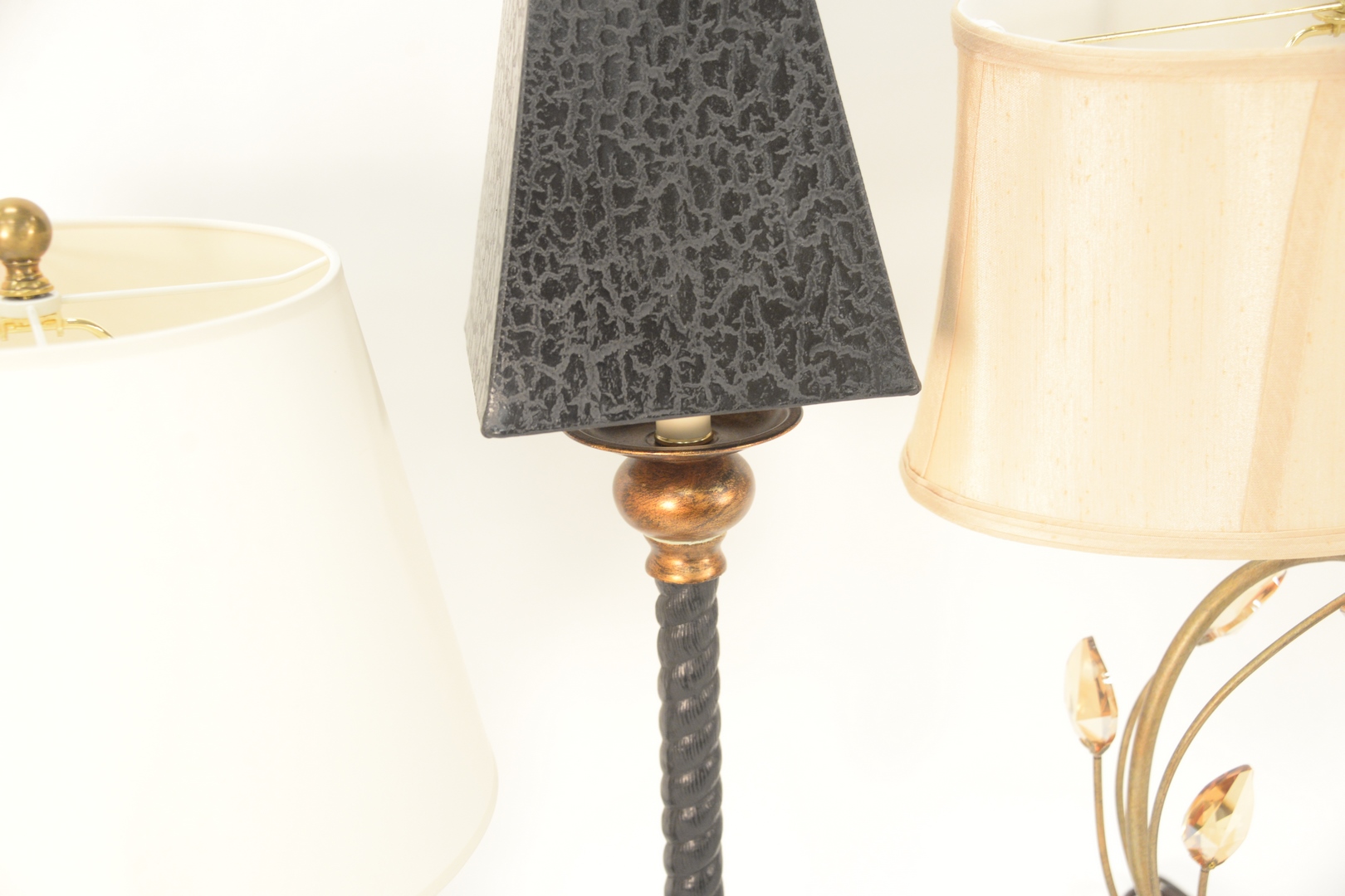 Three Contemporary Table Lamps, two by Uttermost, tallest 31 inches.