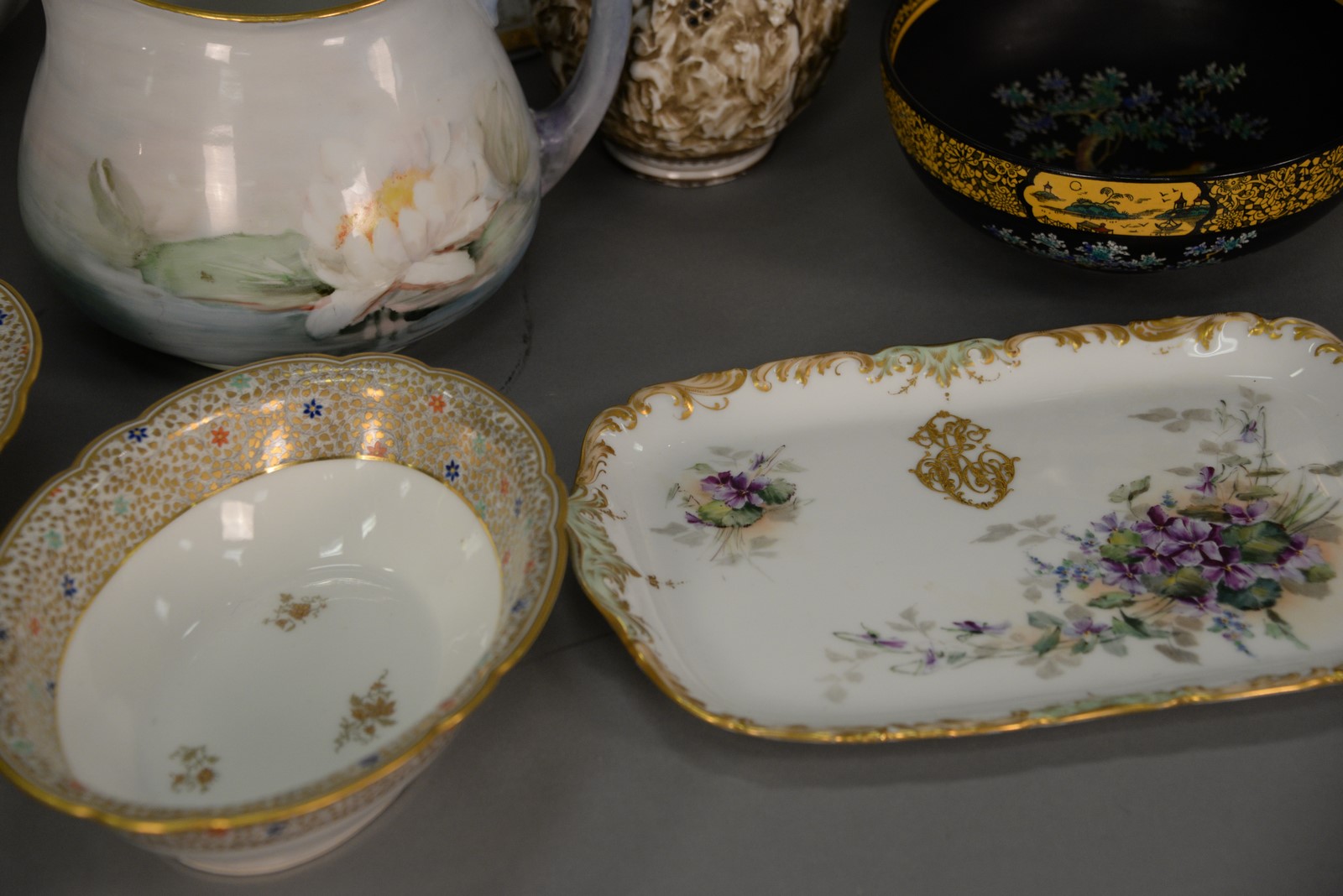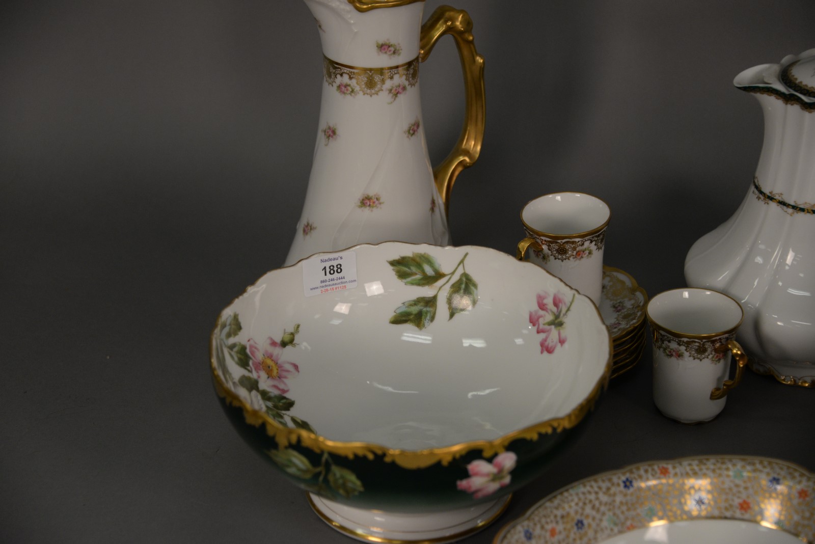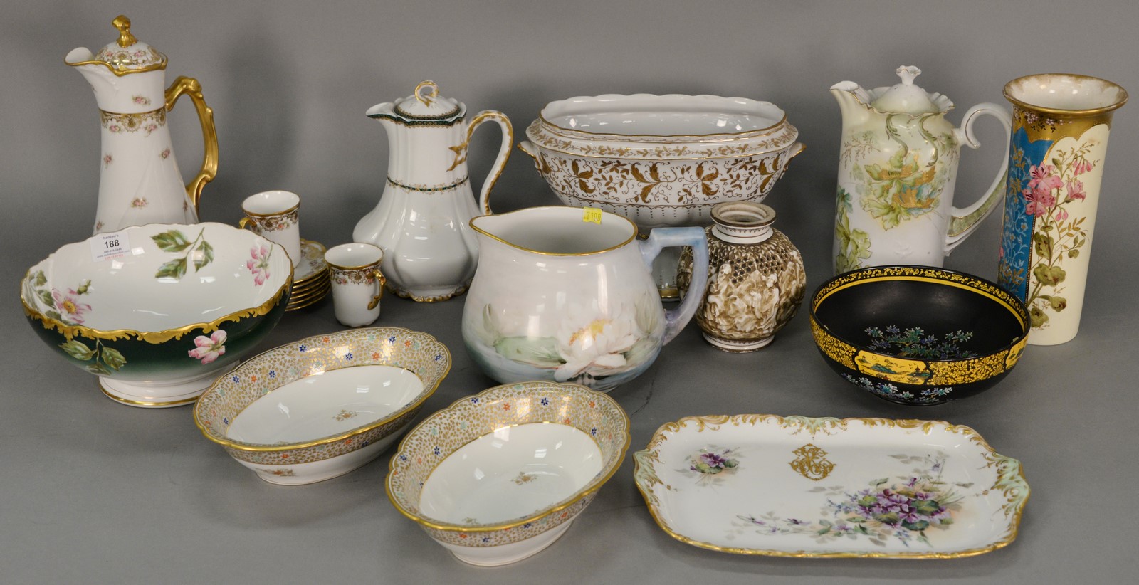 Lot 188: Twelve pieces of porcelain including three coffee pots, hand painted Bavaria pitcher, two vases, pair of Haviland Limoges vegetable …