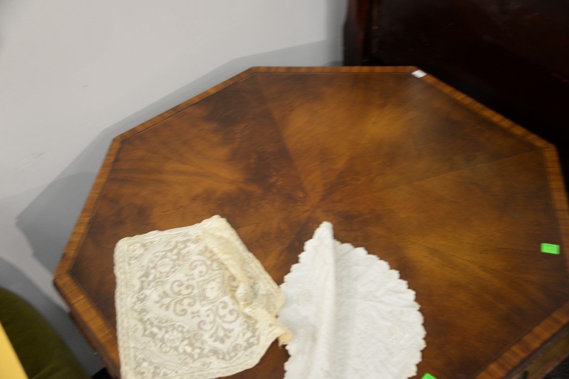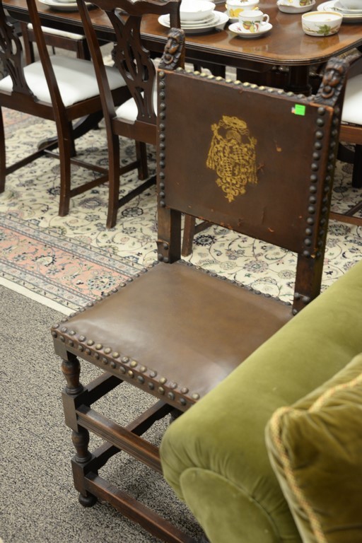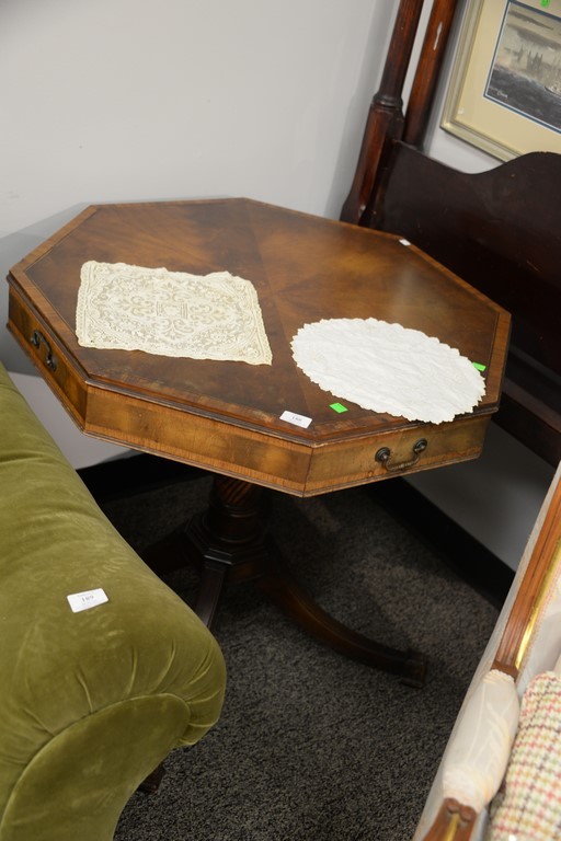 Two piece lot including a leather chair and an octagon table. ht. 28in., top: 30 x 30