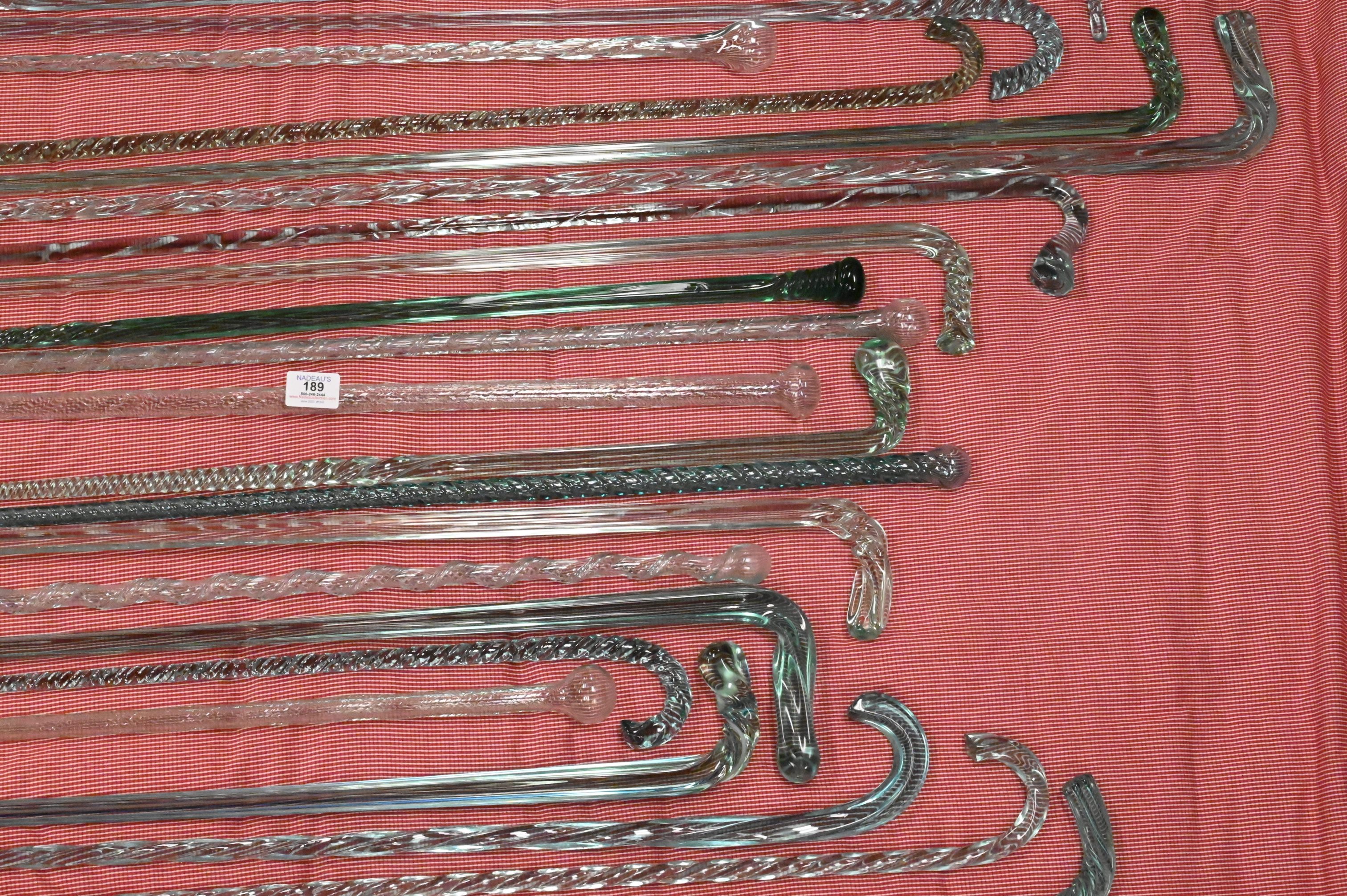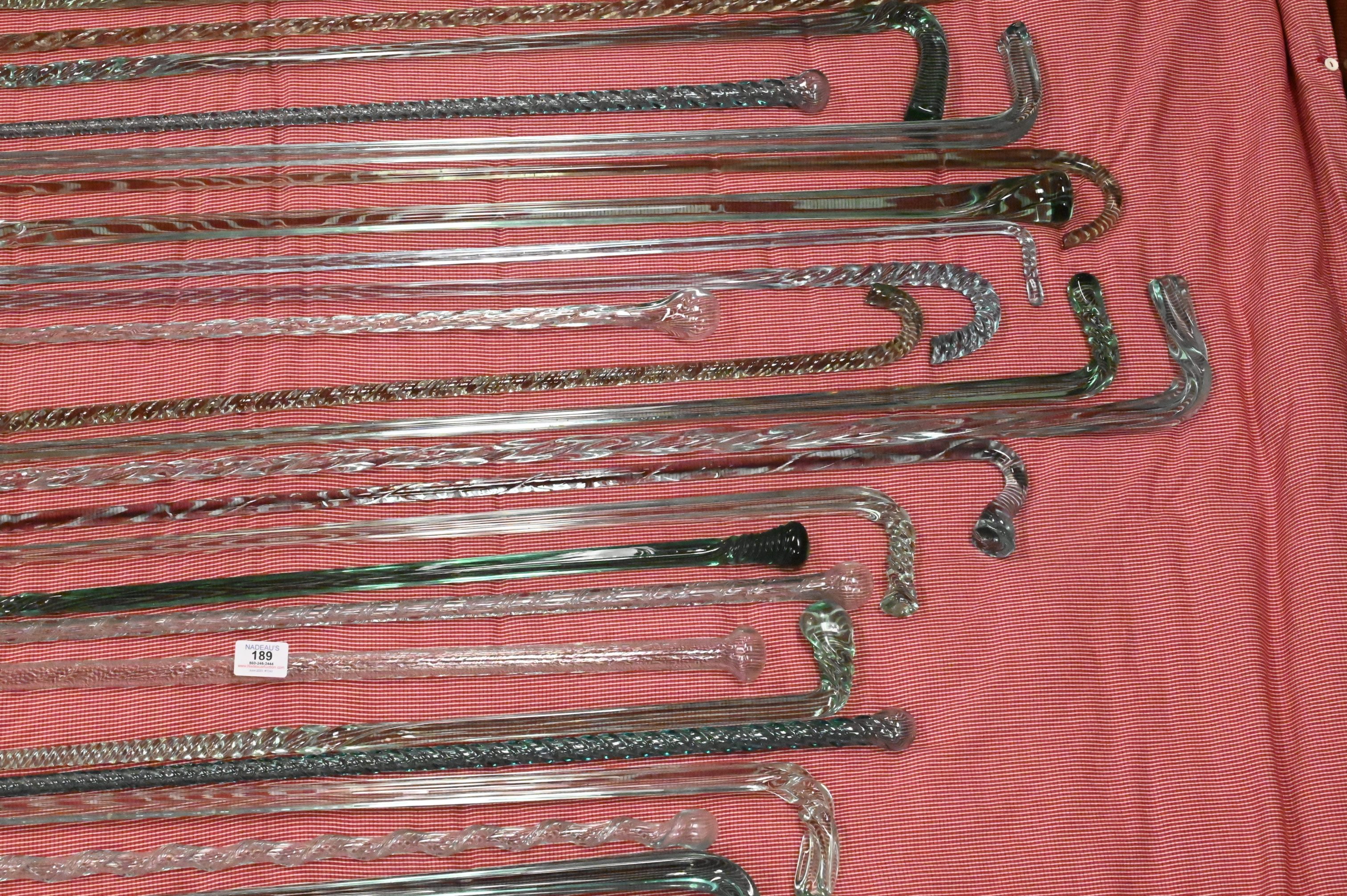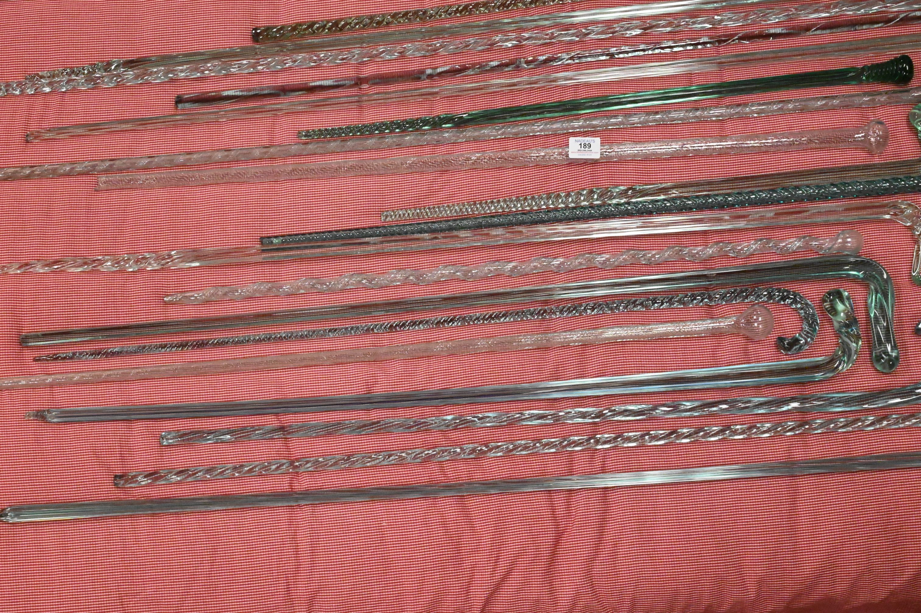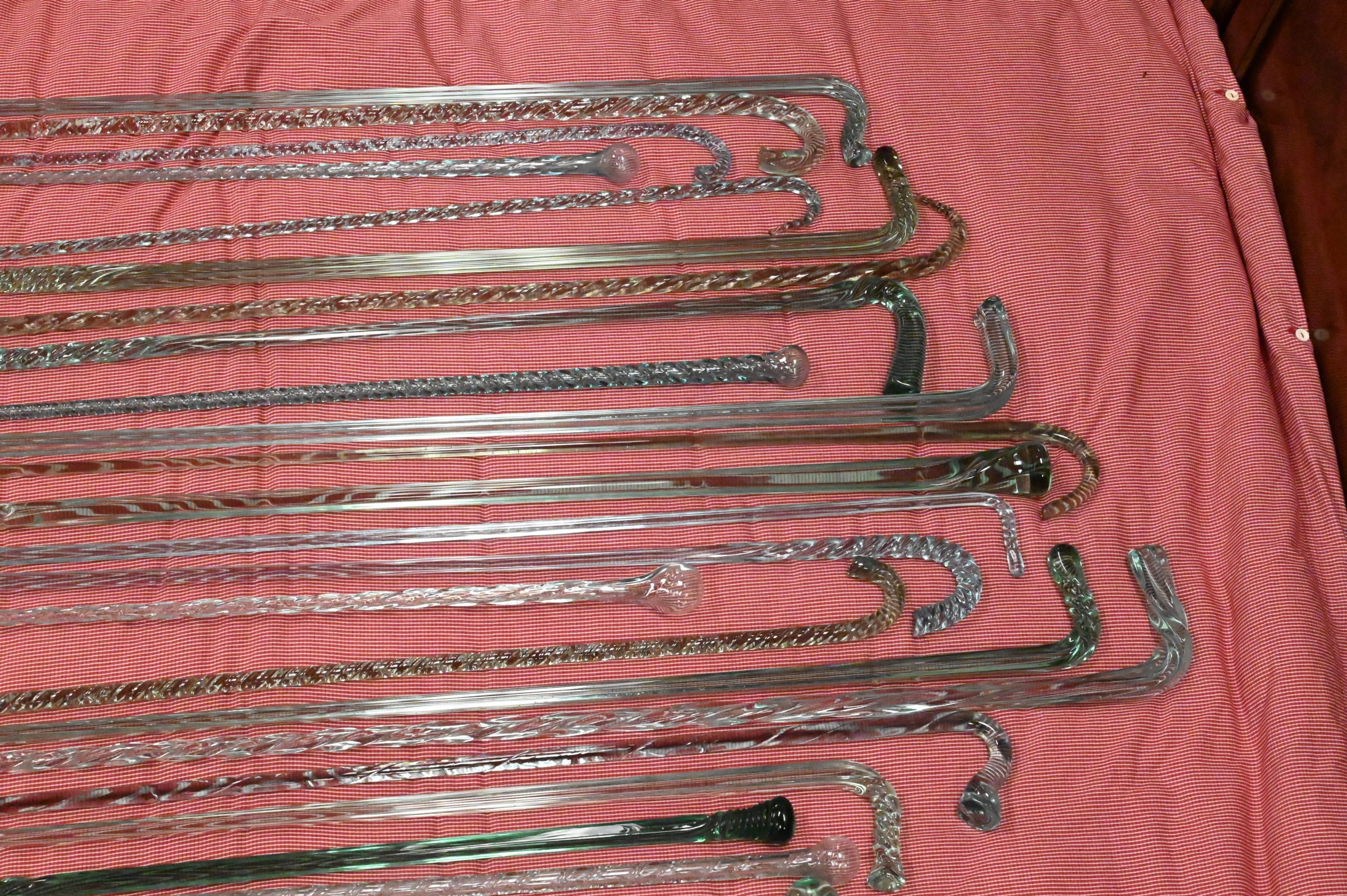 34 Sea Green Glass Canes, having various styles, sizes range from 29 inches – 67 inches, Provenance: A Private Connecticut Shoreline Collection