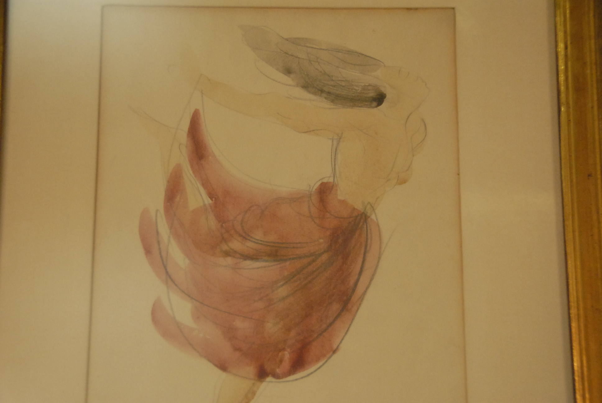 Circle of Auguste Rodin French, 1840-1917 GIRL watercolor and pencil on paper signed in pencil lower right Rodin sight size 11 1/2 x 8 1/4, framed 18 x 15