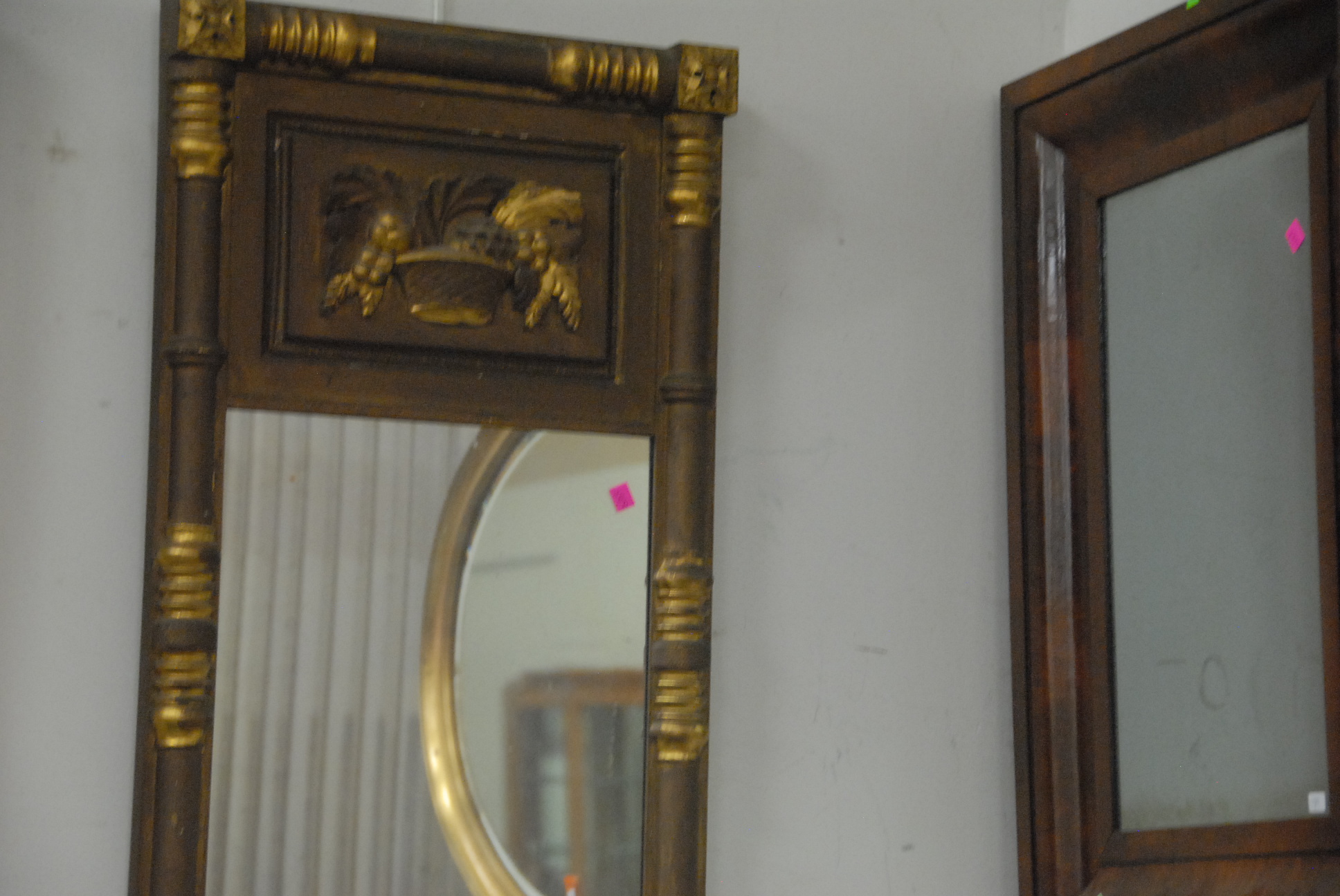 Lot 189: Four piece lot to include Federal two part mirror circa 1830-1840, ogee mirror, Victorian mirror, and Victorian framed foil painting…