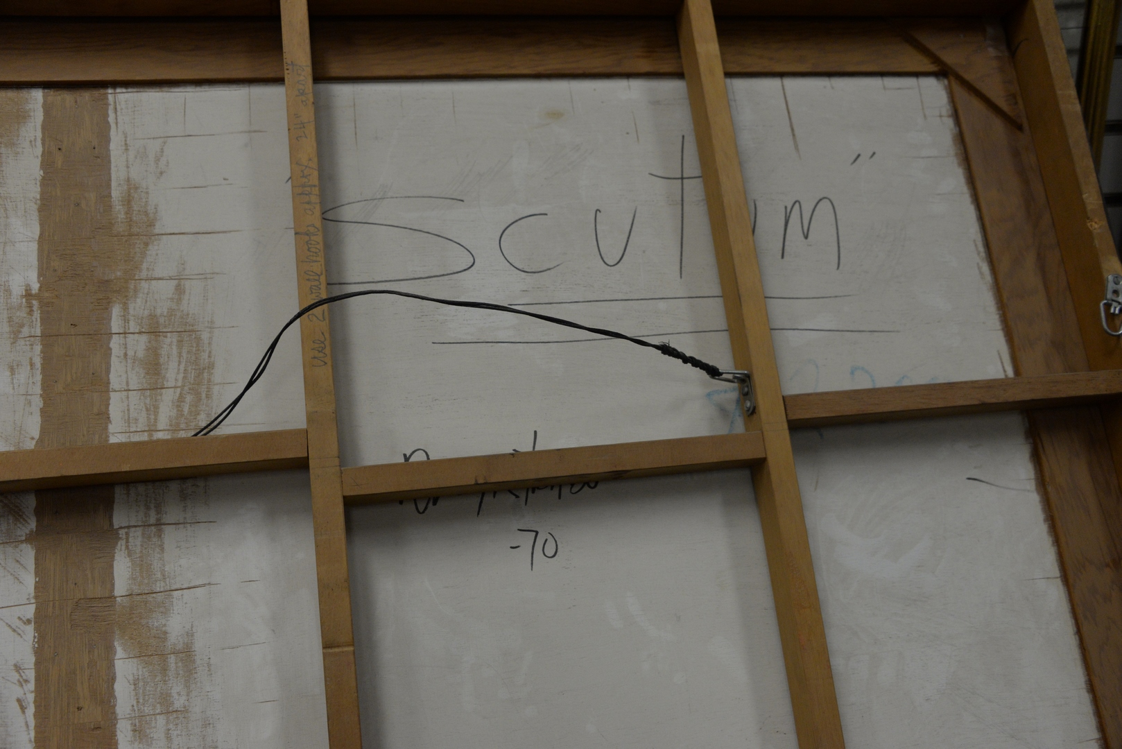 Ignacio Marmol (Spanish, 1934 – 1994), Scutum, 1970, mixed media relief on plywood; signed, titled, and dated on the reverse, framed 50 1/4″ x 82 1/8″.