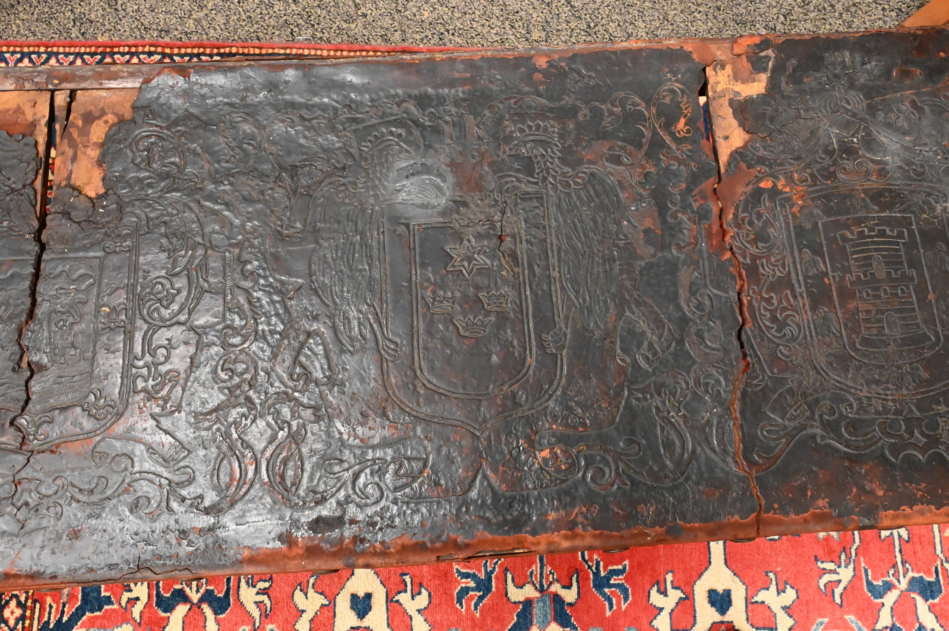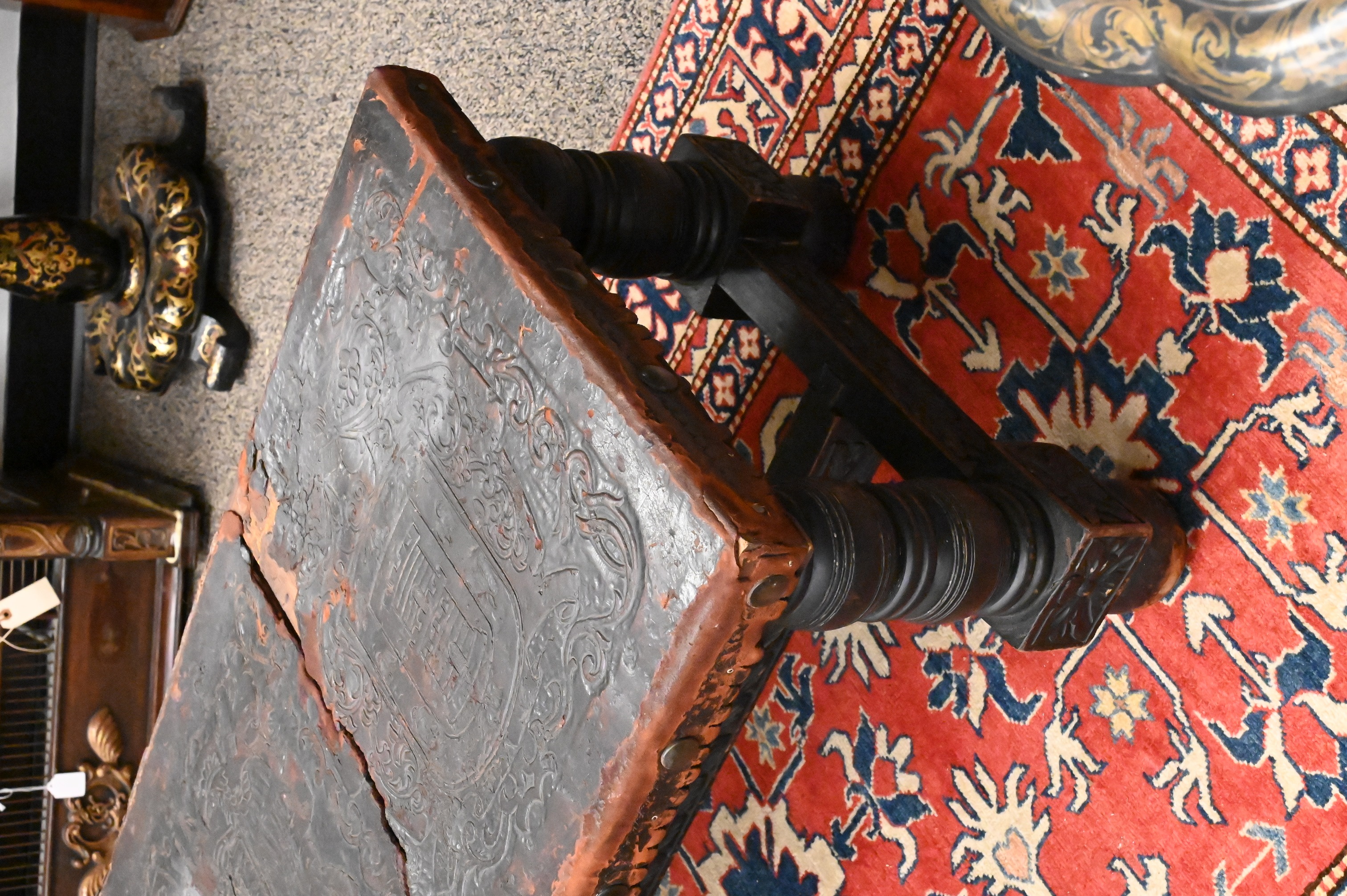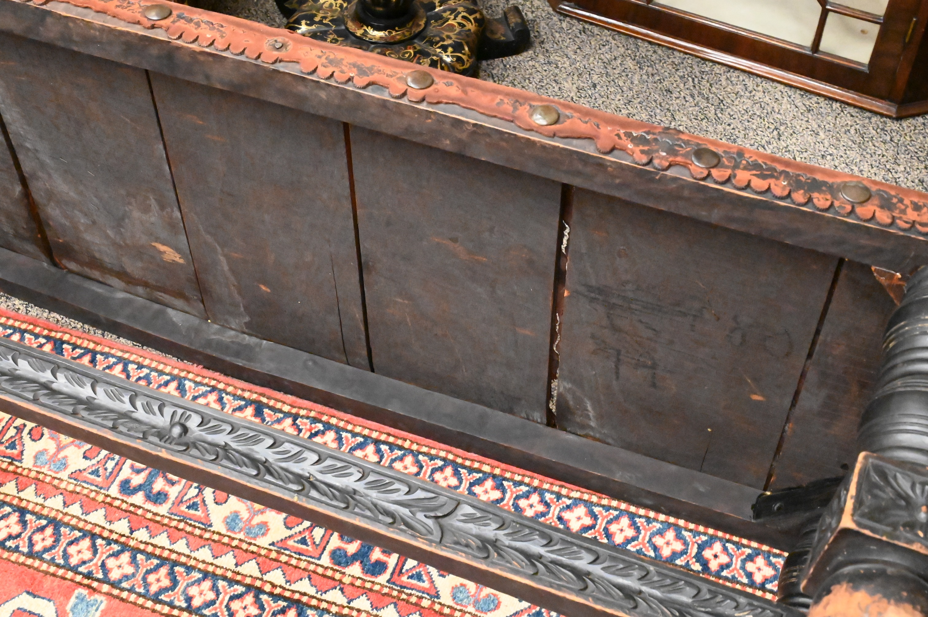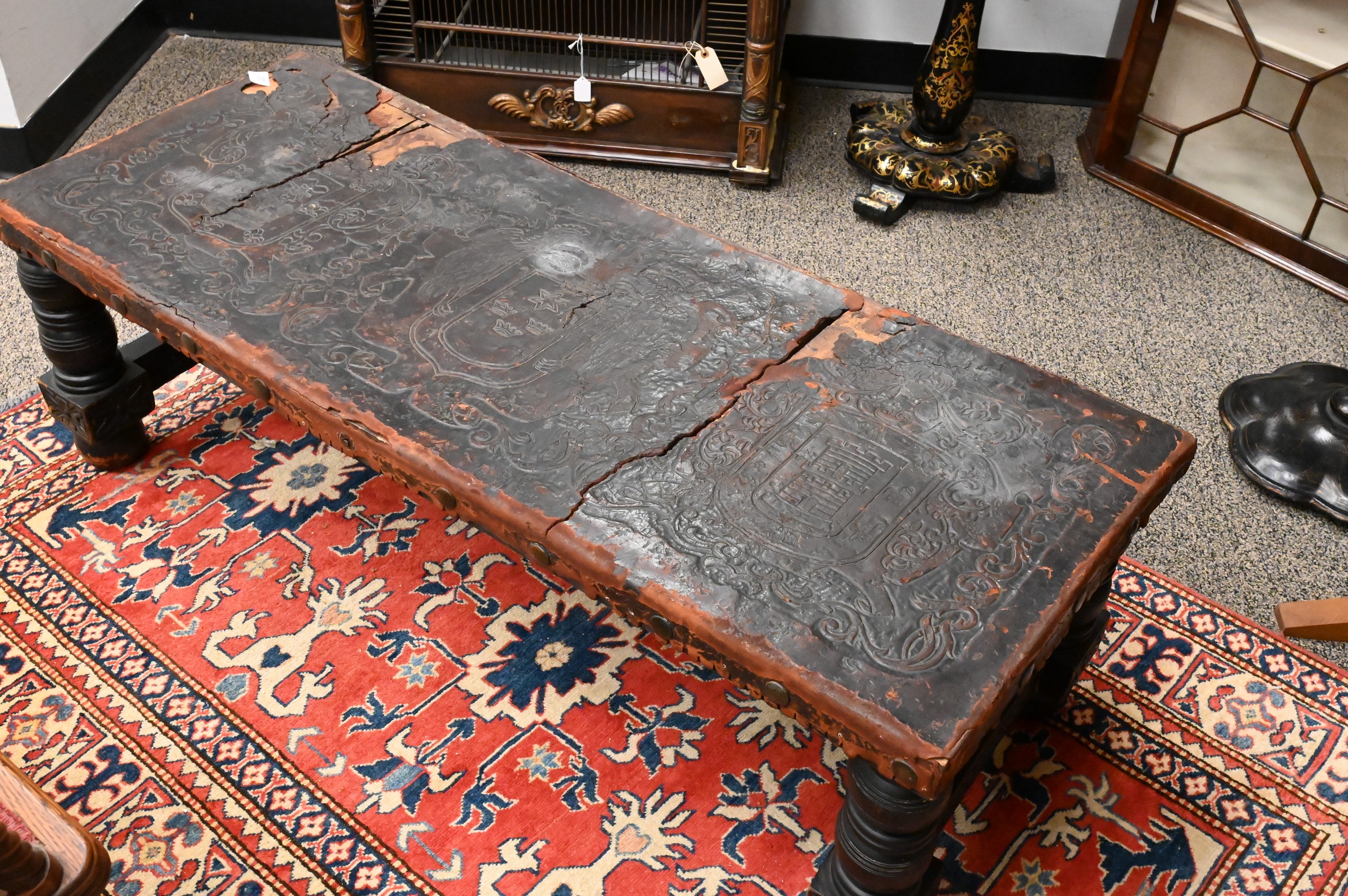 Lot 189: Jacobean Style Leather Top Bench