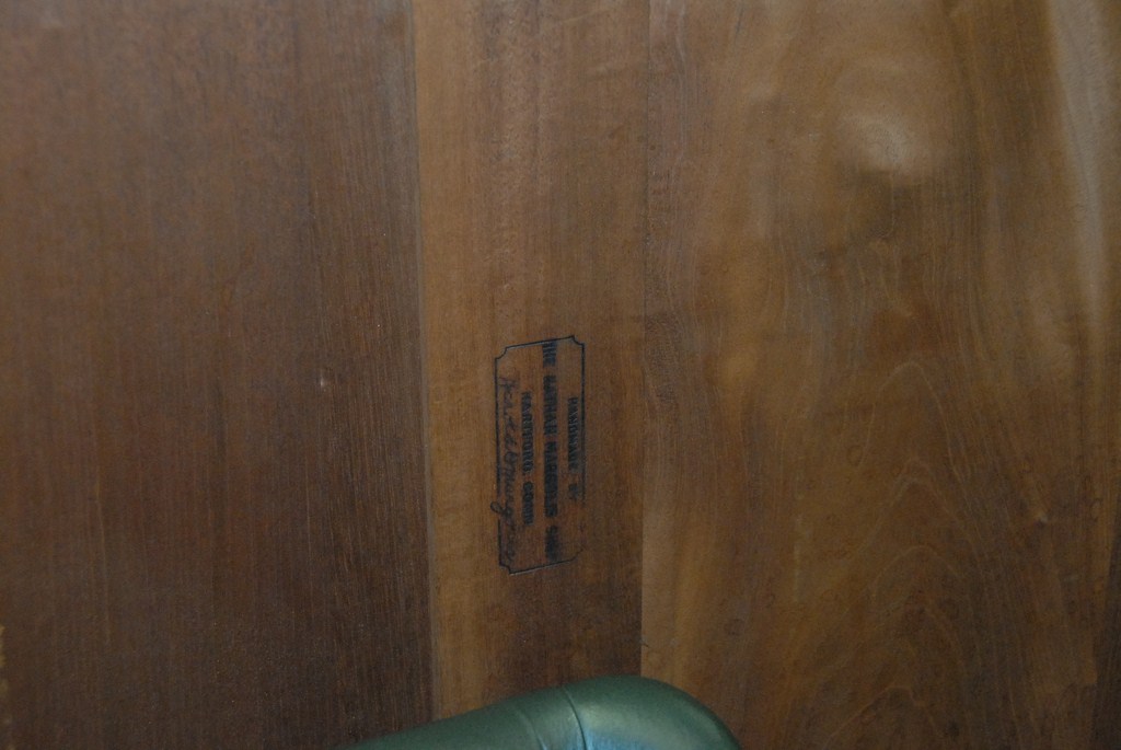 Margolis mahogany Queen Anne style highboy in two parts, upper section with broken arch top, shell carved drawer set on lower section with shell carved drawer all on cabriole legs ending in pad feet, signed on reverse with brand mark Harold Margolis. ht. 80in. wd. 39in. dp. 19in.