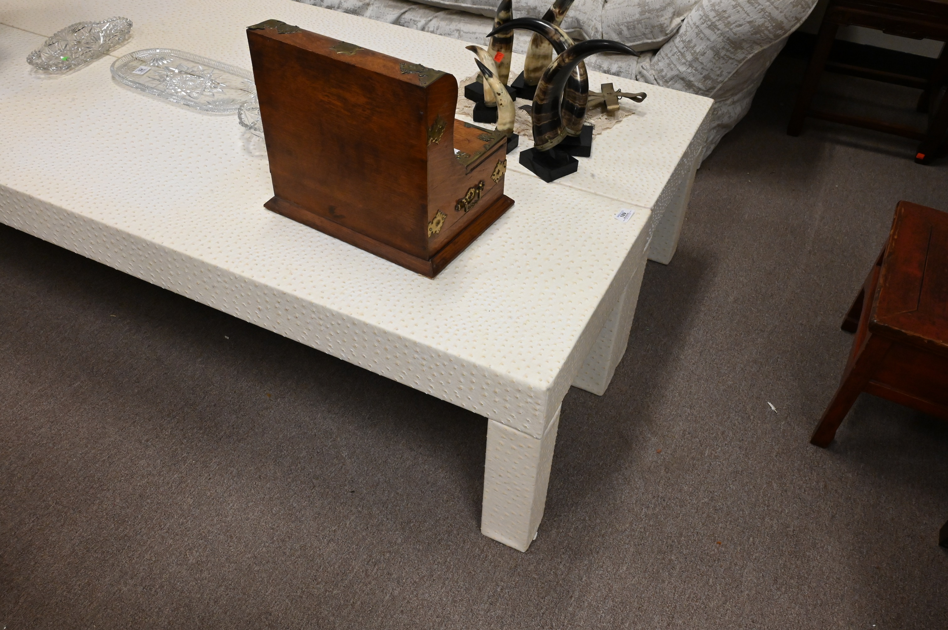 Lot 189: Pair of Rectangular Faux White Ostrich Coffee Tables and Square Feathers Henri Coffee Table