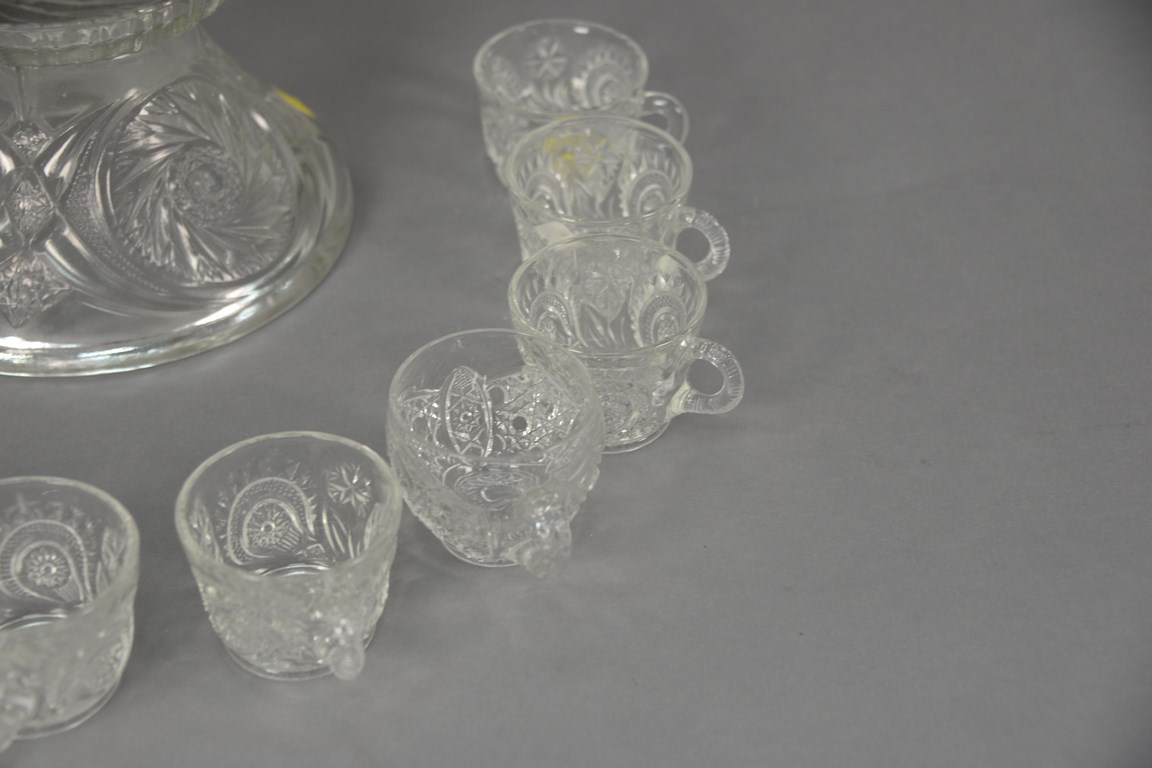 Pressed glass two part punch bowl with ten cups. bowl: dia. 14 in.
