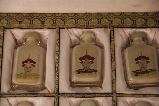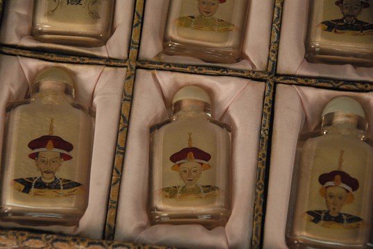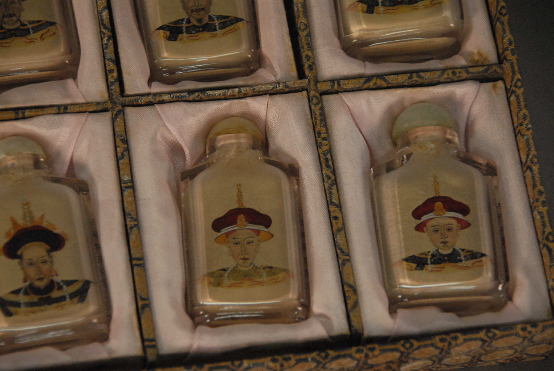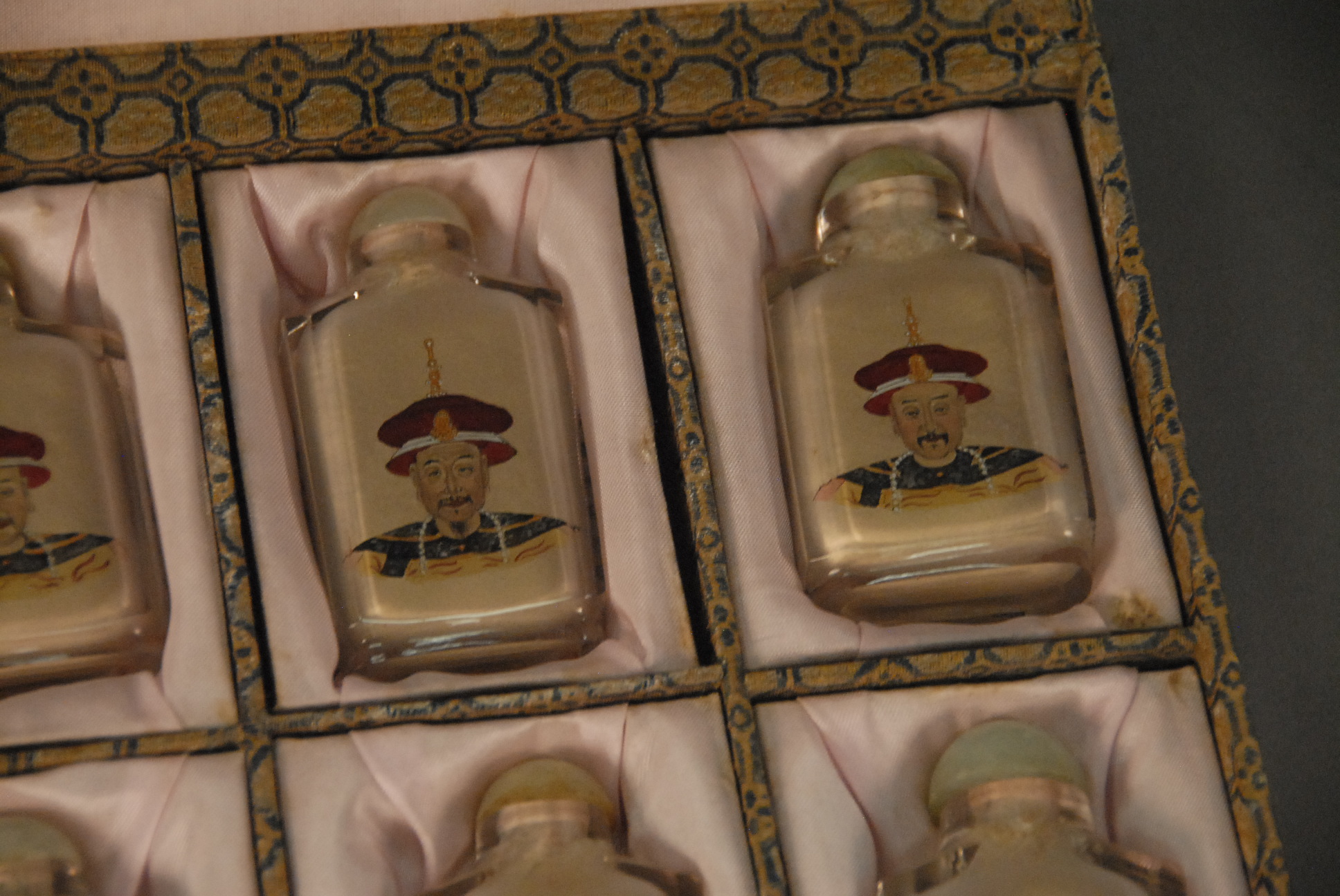 Set of twelve crystal reverse painted emperor and empress snuff bottles. hts. 3in. – 3 1/4in.