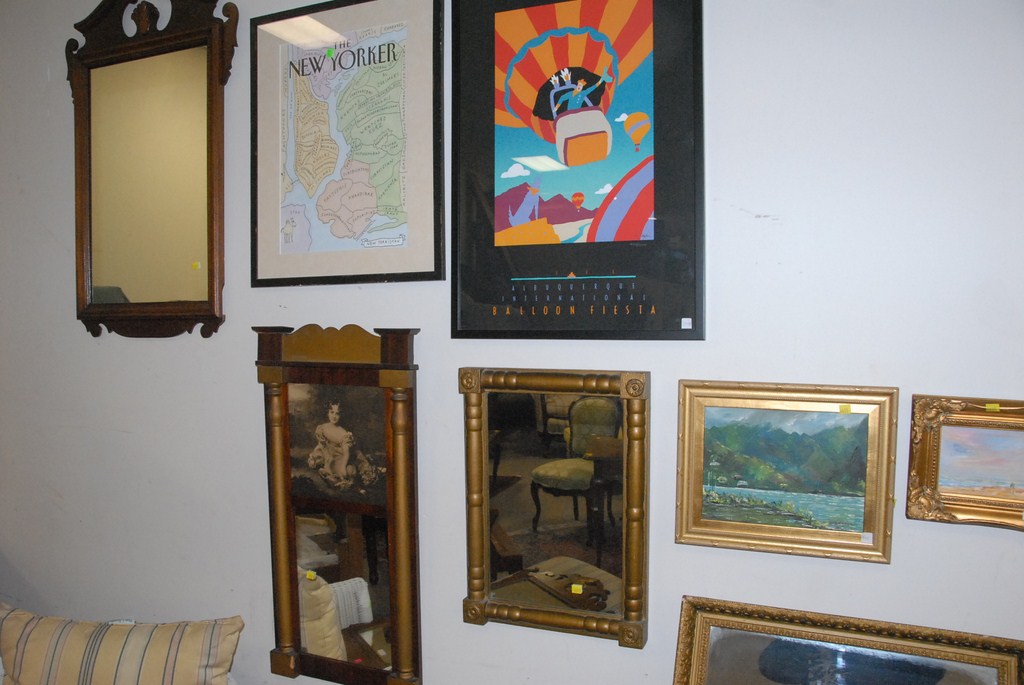 Seventeen piece lot mirrors, prints, and paintings.