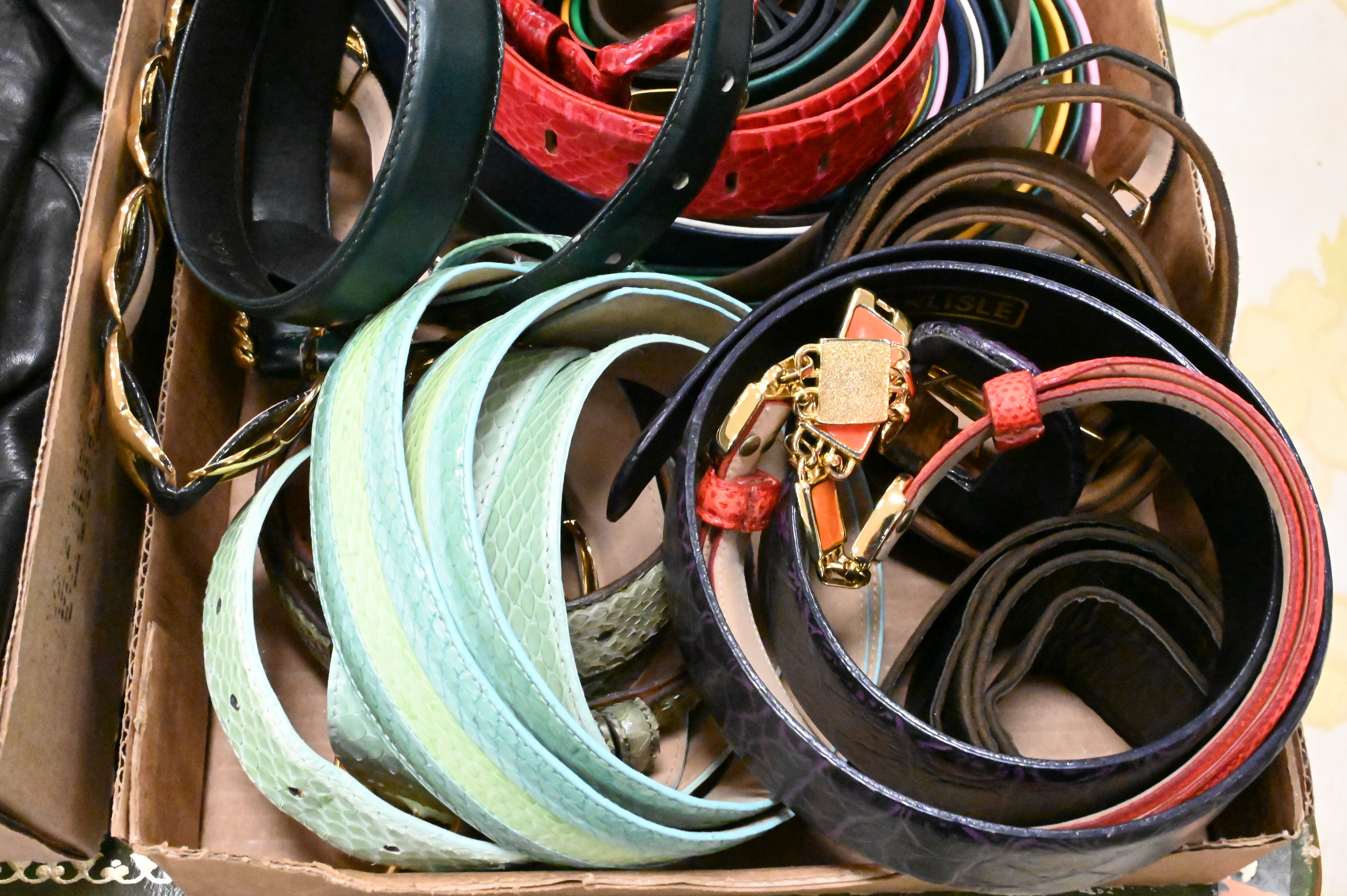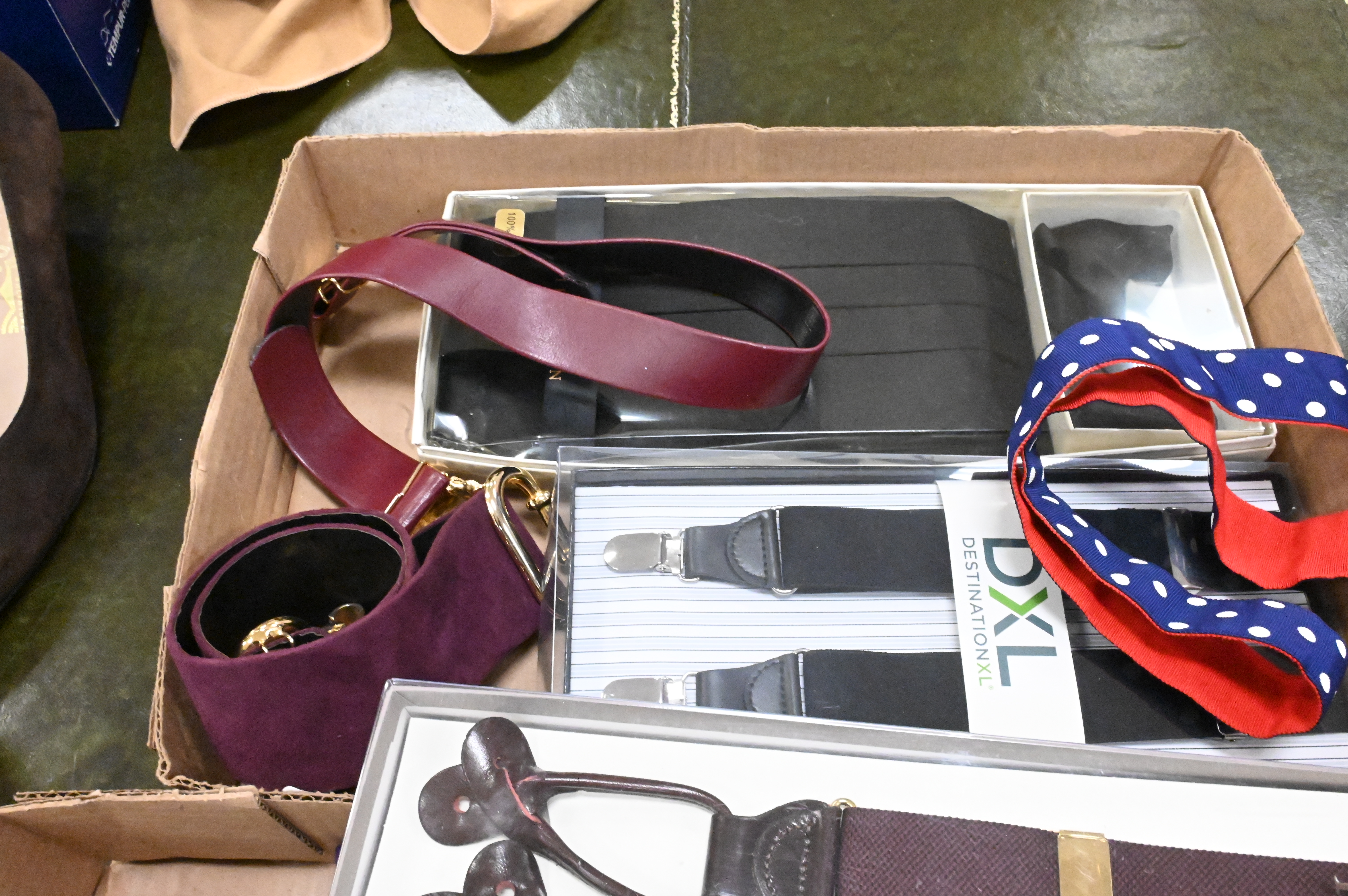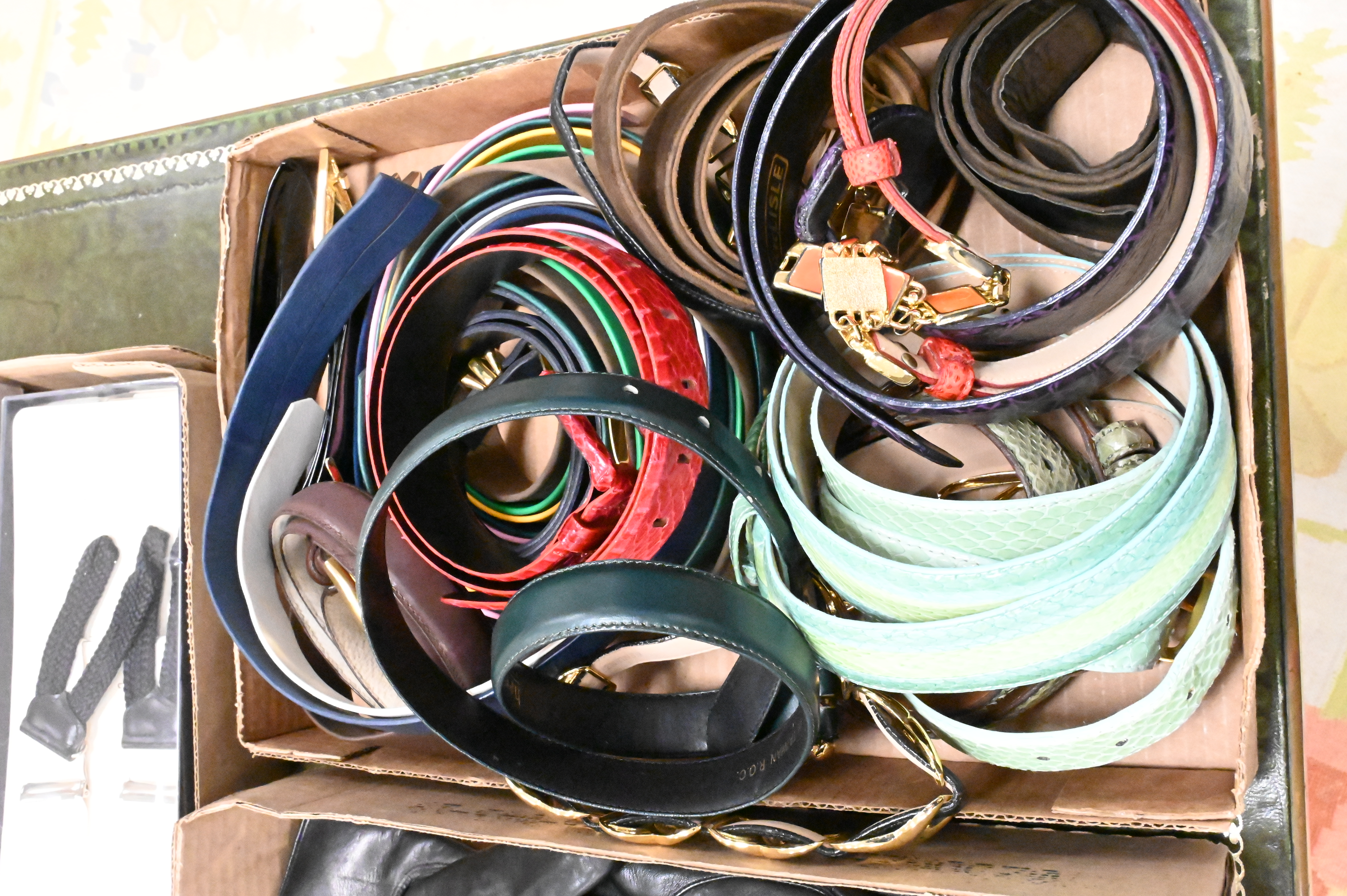 Three Box Lots of Gloves and Belts, to include Harve Benard, Carlisle, suspenders, Nordstrom, Ned Allyn, etc.