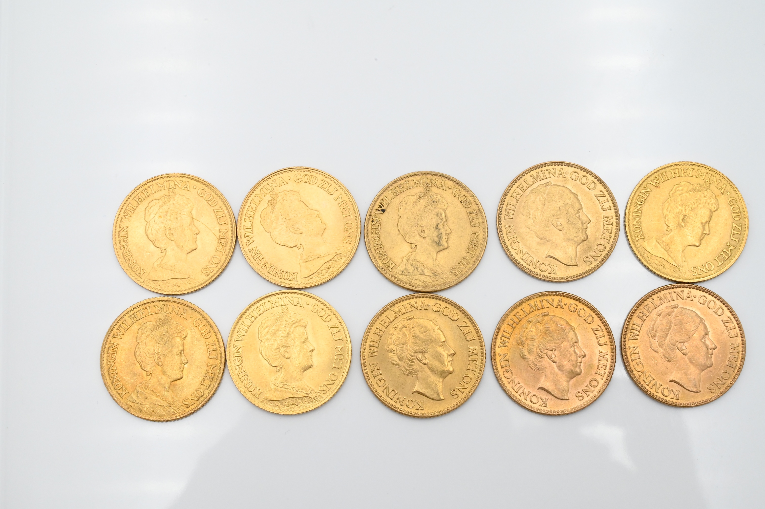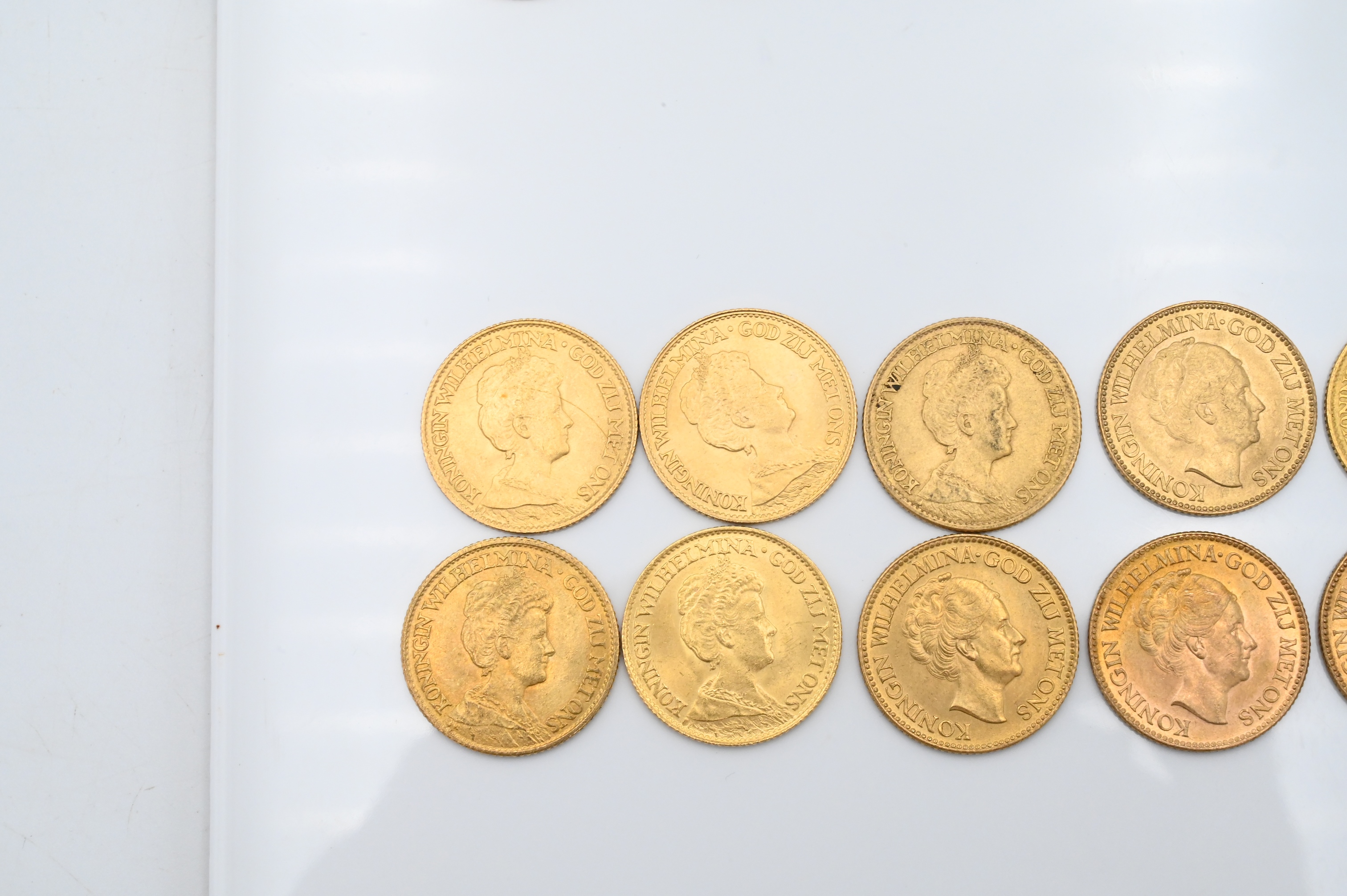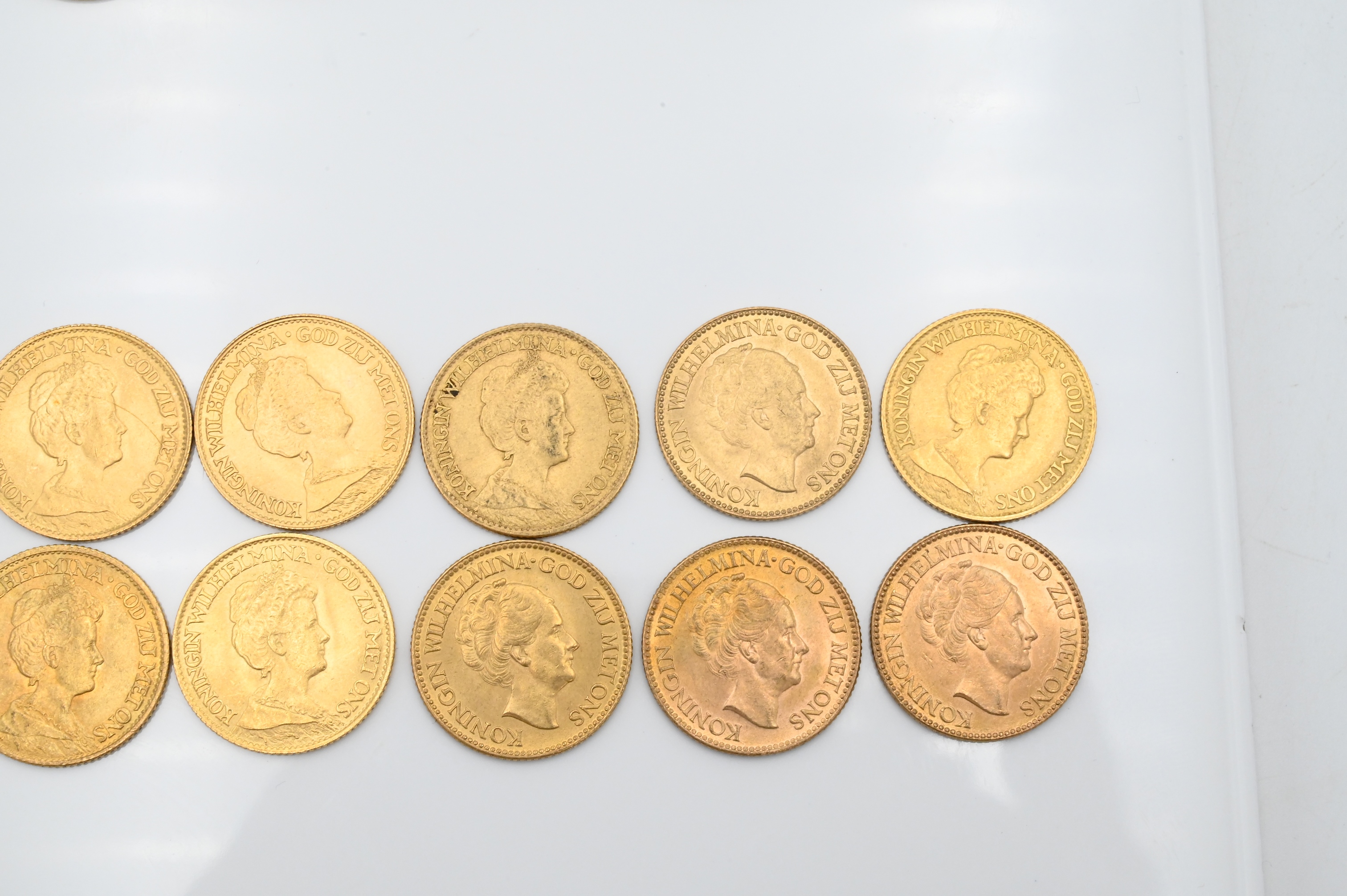 Lot 19: 10 Dutch 10 Guilder Uncirculated Gold Coins