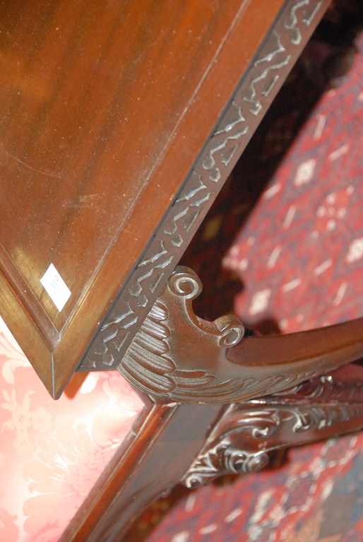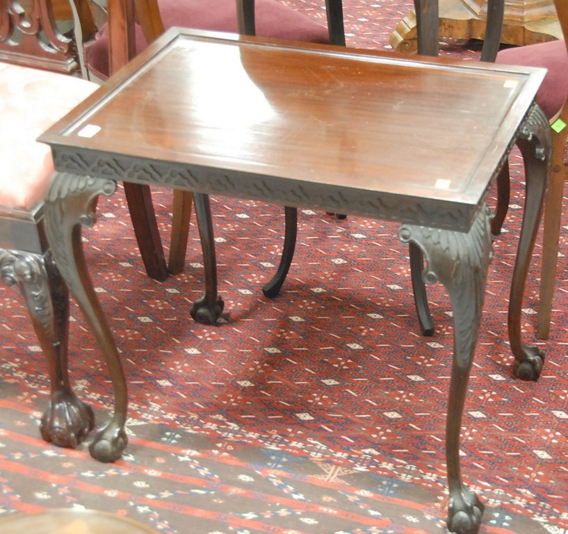 Custom mahogany Chippendale style tea table with ball and claw feet.