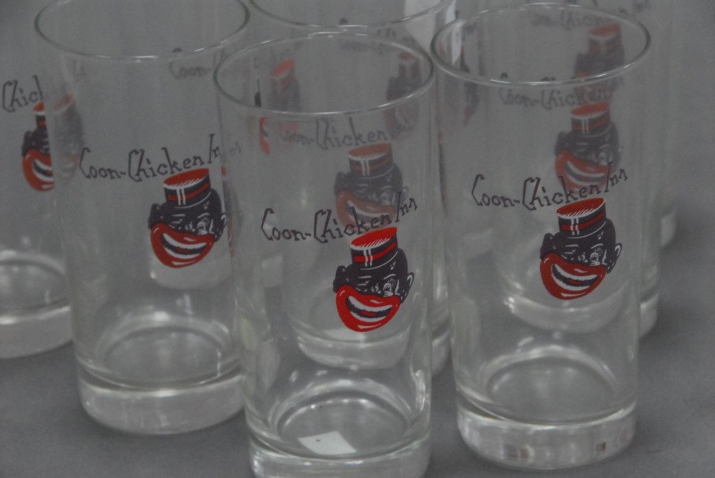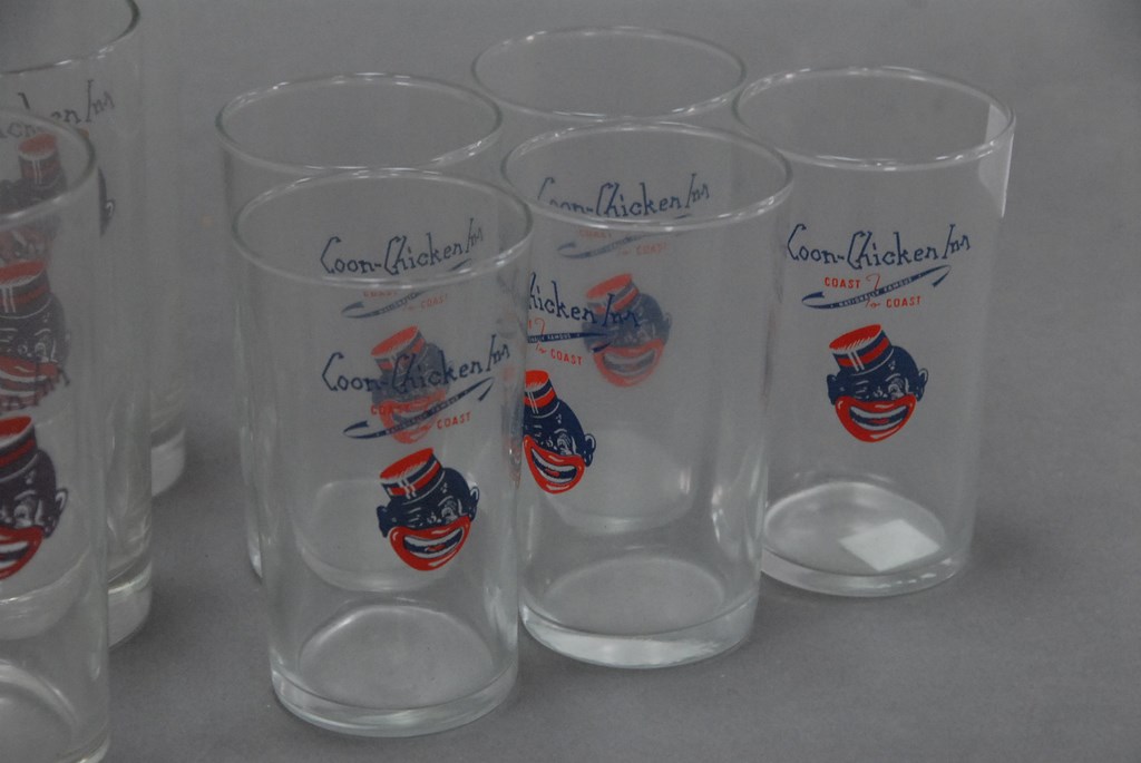 Fifteen glasses: fourteen are Coon Chicken glasses, three sizes.