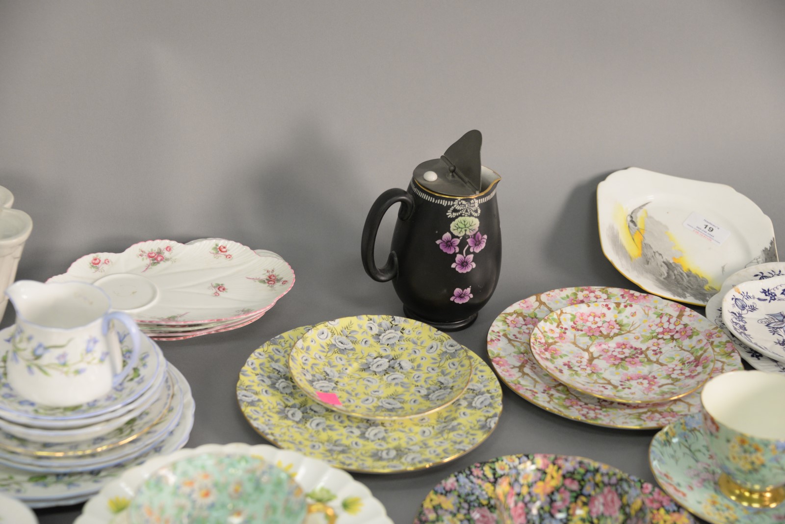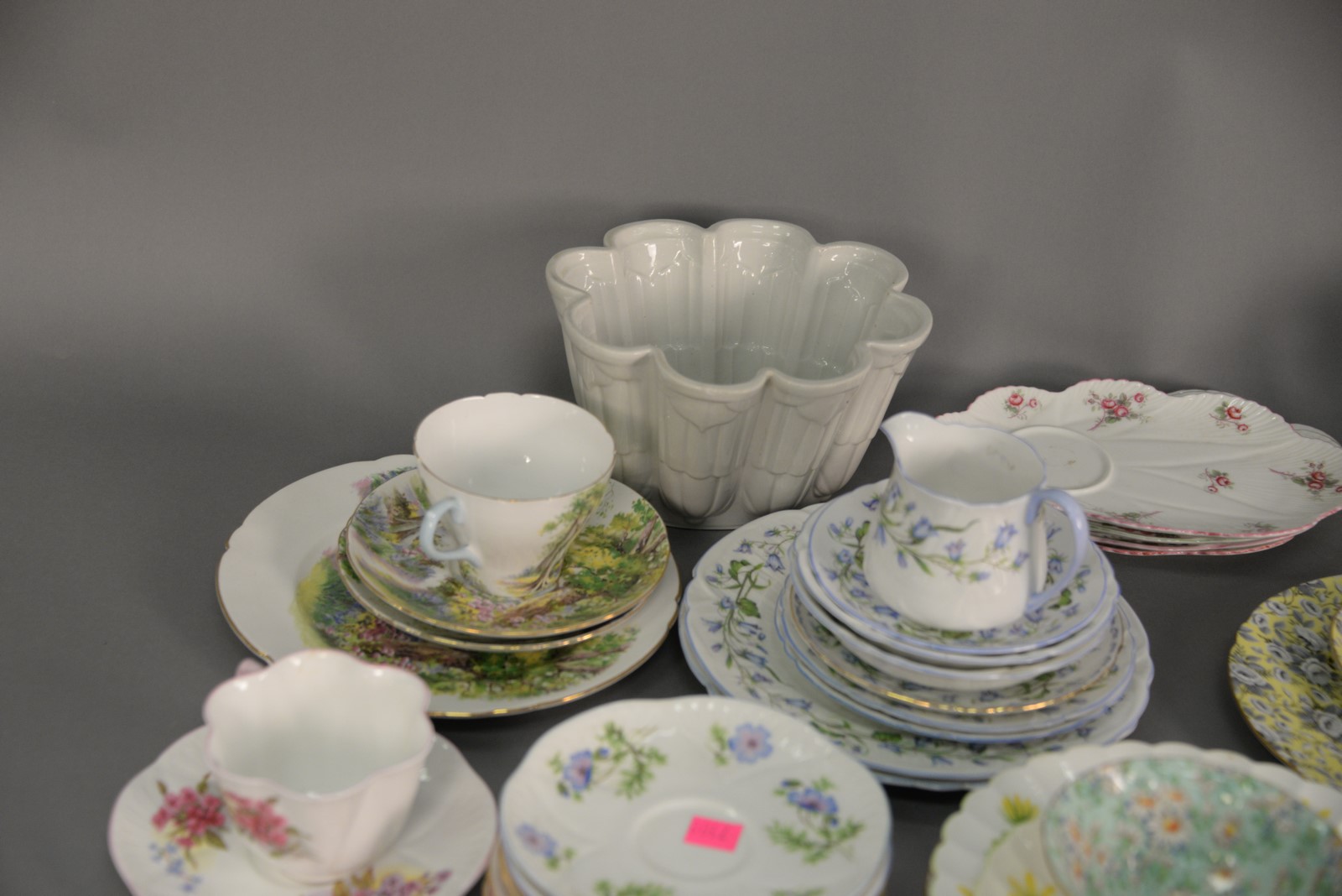 Lot 19: Large group of Shelley china, approximately 65 pieces to include English Shelley porcelain large jelly mold, Shelley violet creamer…