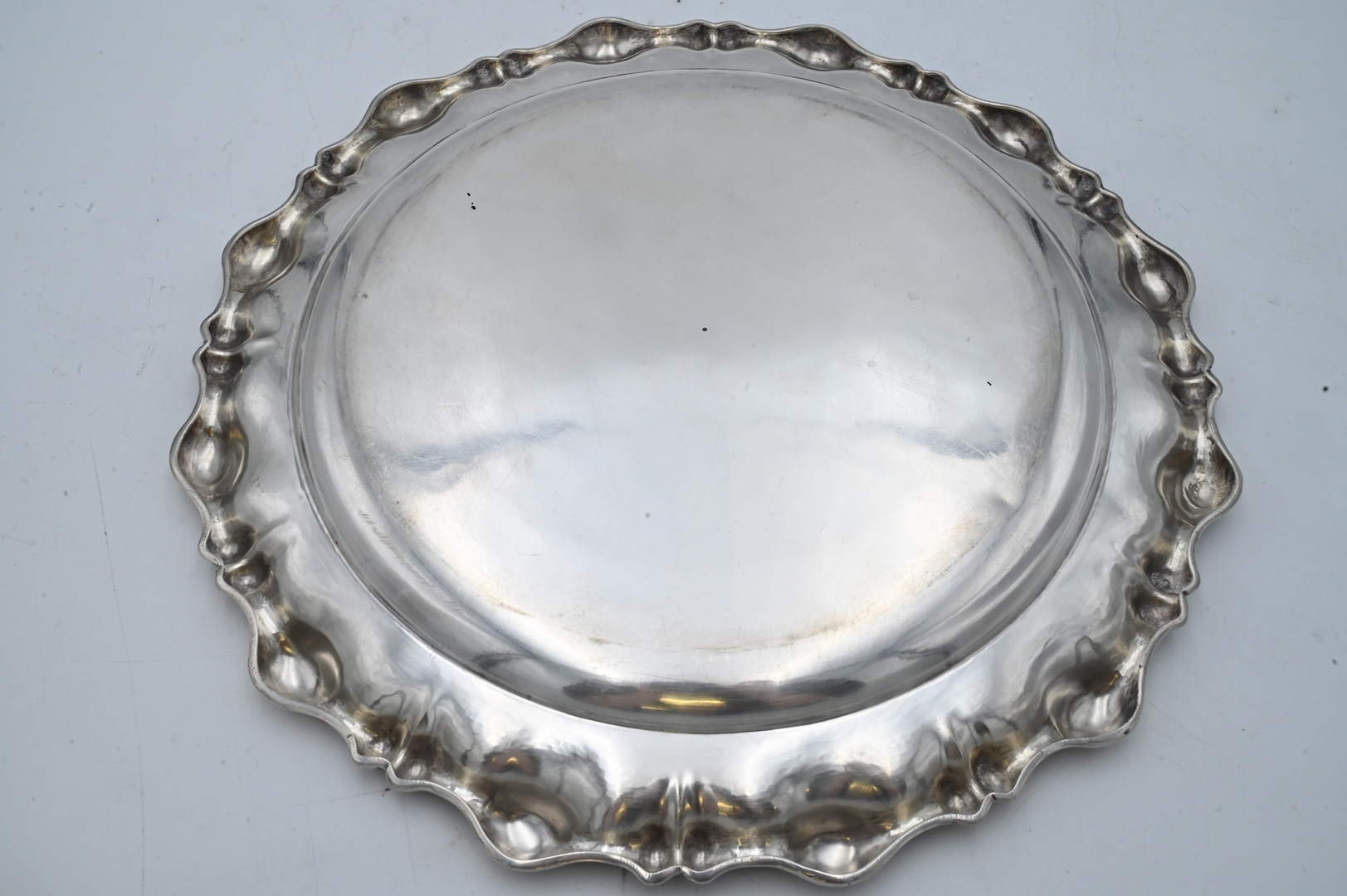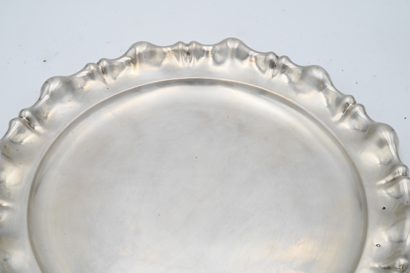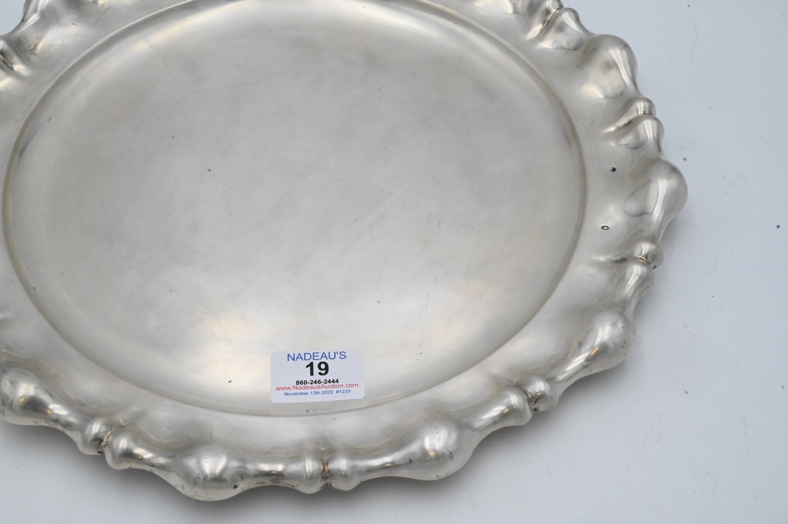 Large Round Silver Tray, having a scallop edge, touch marks, diameter 13 1/2 inches, 22 t.oz.