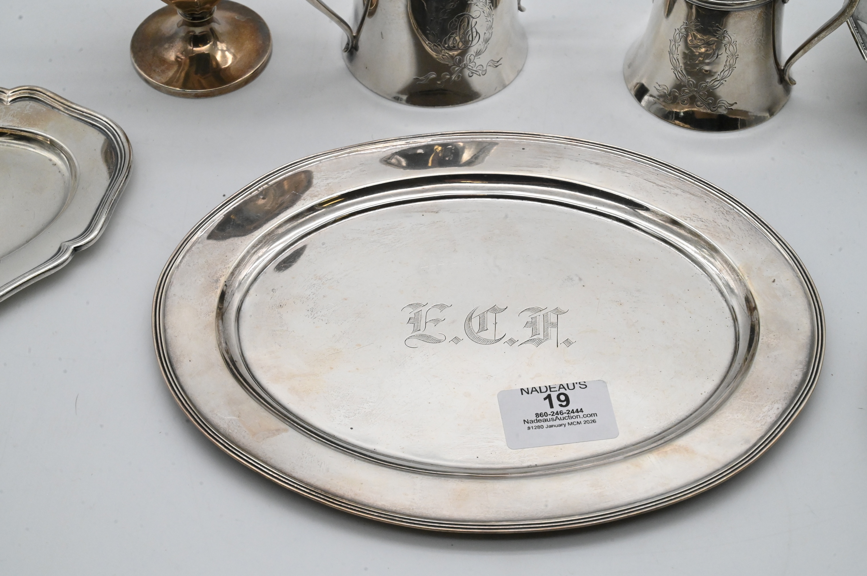 to include four trays, pair of creamer and sugar along with small urn form pitcher