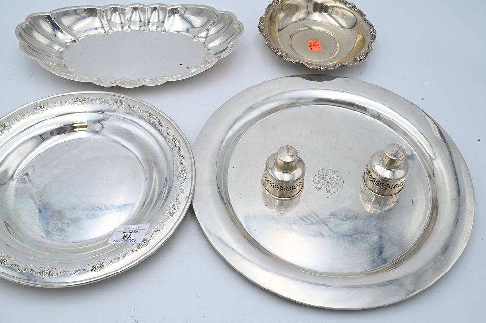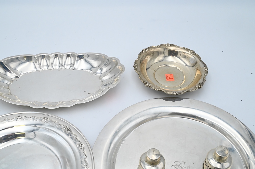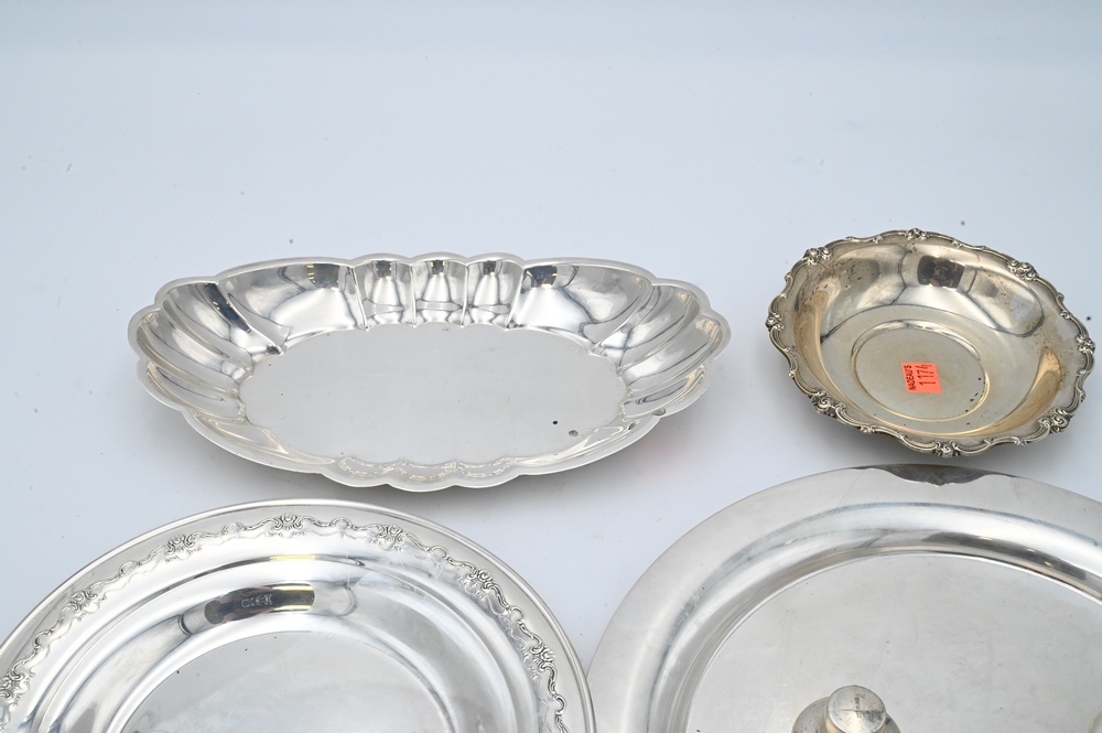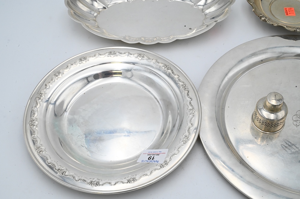Lot 19: Silver Lot, to include two round plates, two shaped dishes, etc, 44.9 t.oz.
