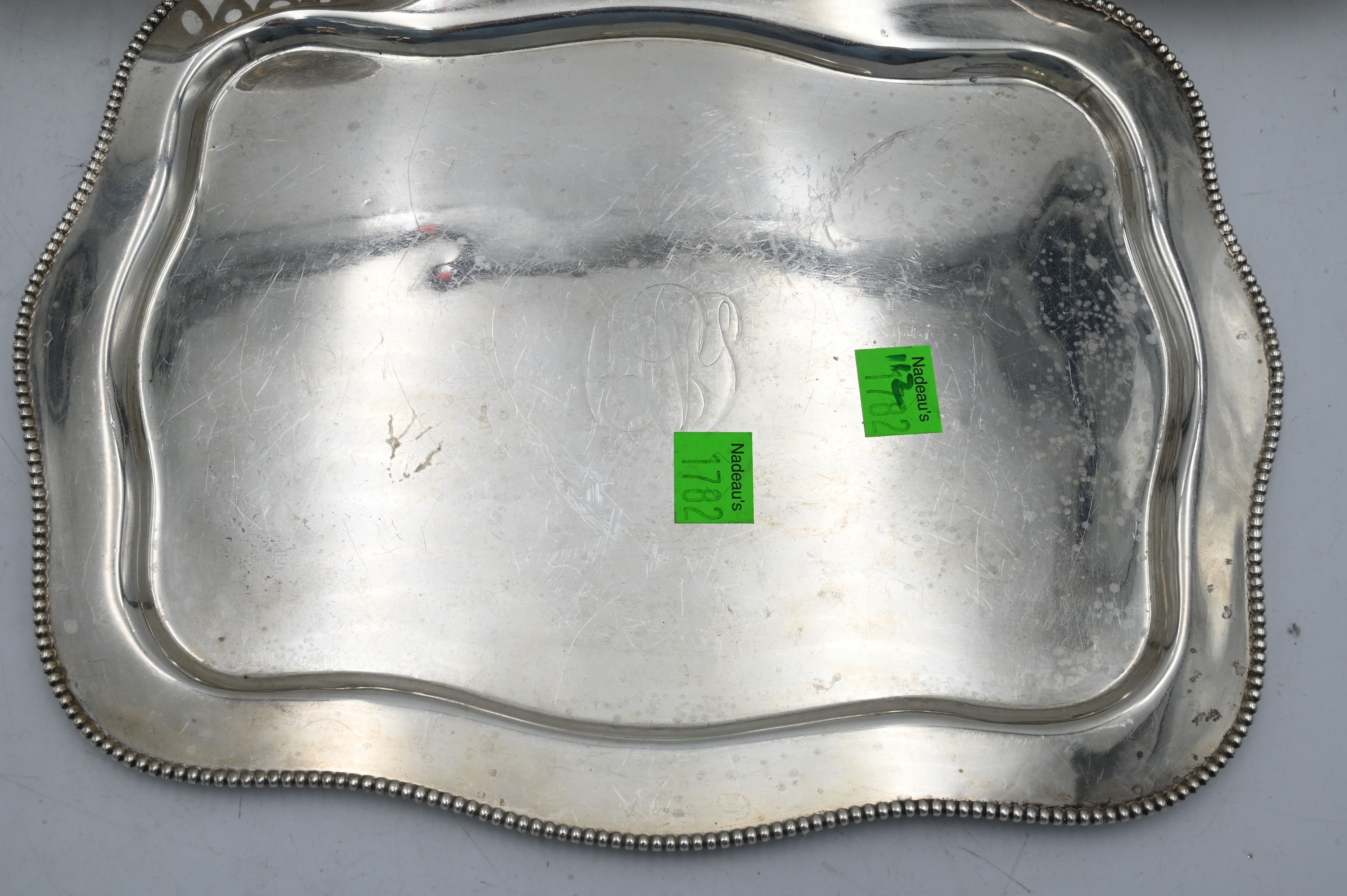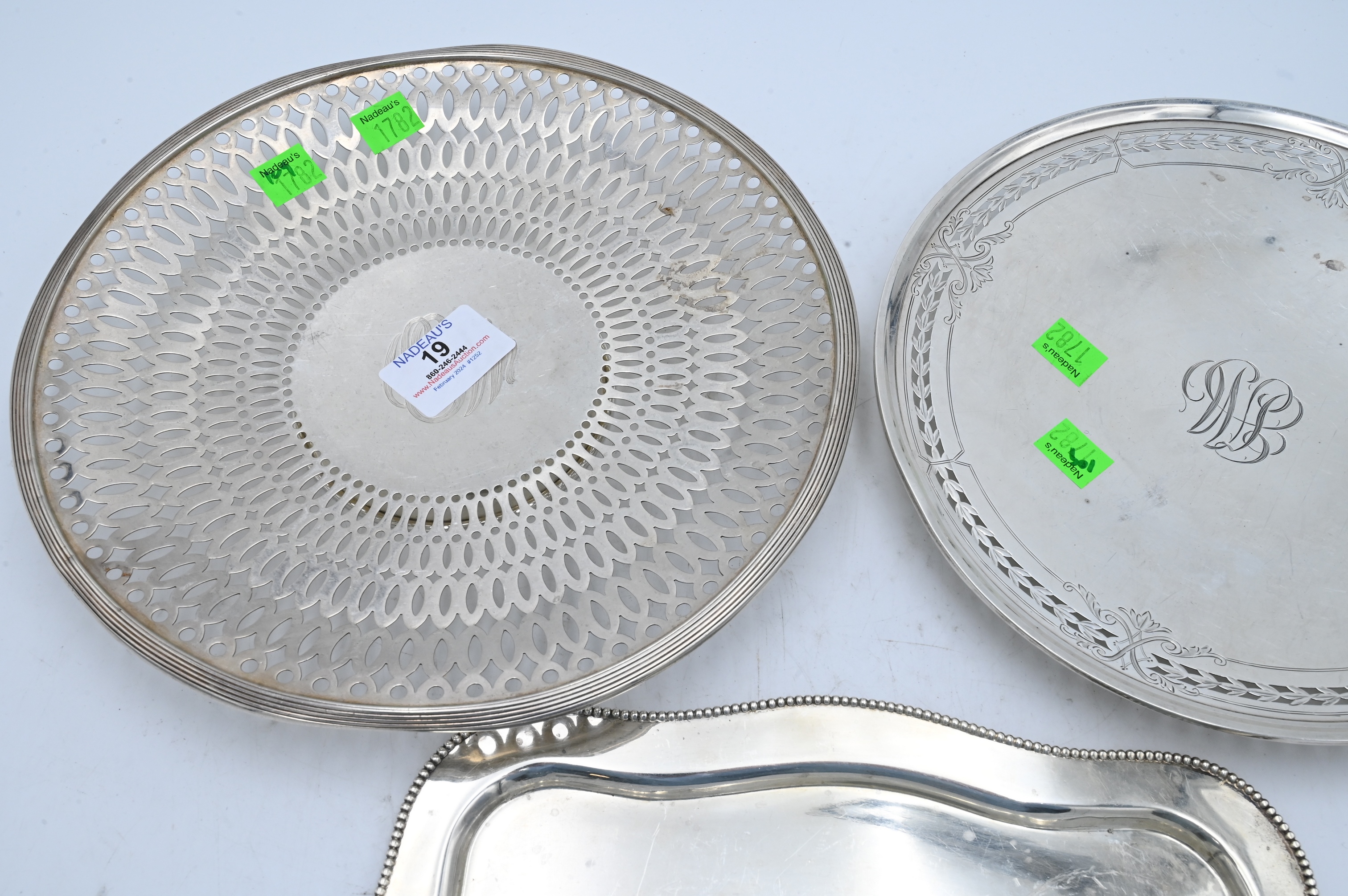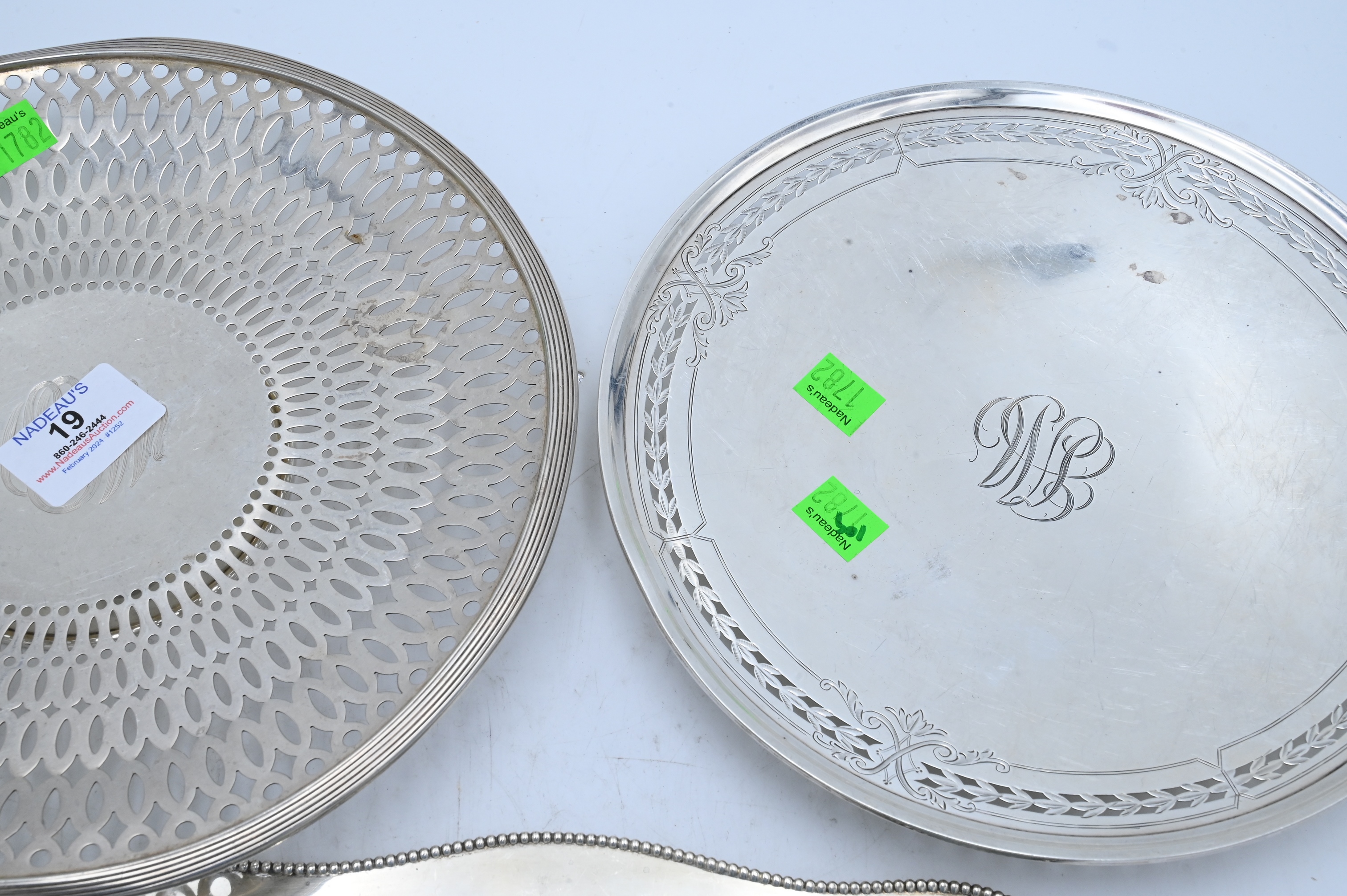 two monogrammed with reticulated borders and one shaped having beaded edge