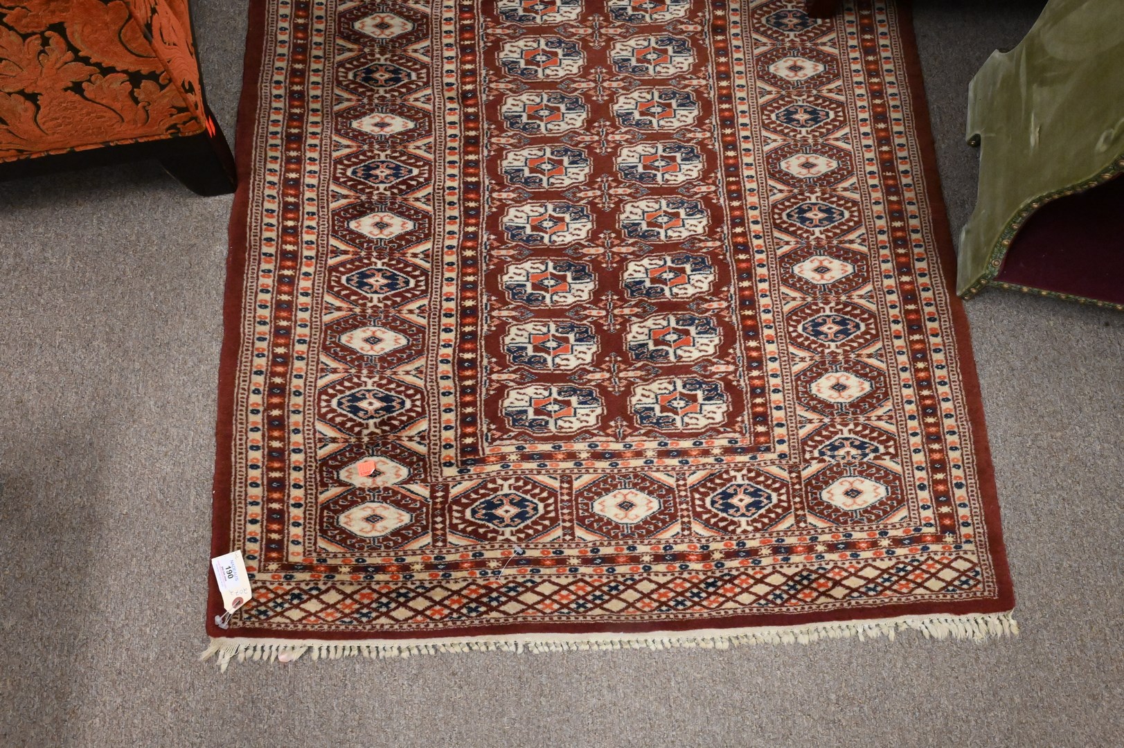Bokara Oriental Throw Rug, 3′ x 8′ 9″.
